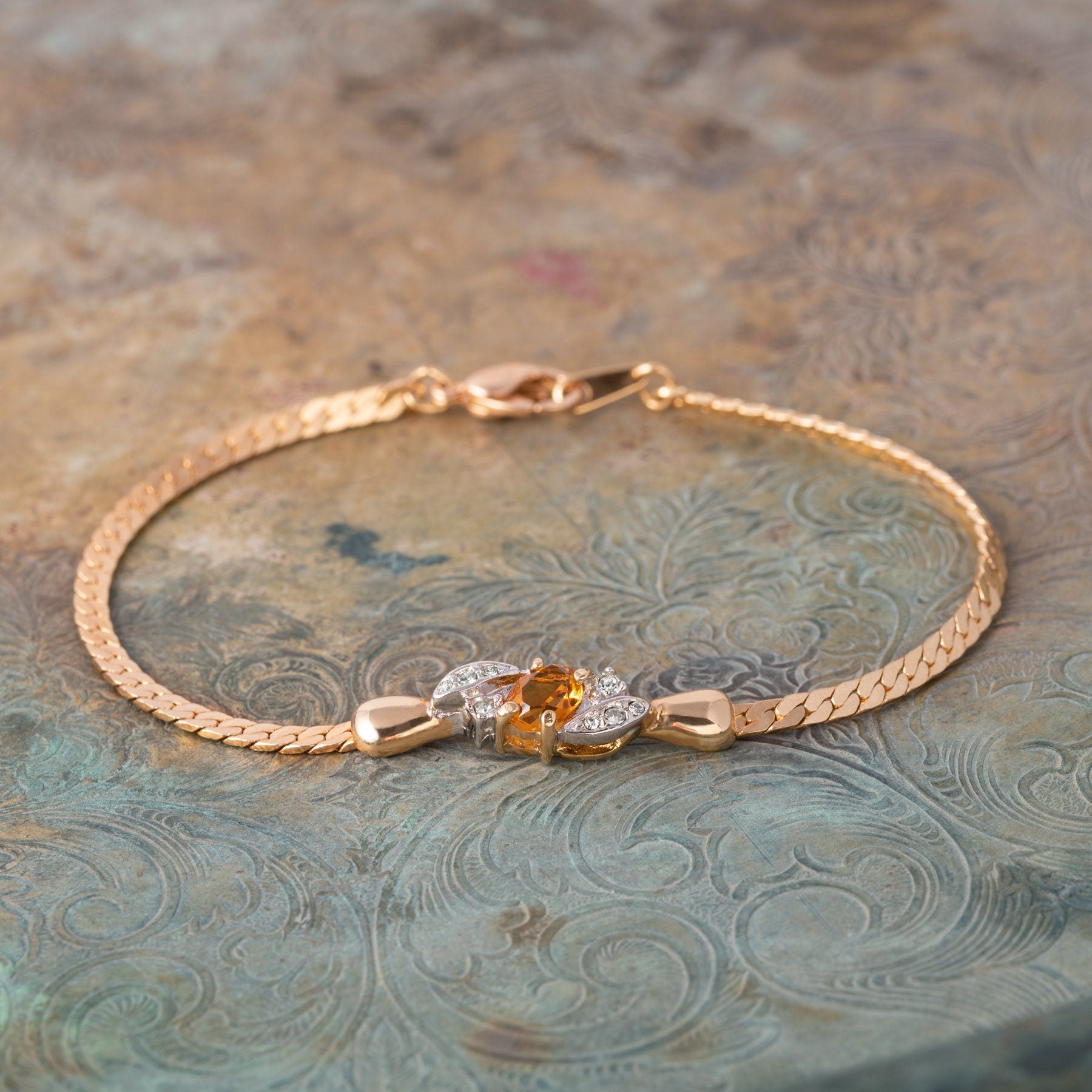 Vintage Light Topaz and Clear Austrian Crystal 18k Yellow Gold Electroplated Bracelet Condition - Excellent - Never worn or previously owned