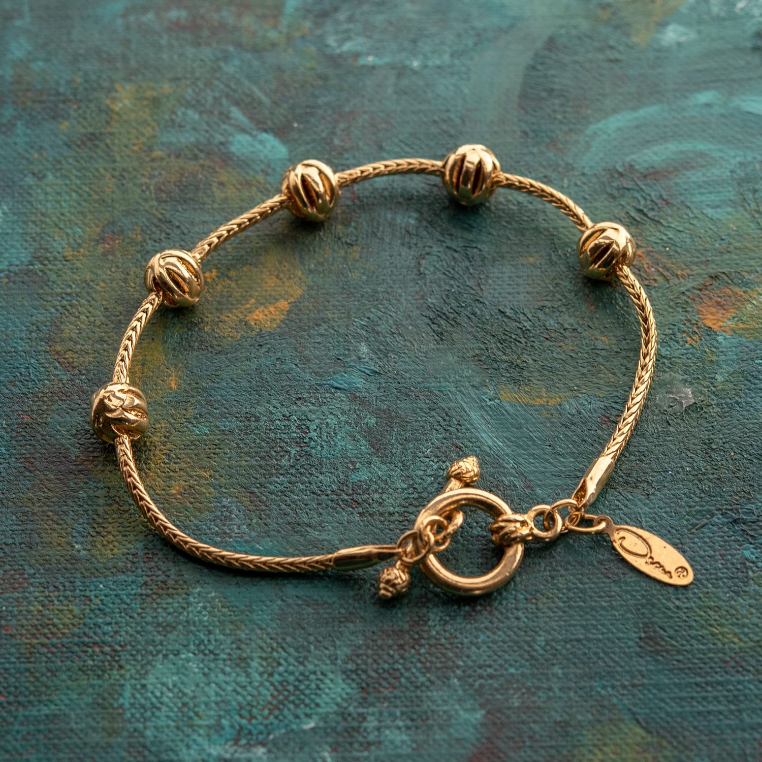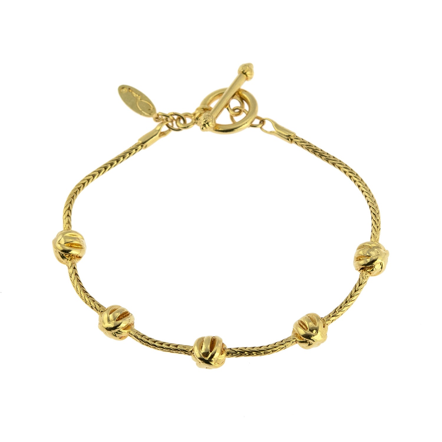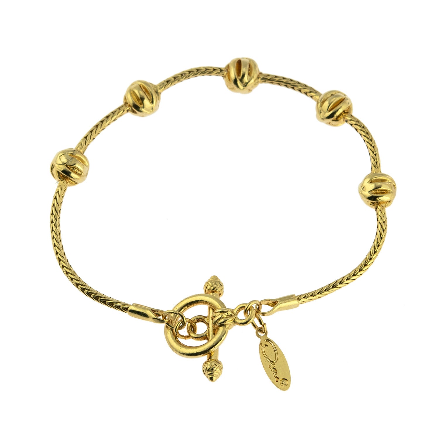 Vintage Bracelet Oscar De La Renta Gold Textured Bead and Chain Bracelet Women OSB-545 Antique Bracelet Jewelry