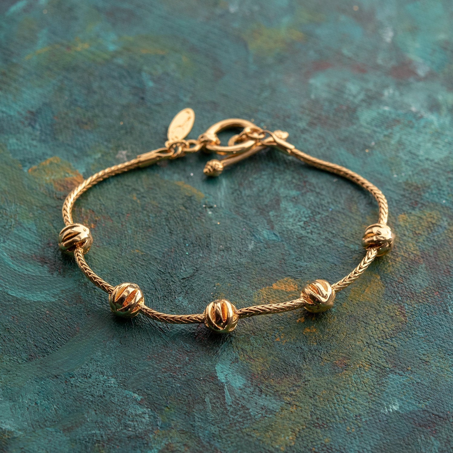 • Vintage Bracelet Oscar De La Renta Gold Textured Bead and Chain Bracelet Women OSB-545 Antique Bracelet Jewelry