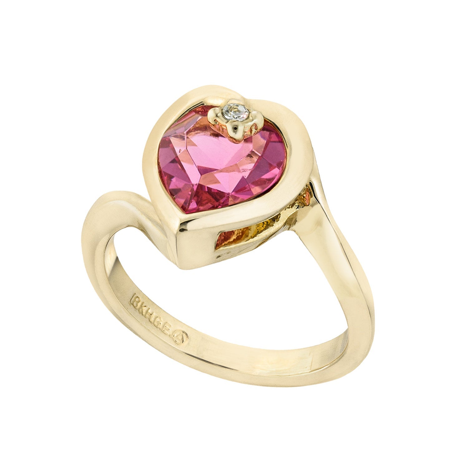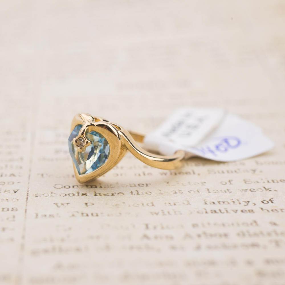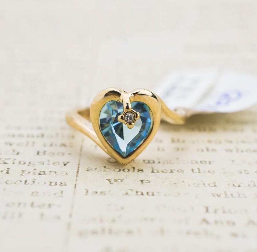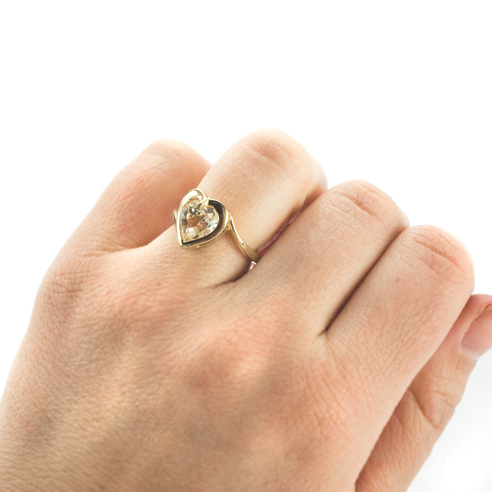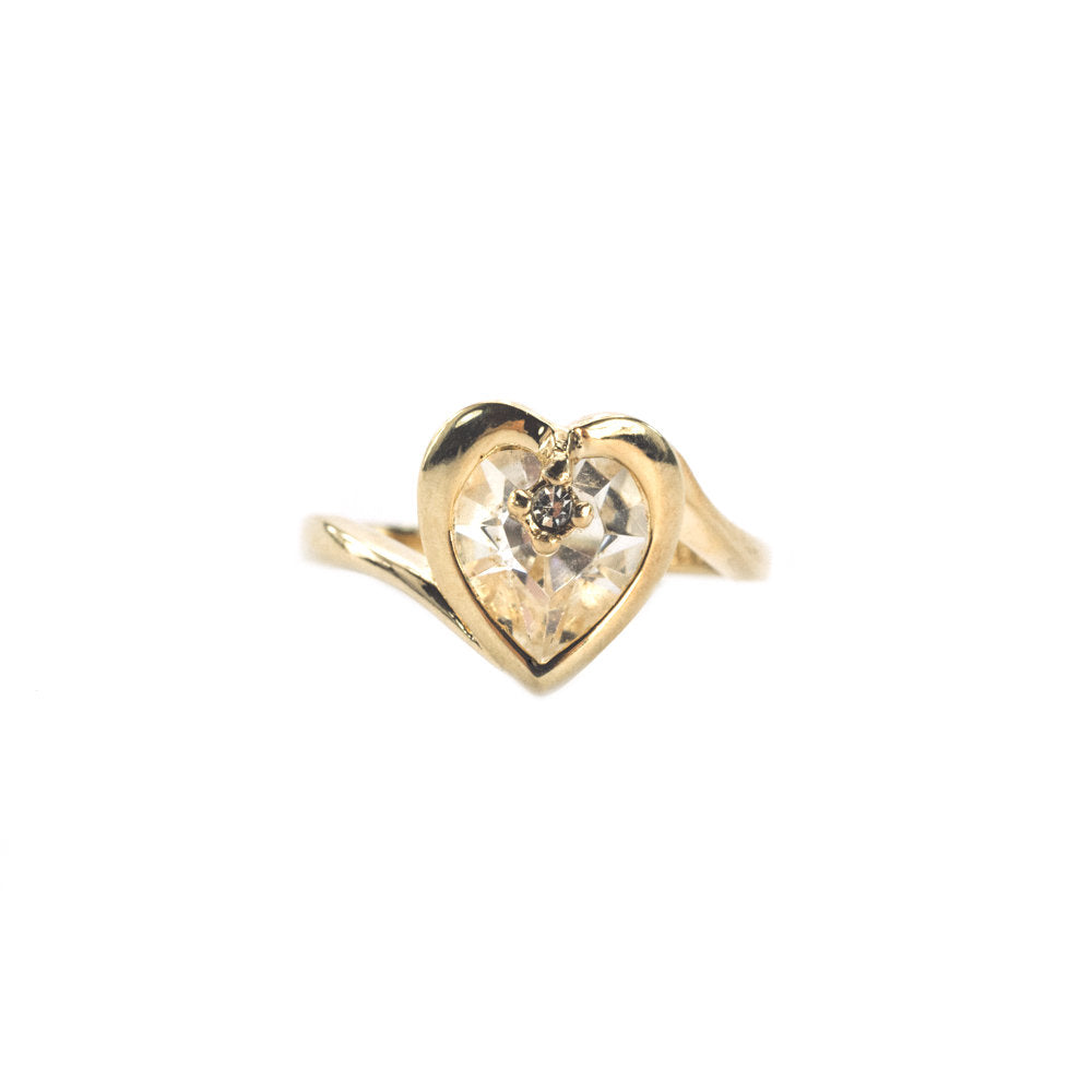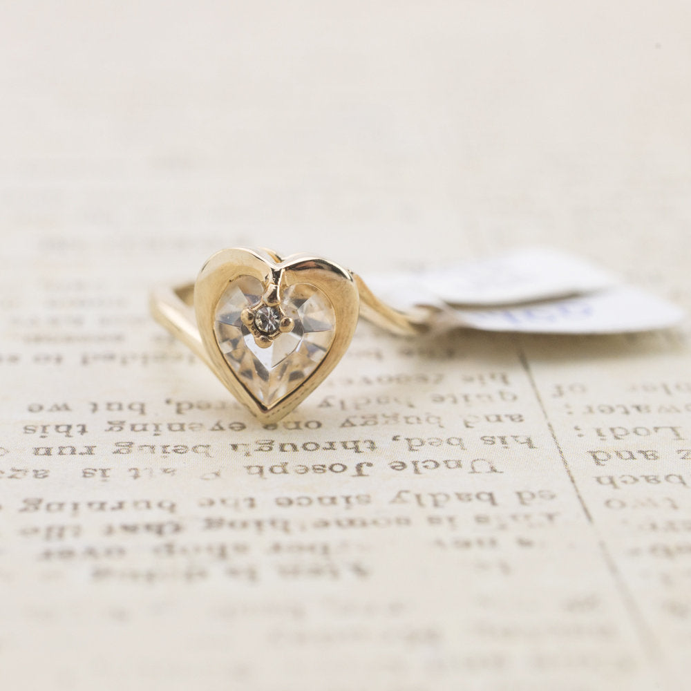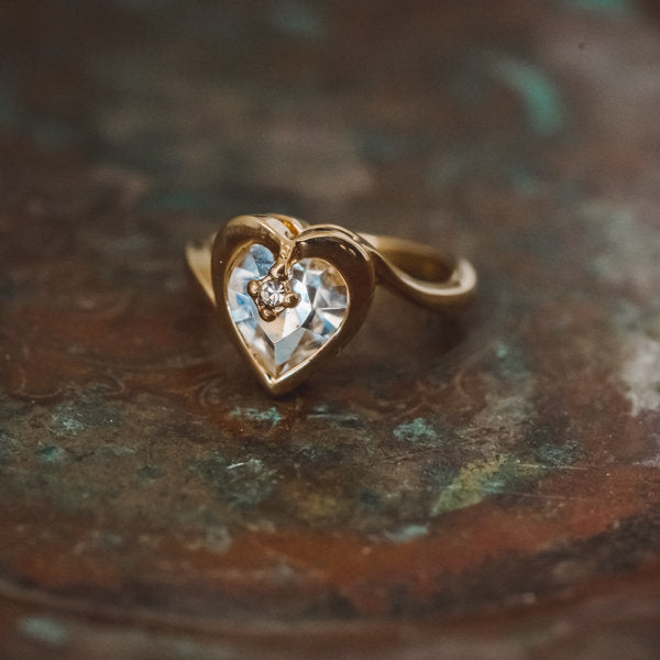 Vintage 1970s Heart Shape Ring with Clear Austrian Crystal 18k Yellow Gold Electroplated