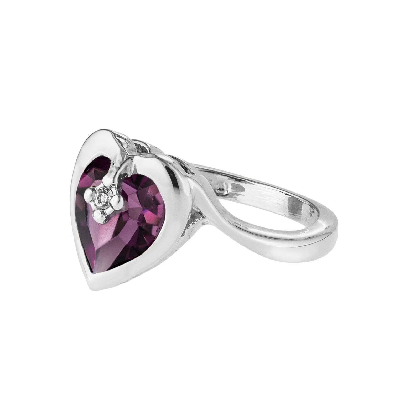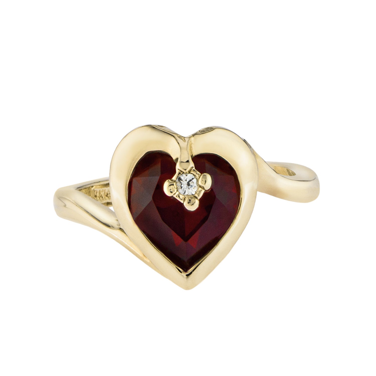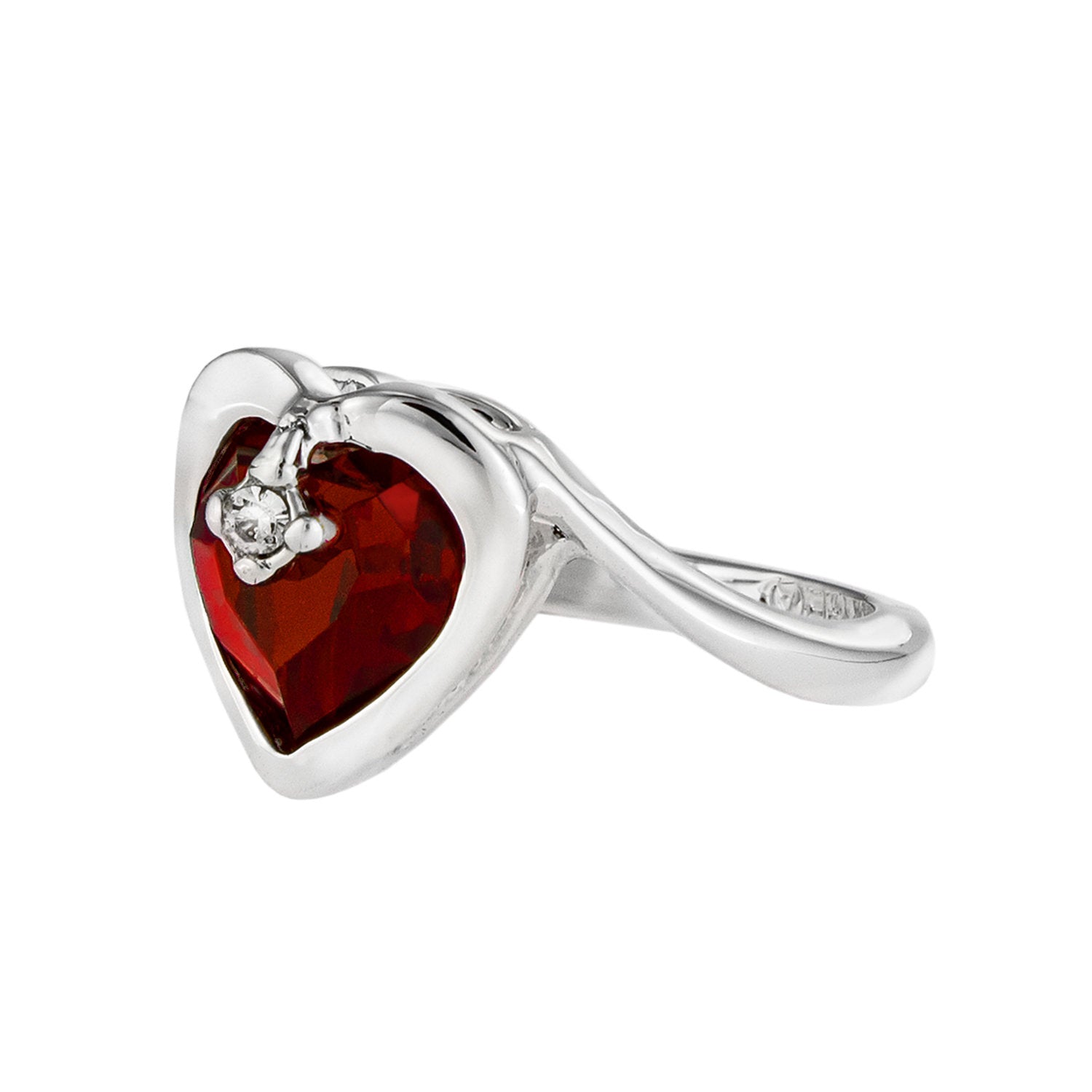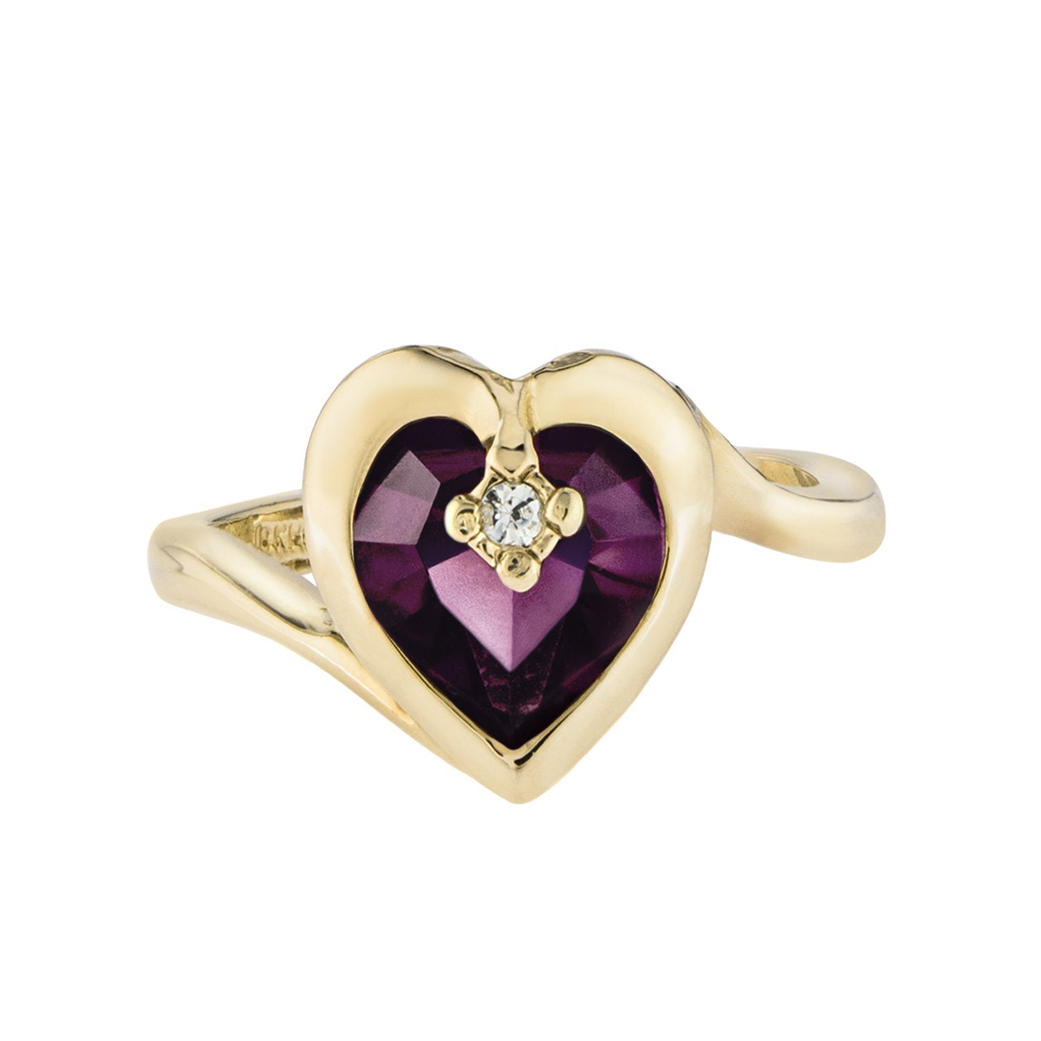 Vintage 1970s Heart Shape Ring with Clear Austrian Crystal 18k Yellow Gold Electroplated