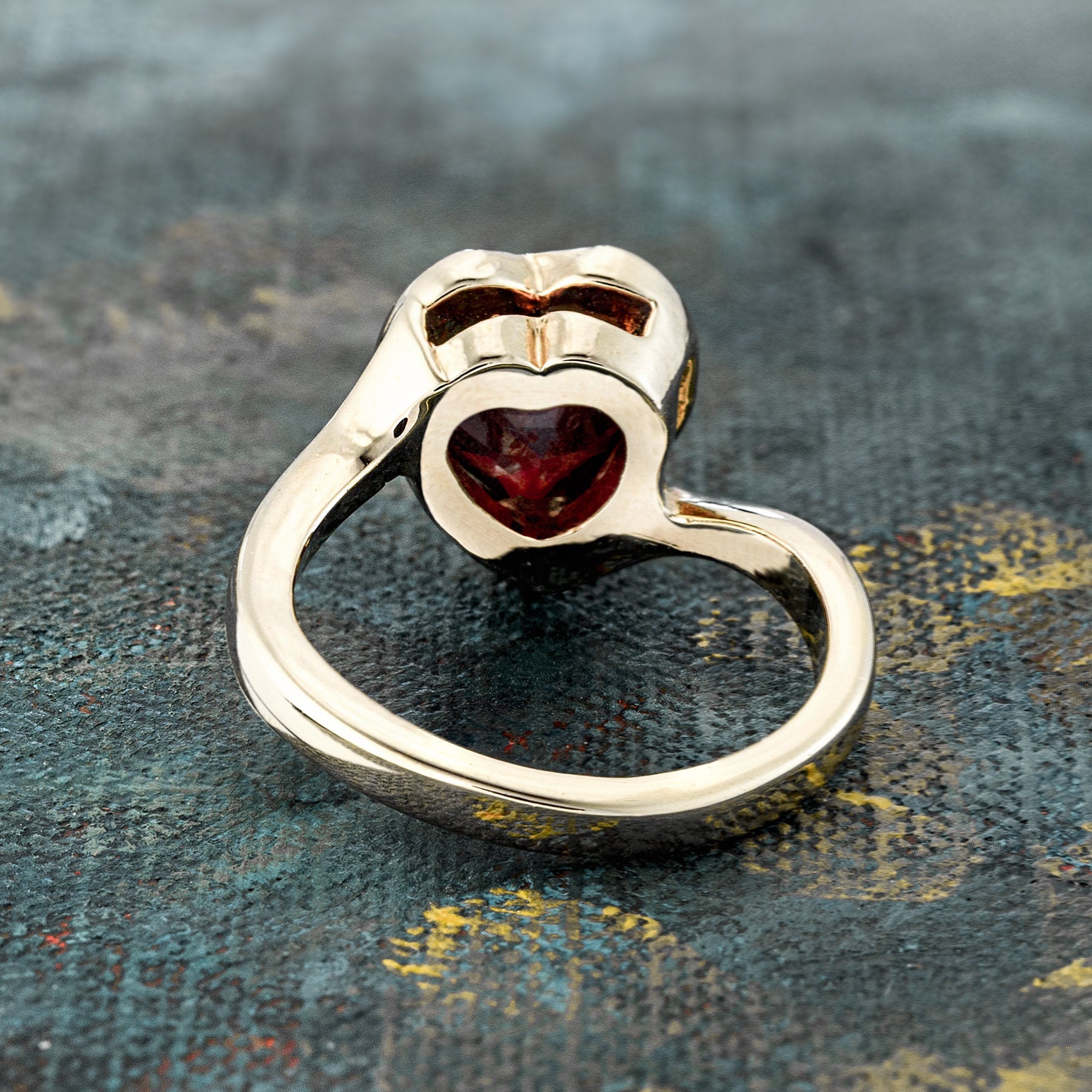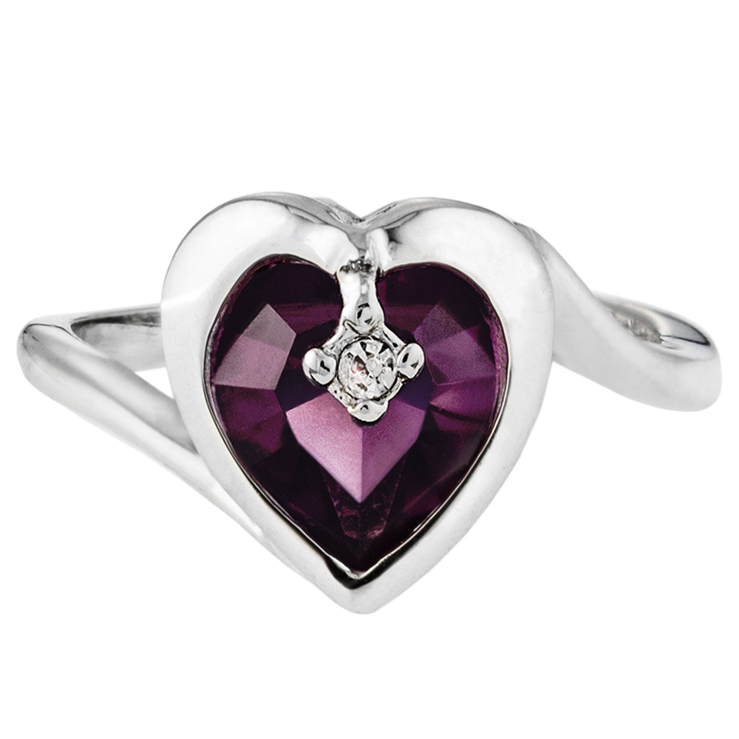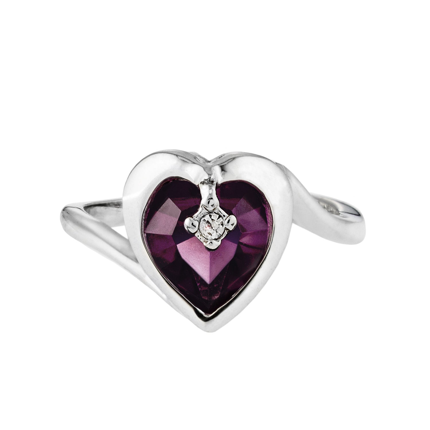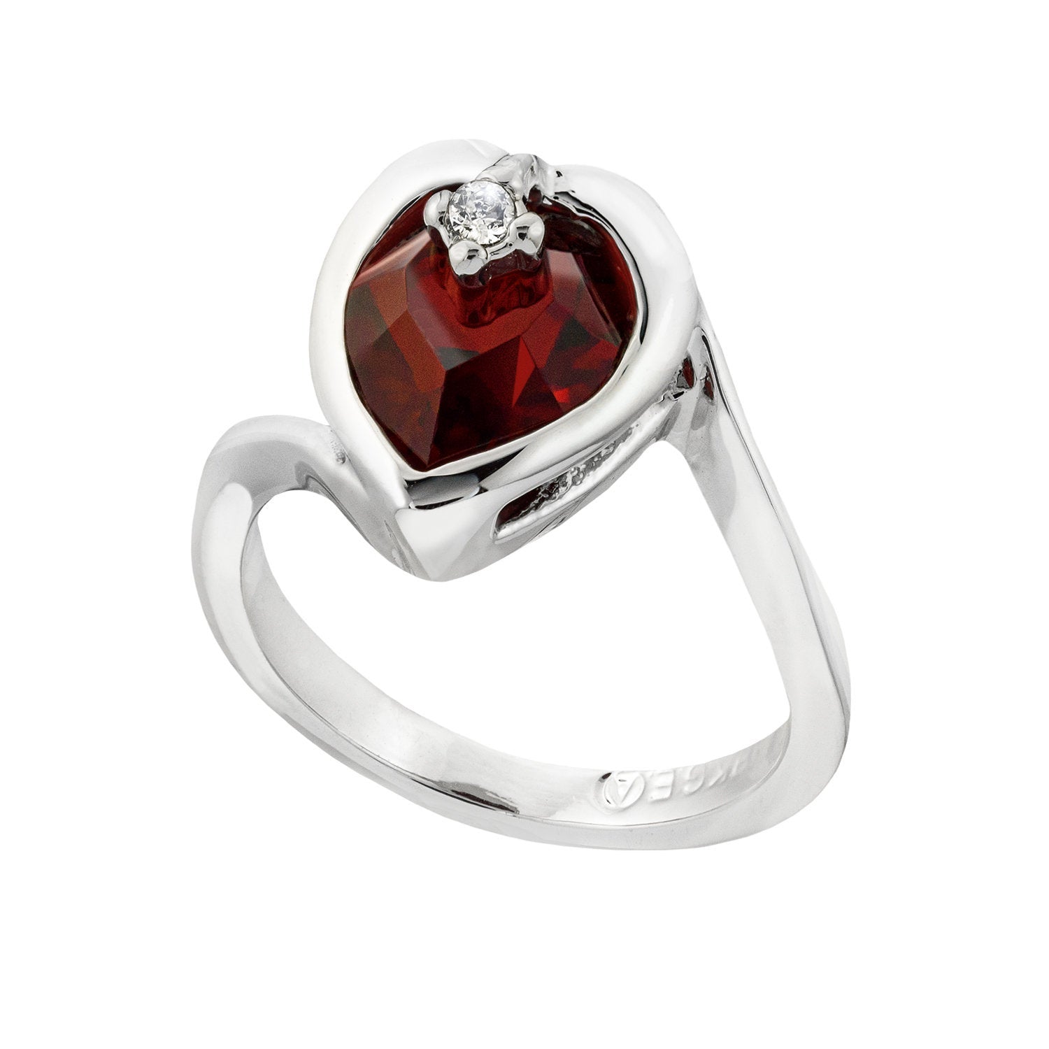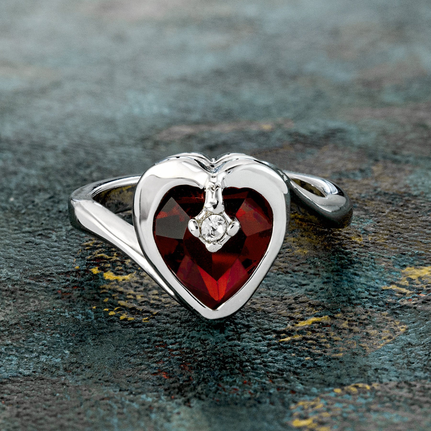 Vintage 1970s Heart Shape Ring with Clear Austrian Crystal 18k Yellow Gold Electroplated