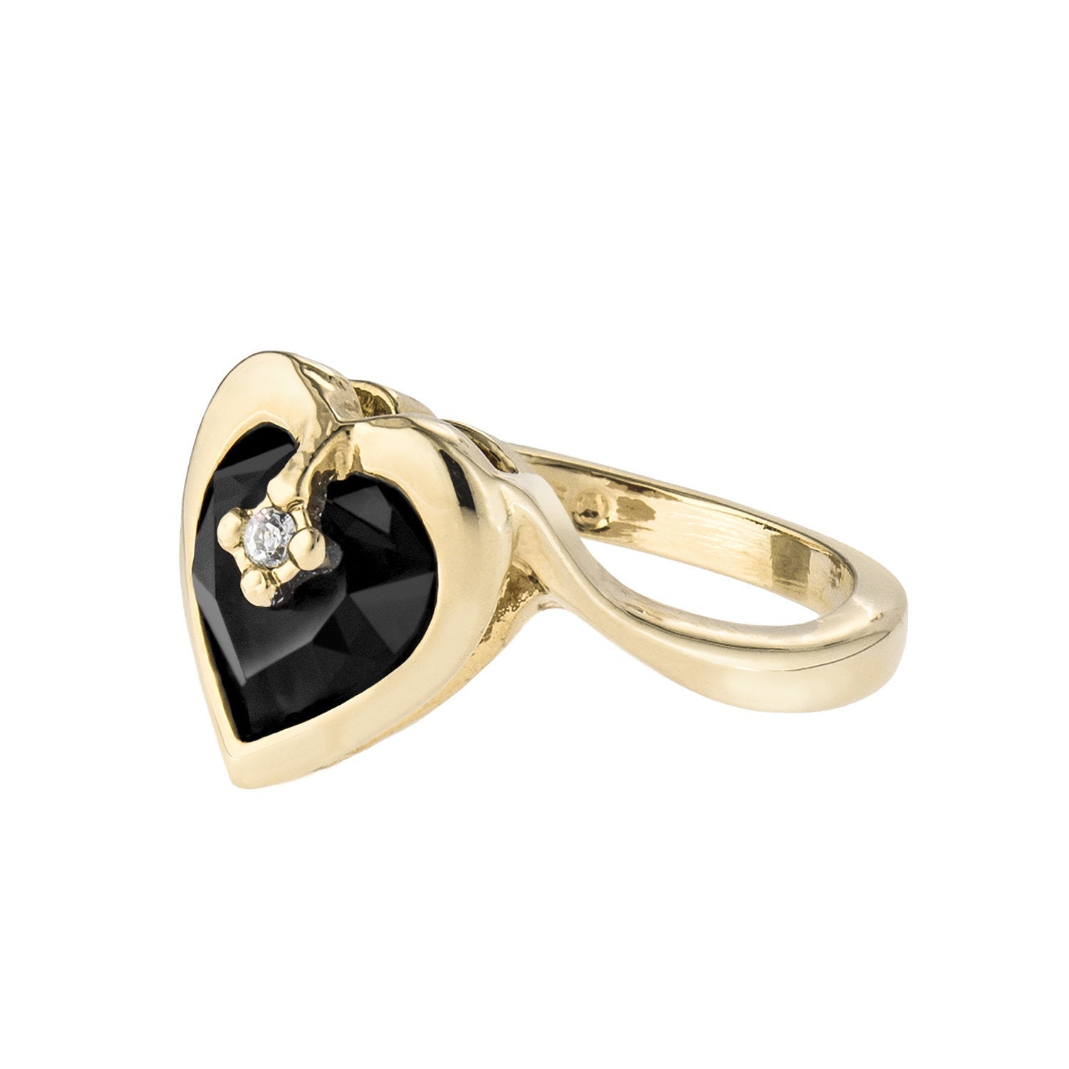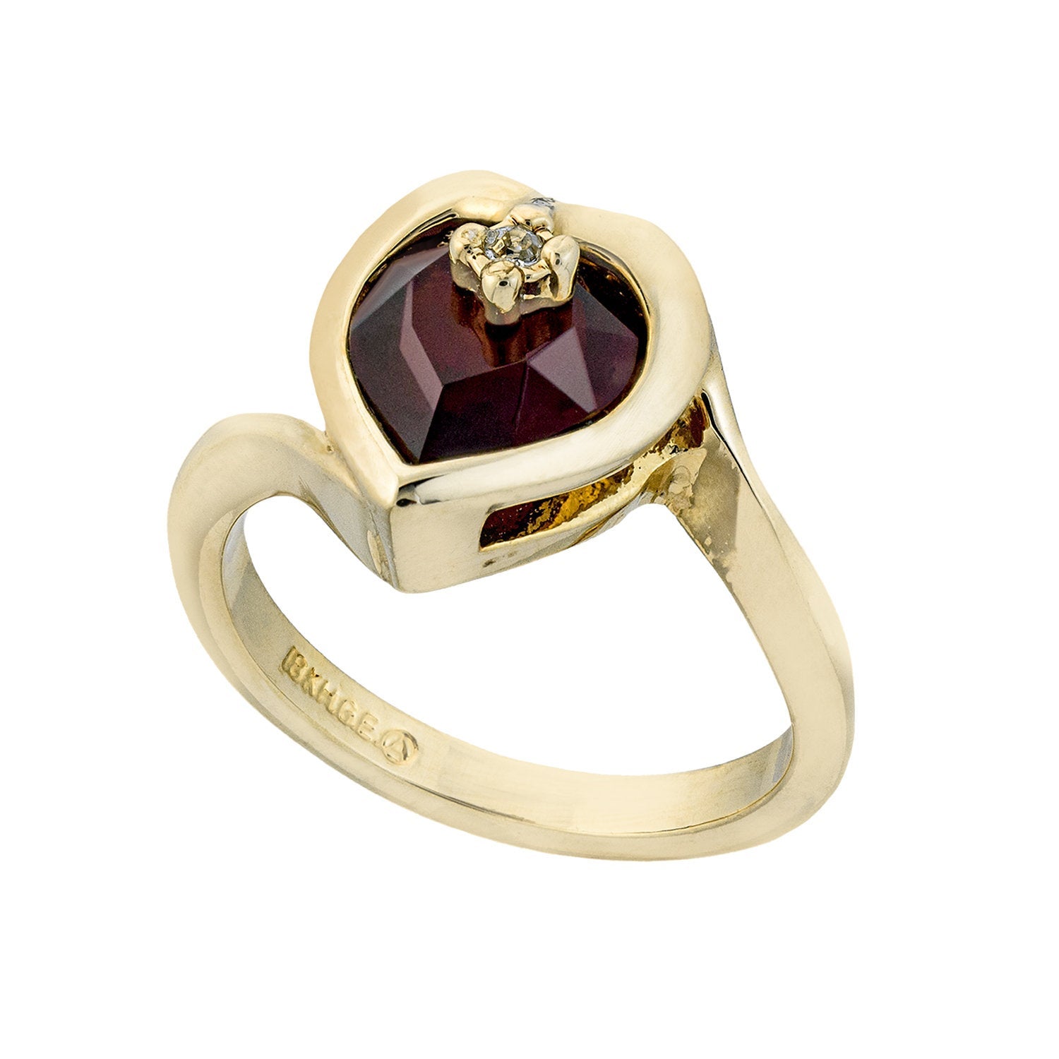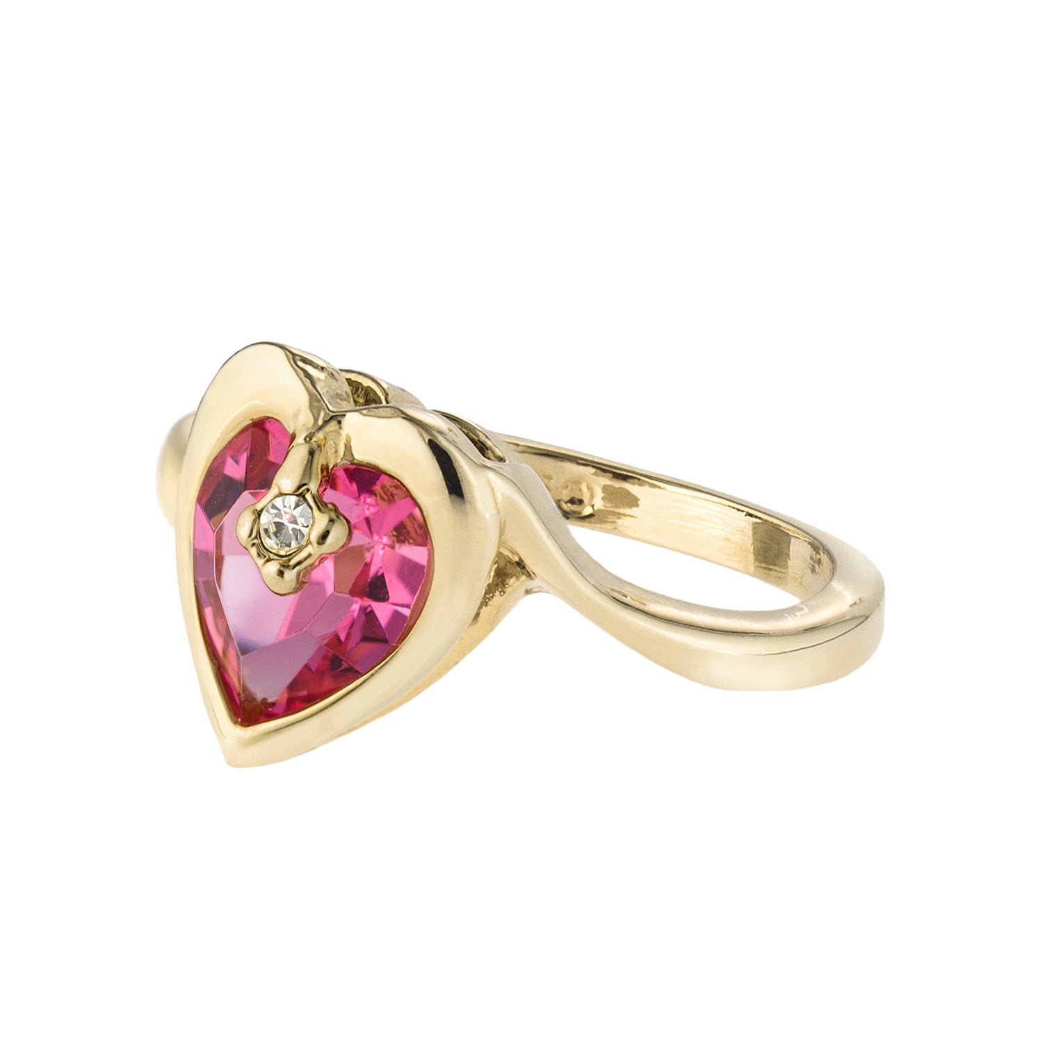 • Vintage 1970s Heart Shape Ring with Clear Austrian Crystal 18k Yellow Gold Electroplated
