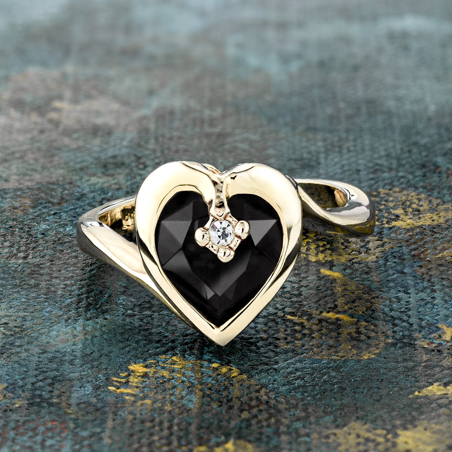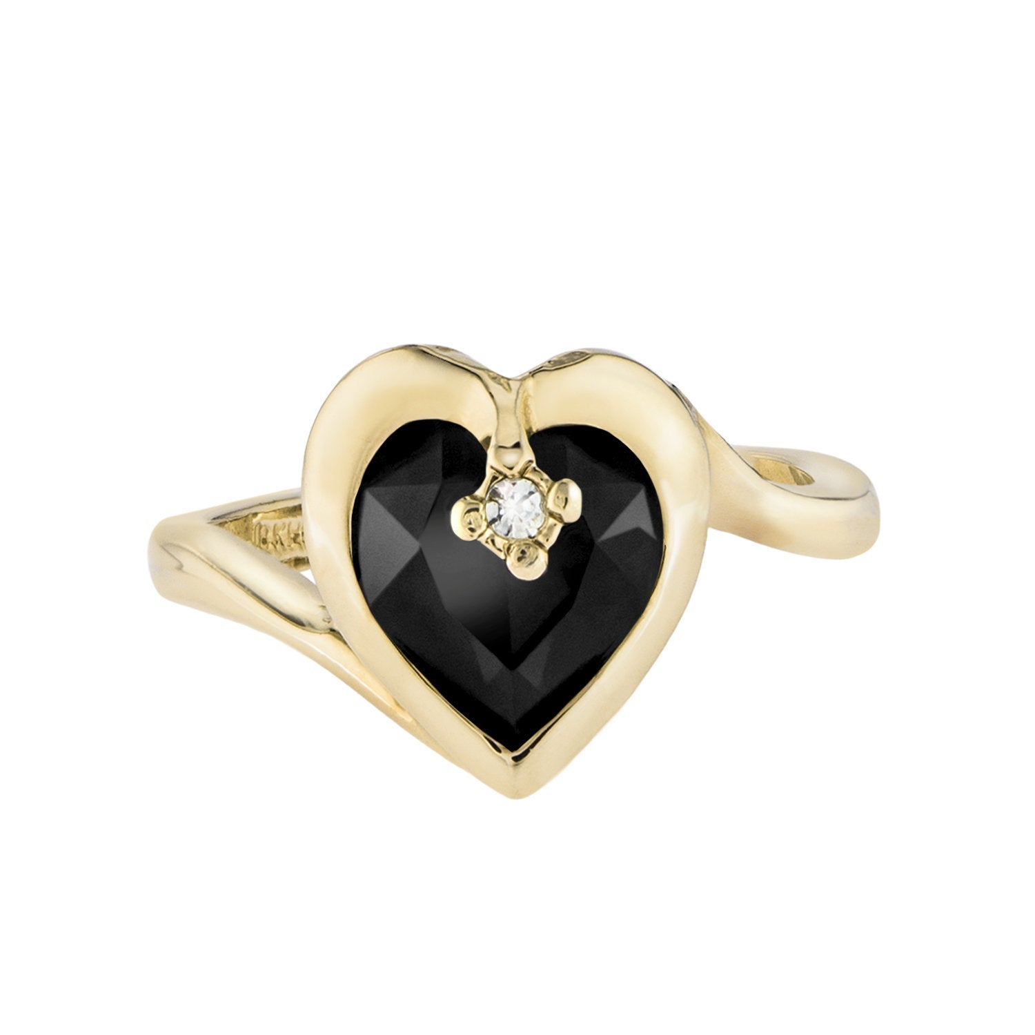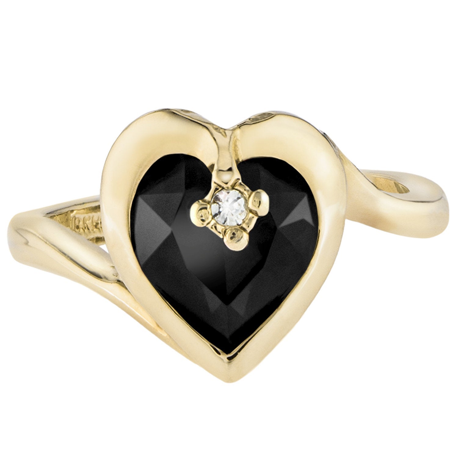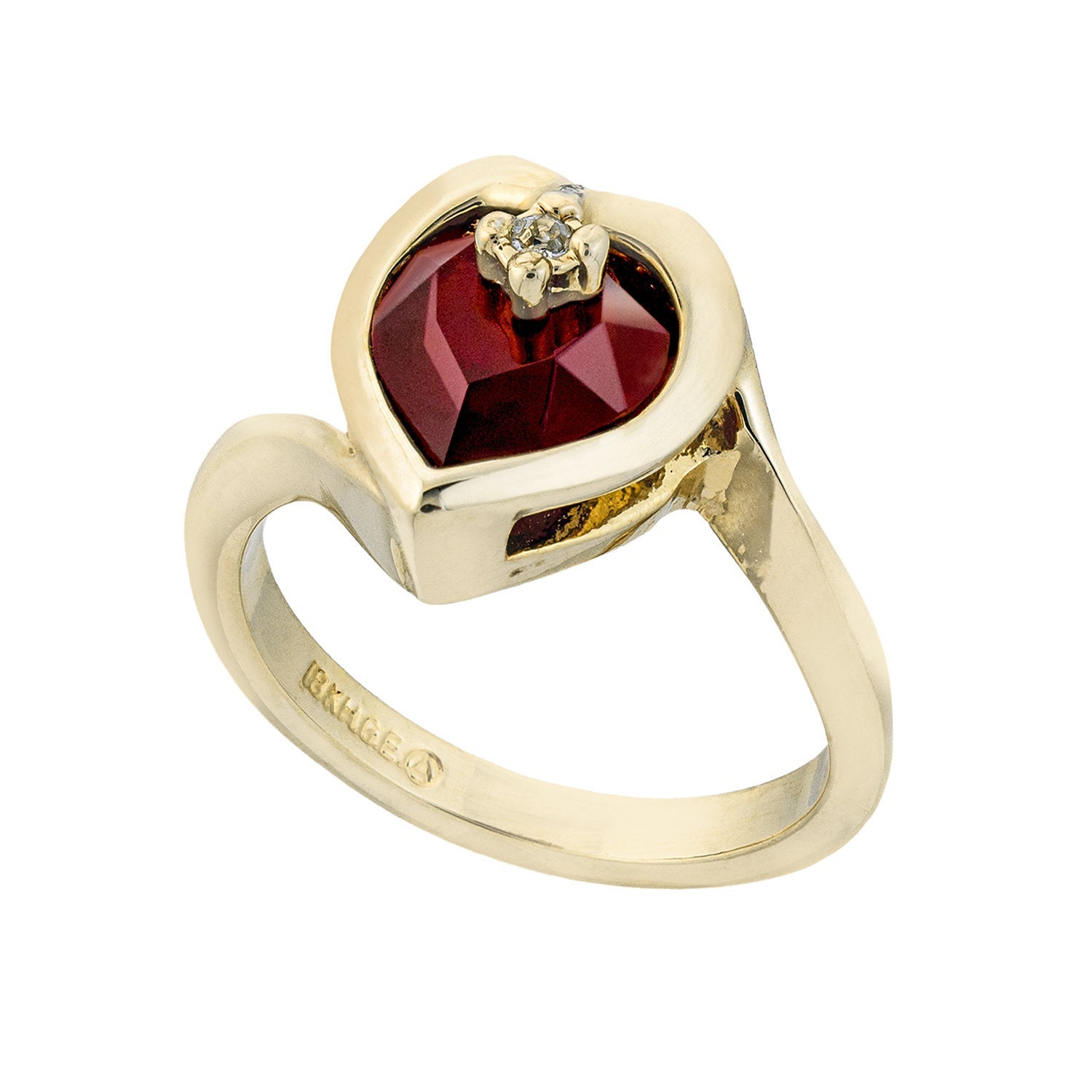 • Vintage 1970s Heart Shape Ring with Clear Austrian Crystal 18k Yellow Gold Electroplated