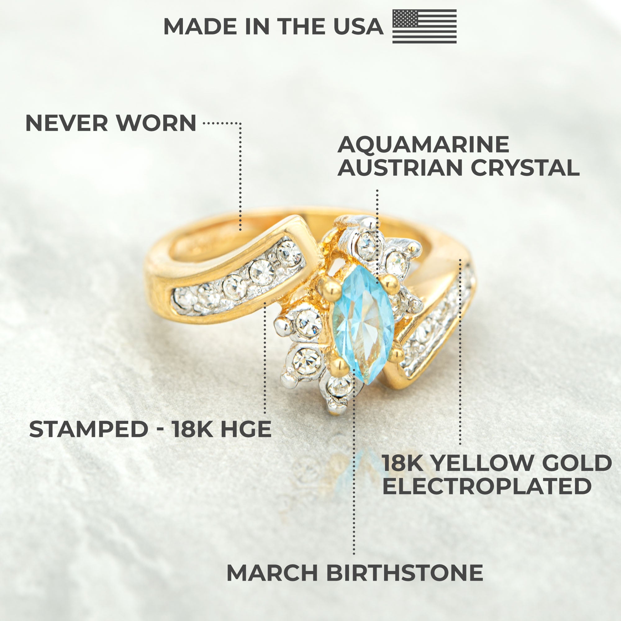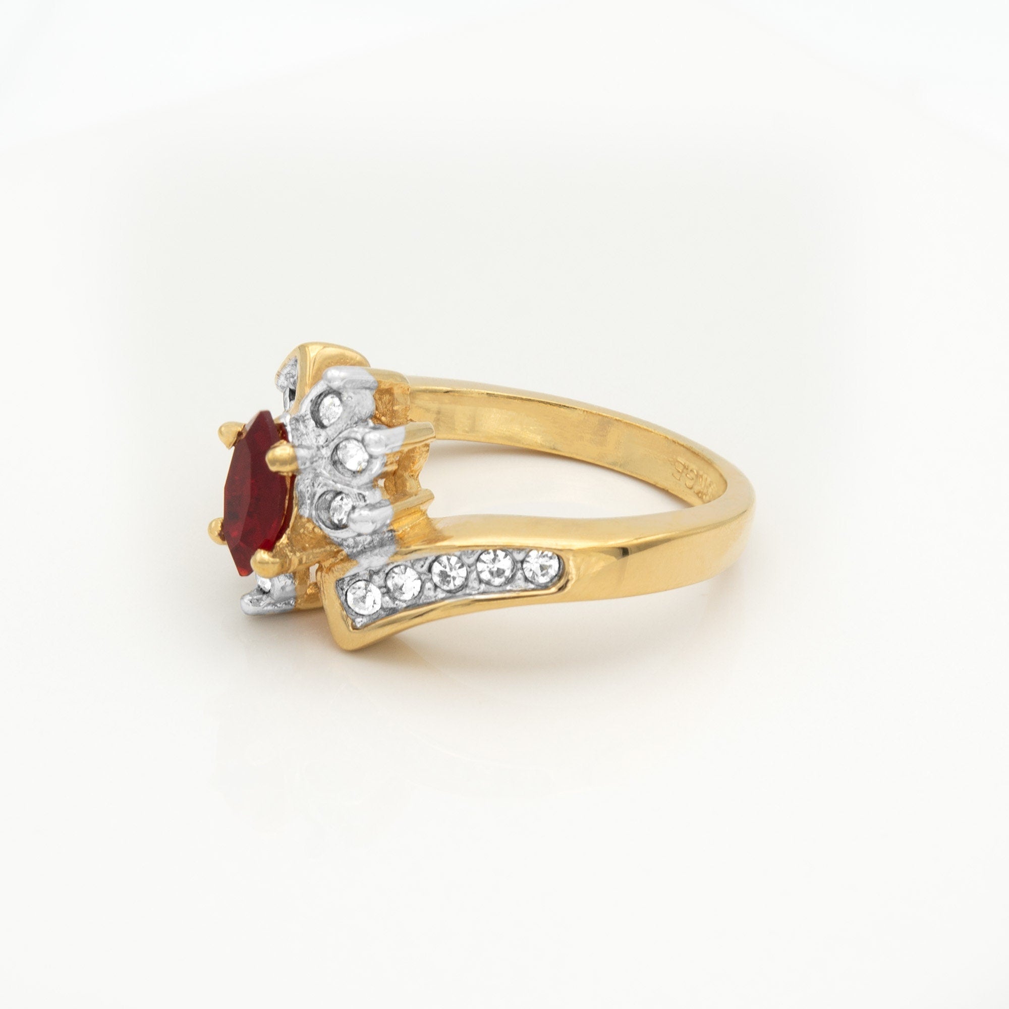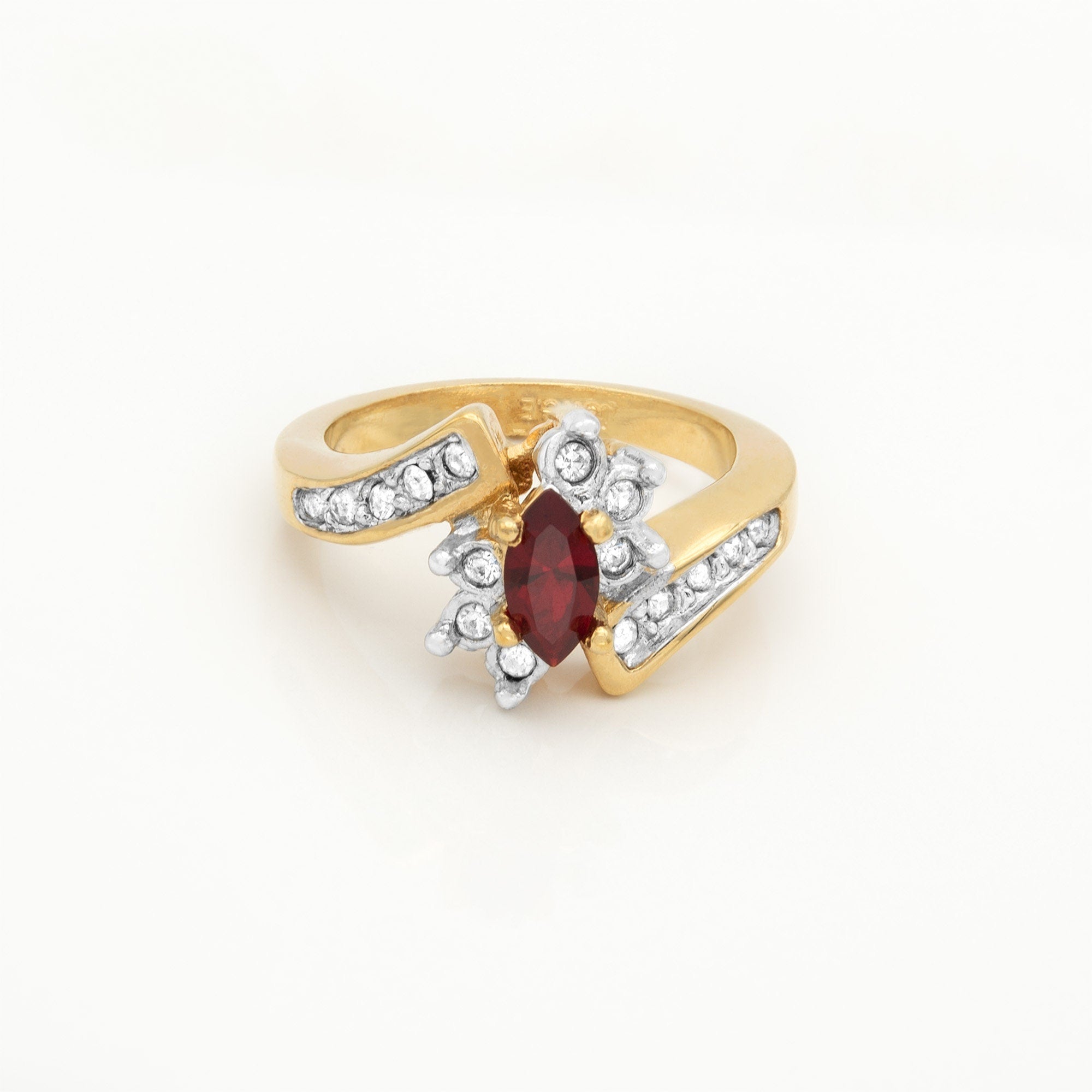 • Vintage 1980s Ring Zirconia with Clear Austrian Crystals 18k Yellow Gold Electroplated