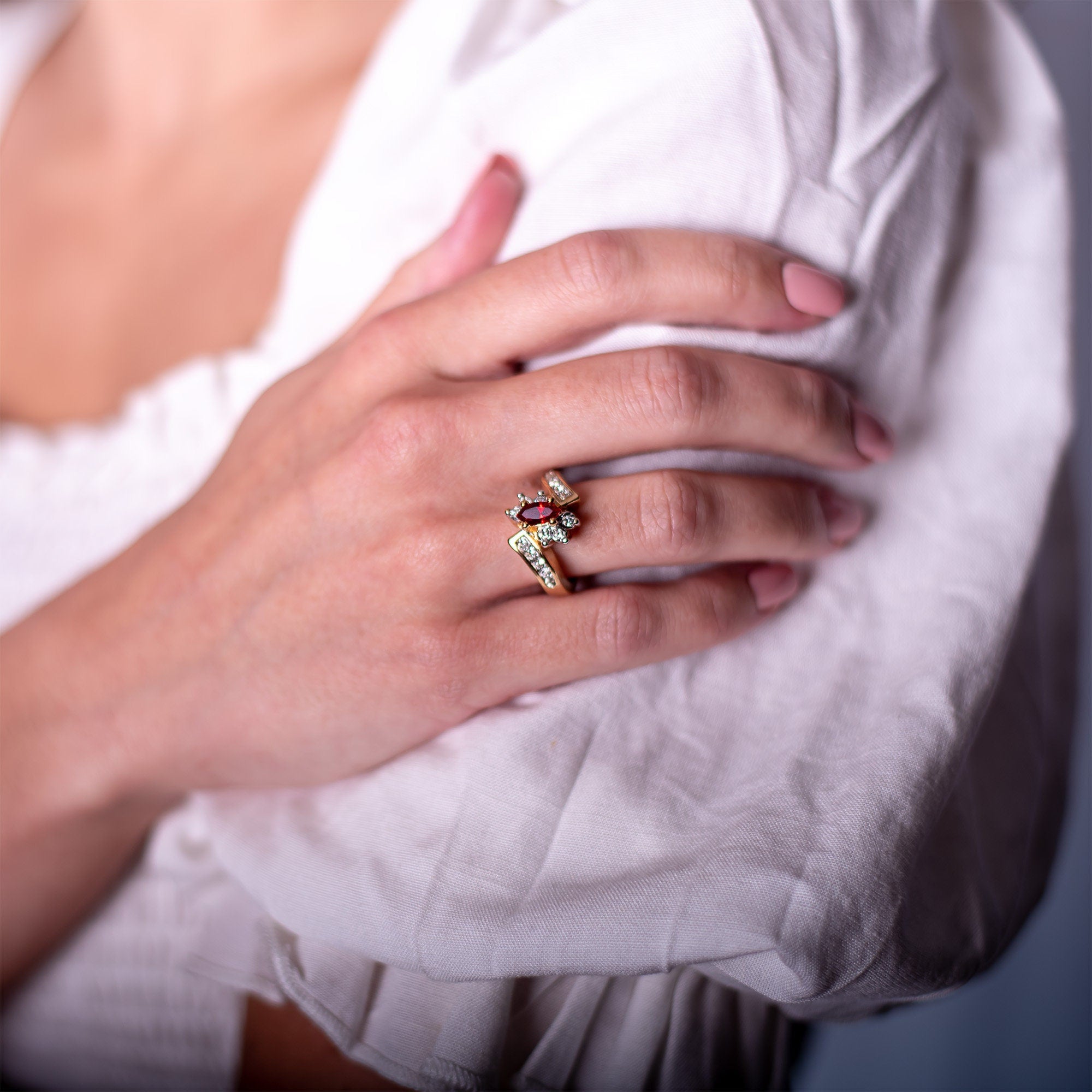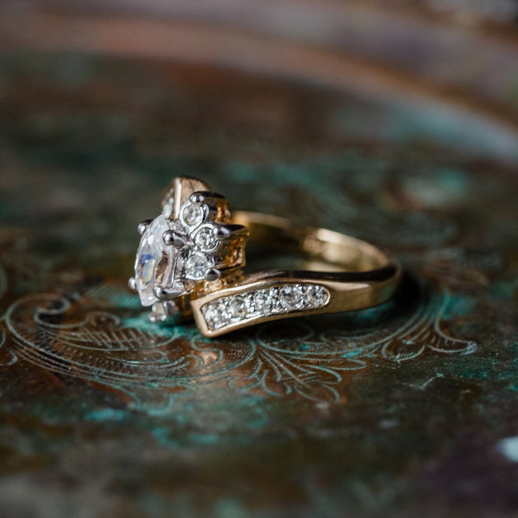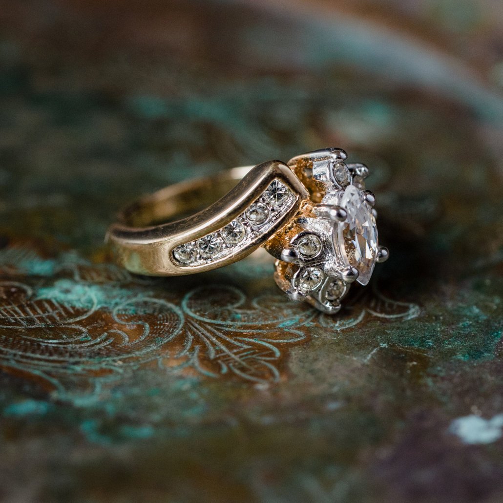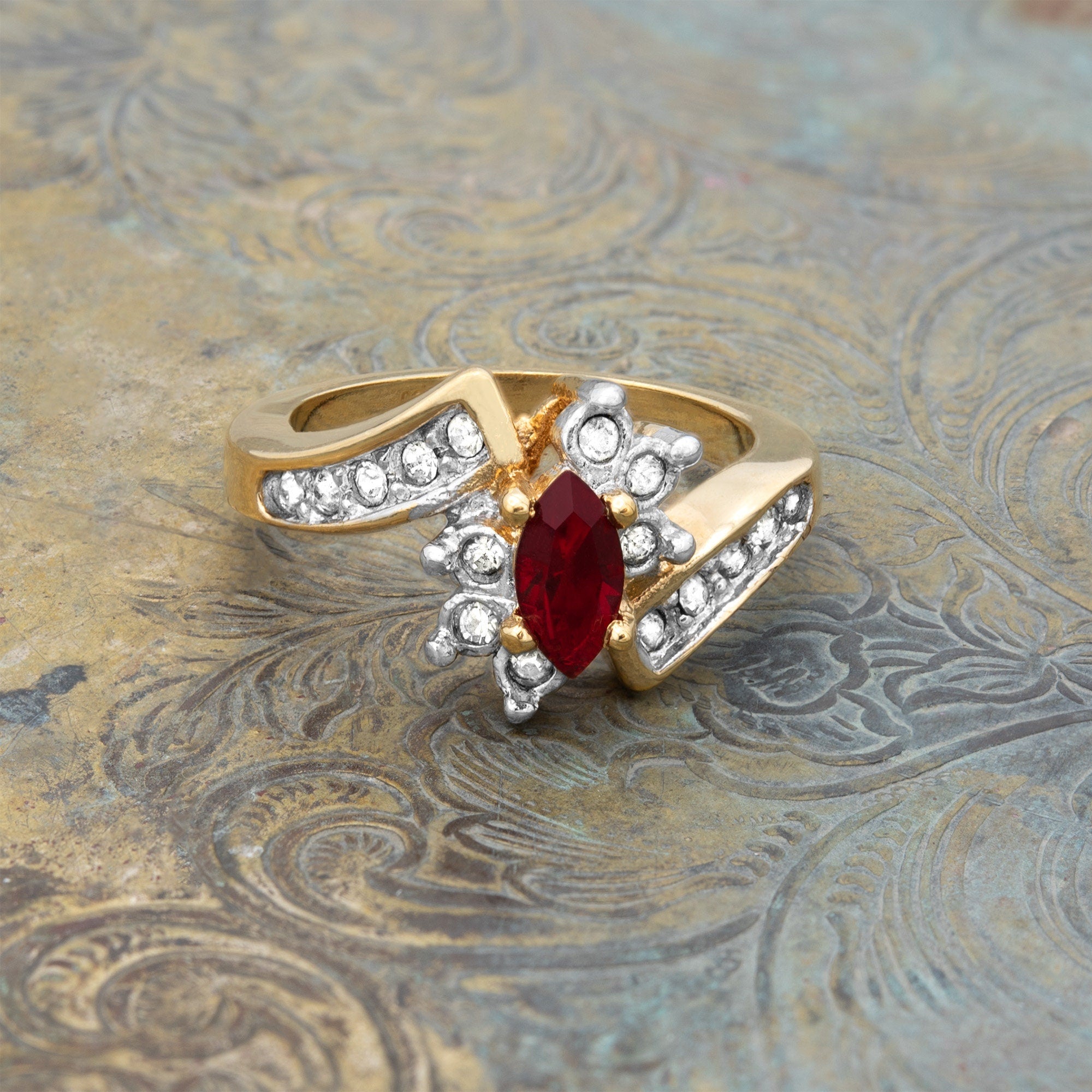 • Vintage 1980s Ring Zirconia with Clear Austrian Crystals 18k Yellow Gold Electroplated