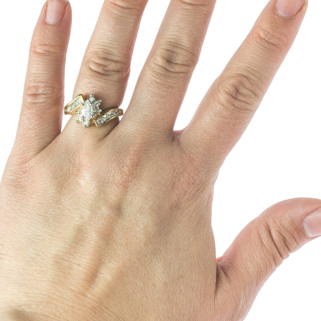 Vintage 1980s Ring Zirconia with Clear Austrian Crystals 18k Yellow Gold Electroplated