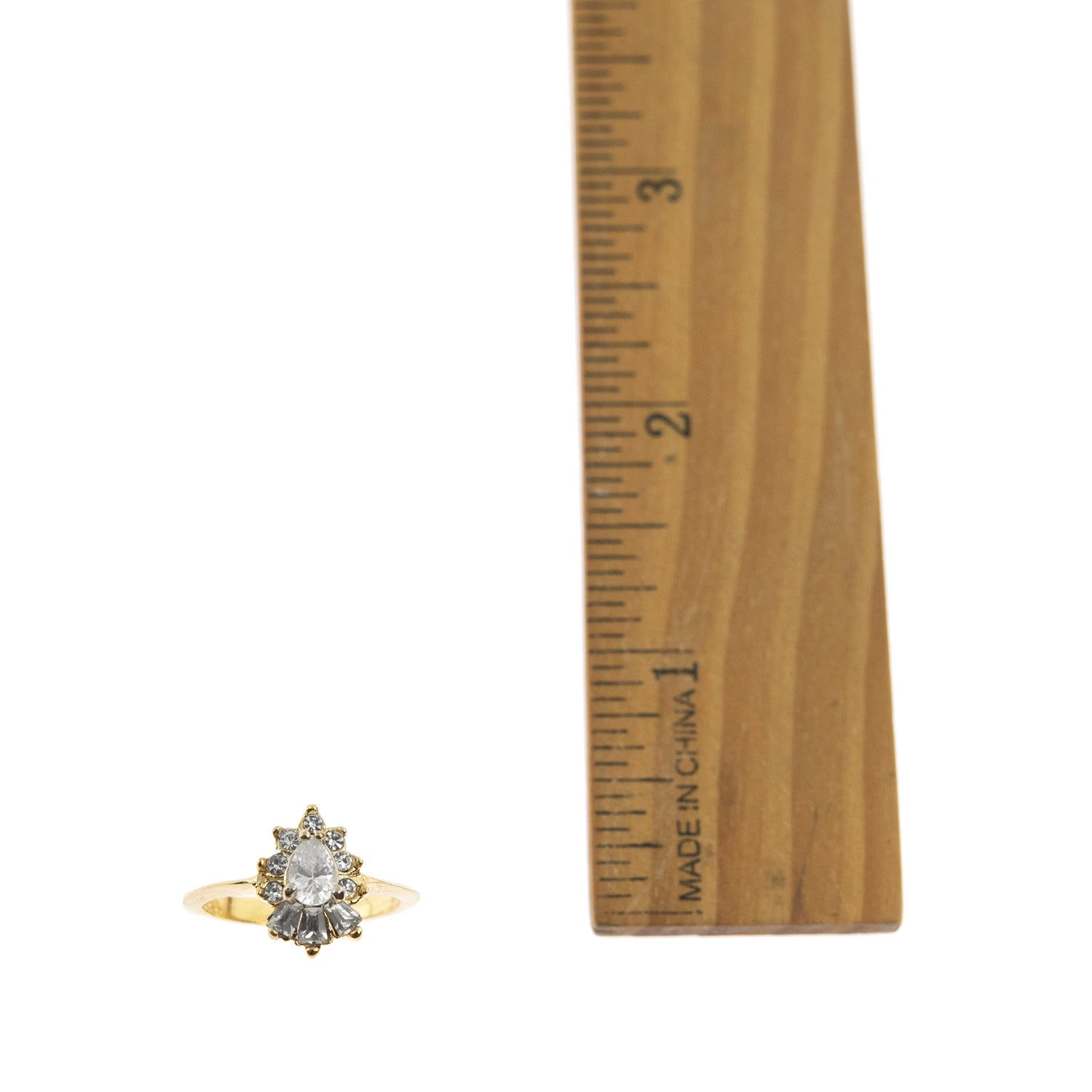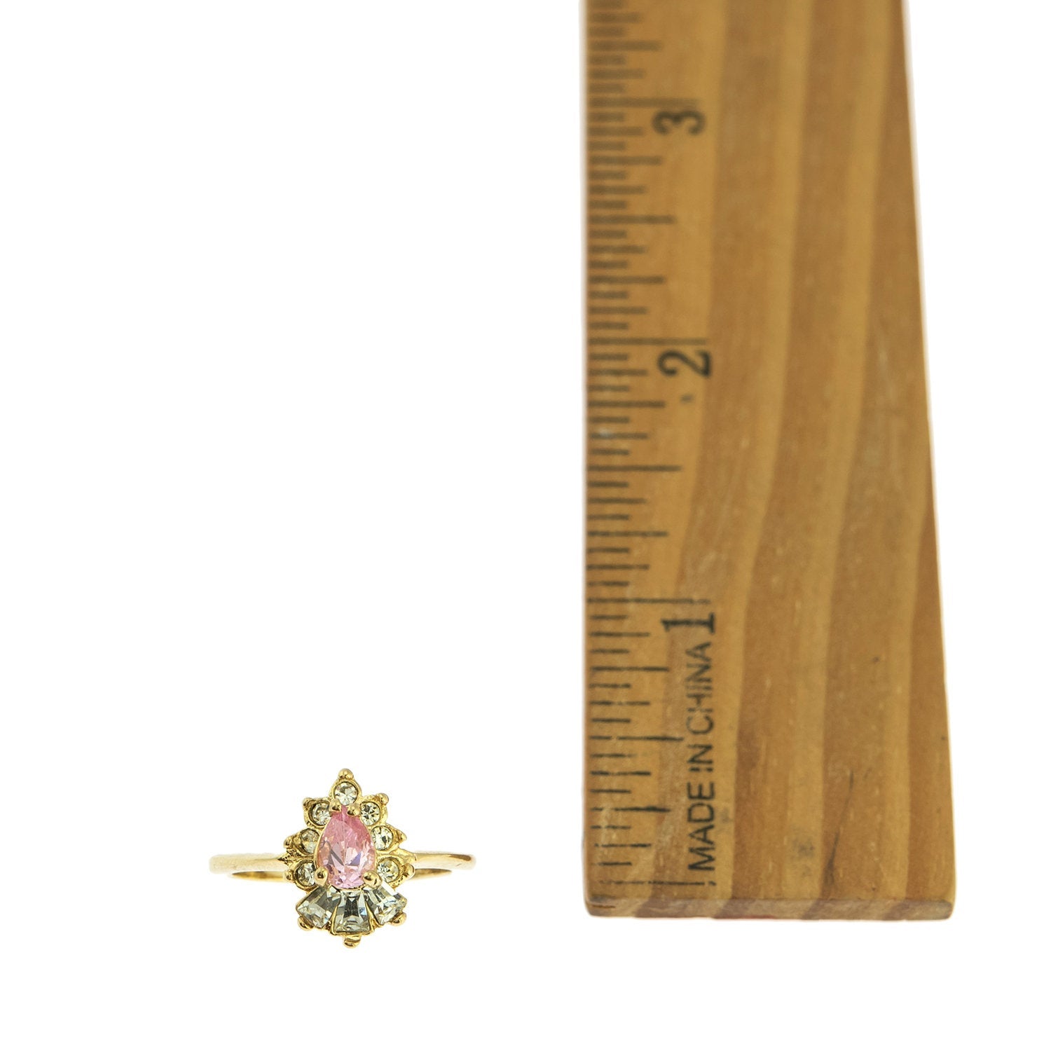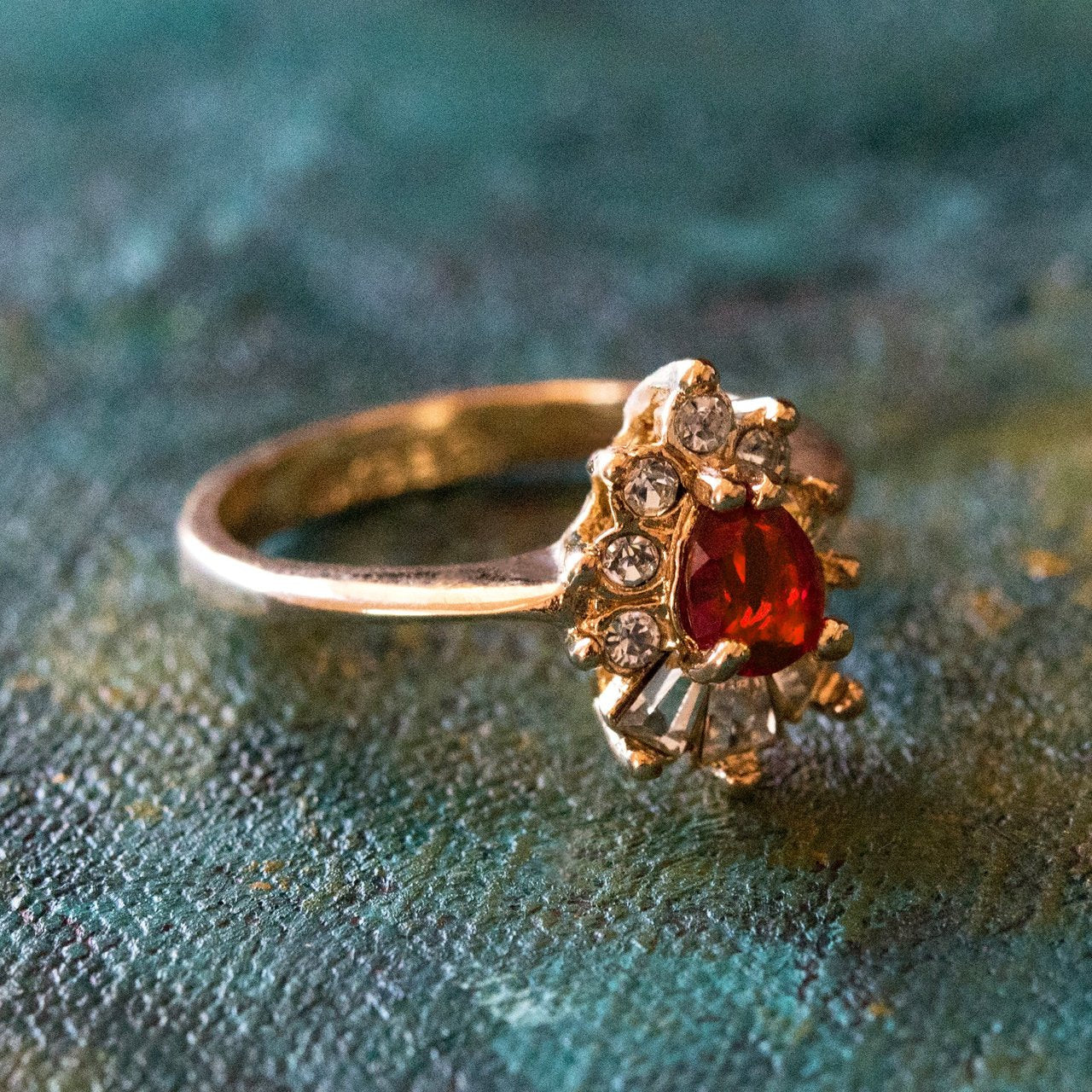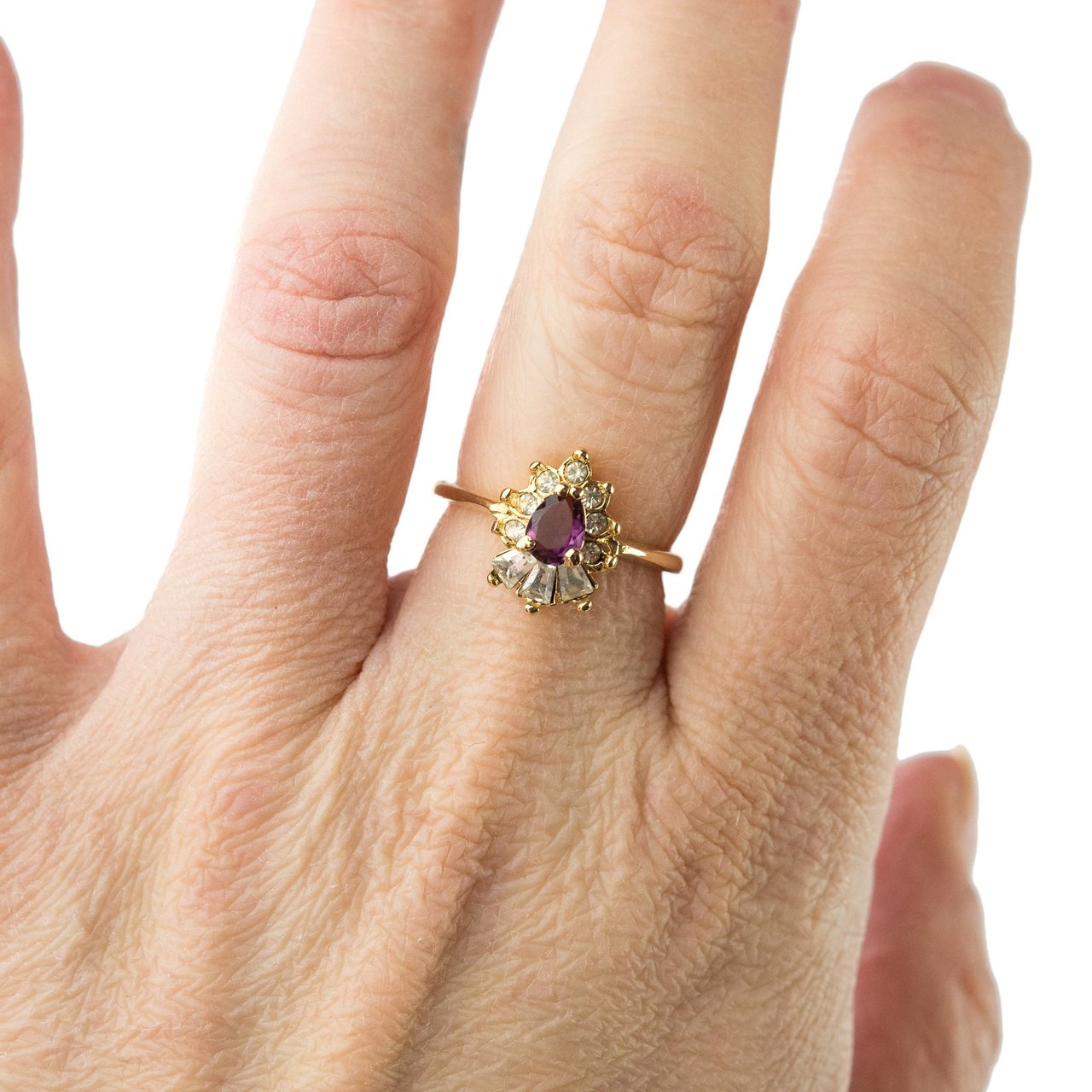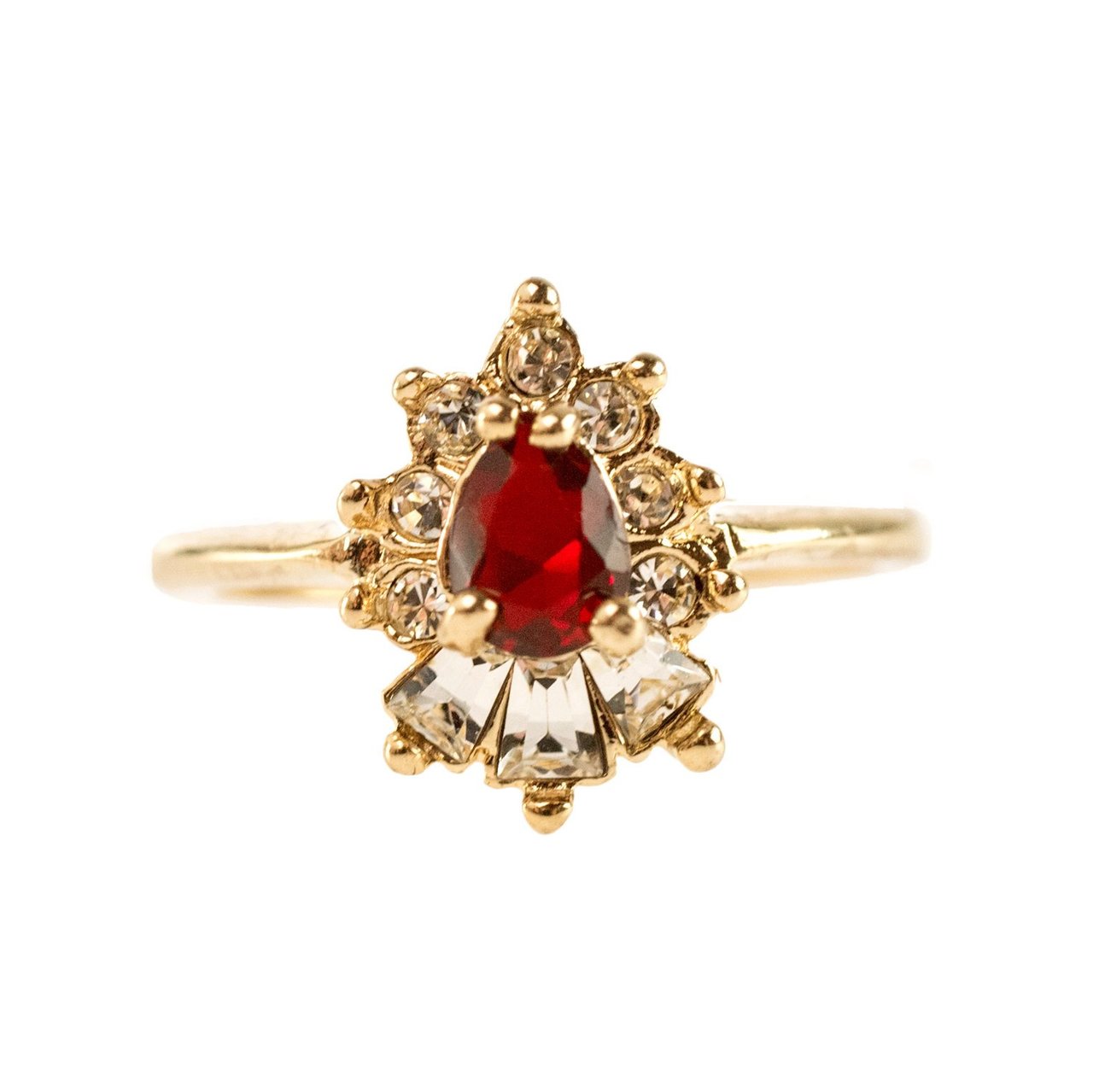 Vintage 1990's Ring Ruby and Clear Austrian Crystals 18k Yellow Gold Plated