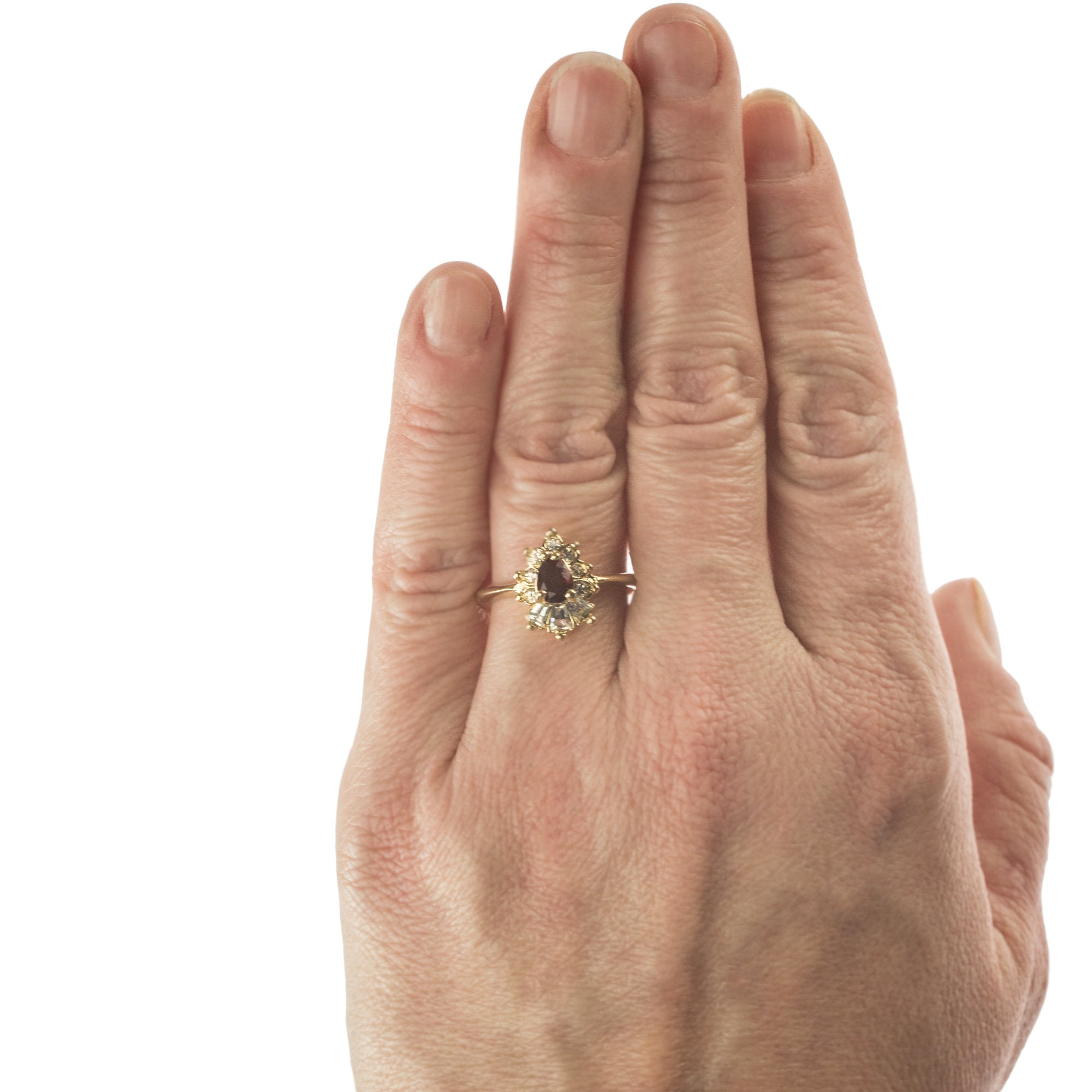 • Vintage 1990's Ring Ruby and Clear Austrian Crystals 18k Yellow Gold Plated