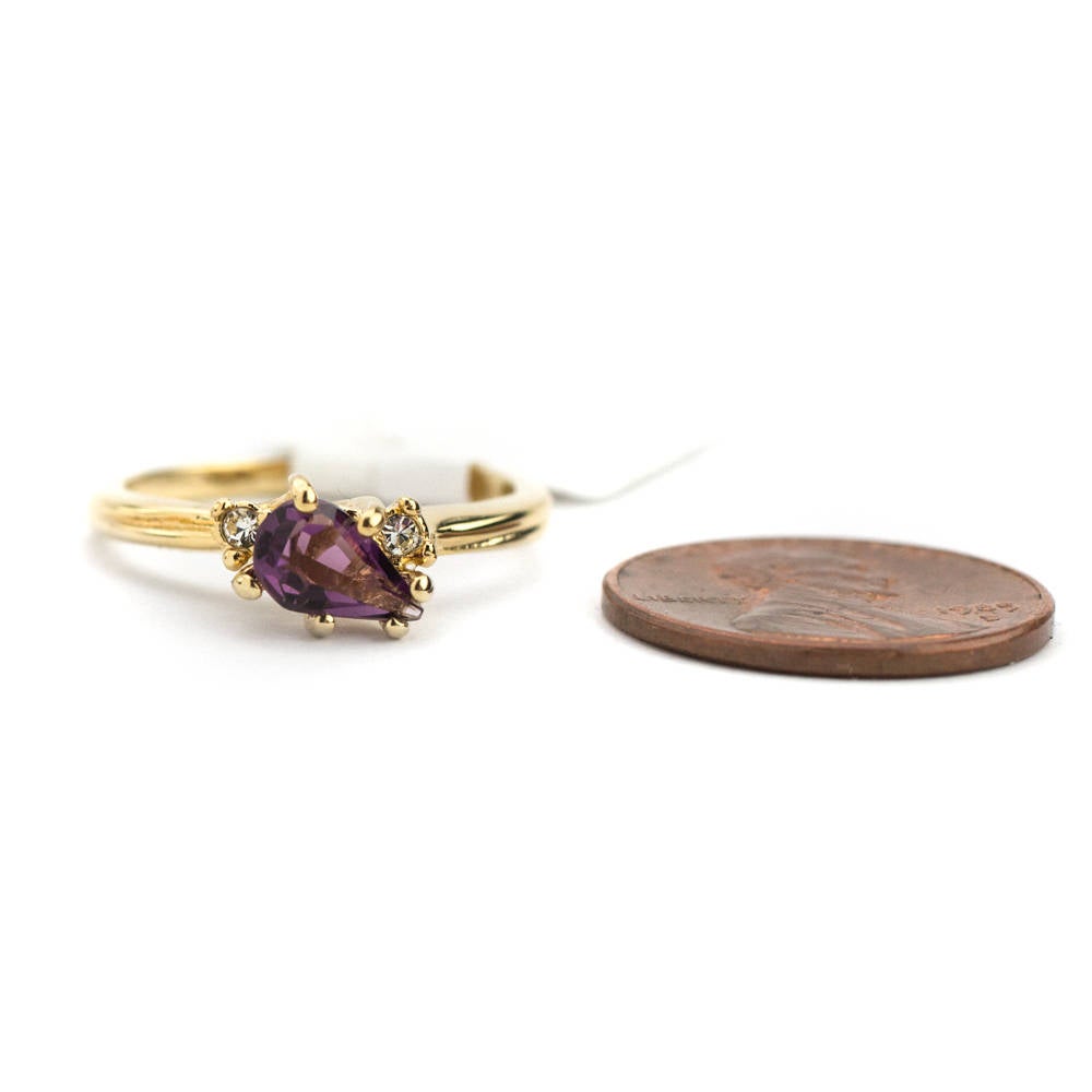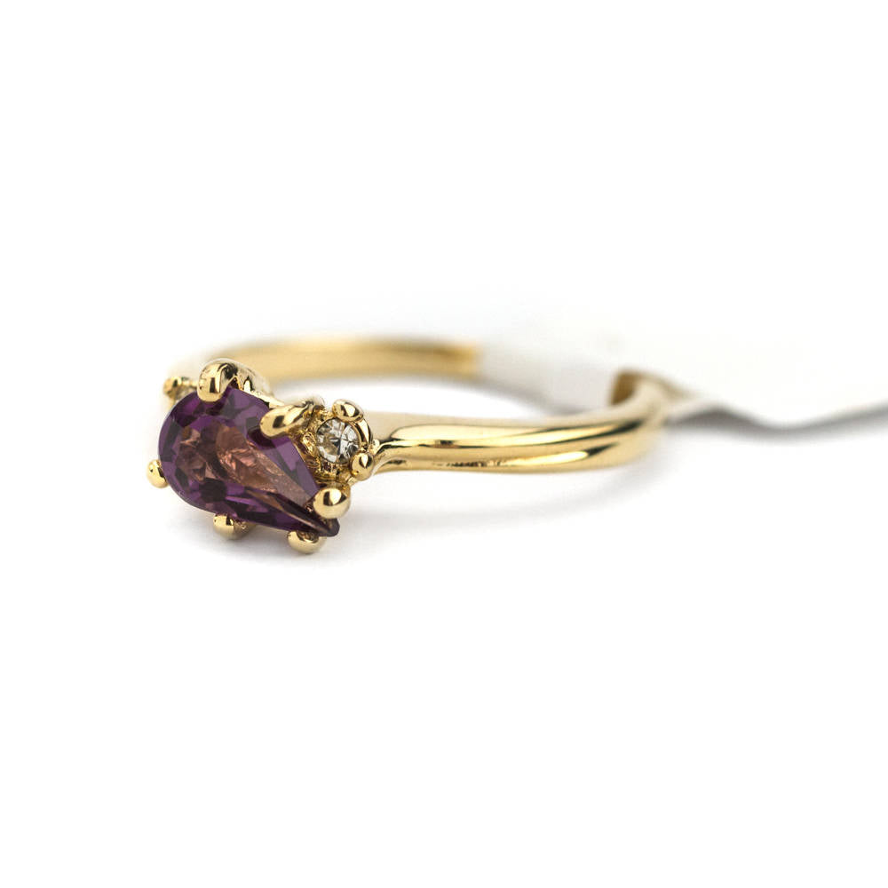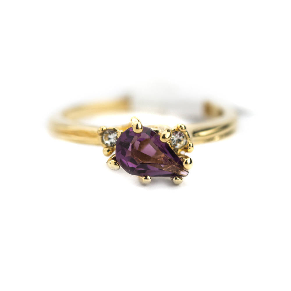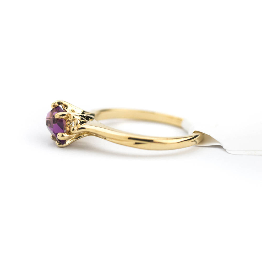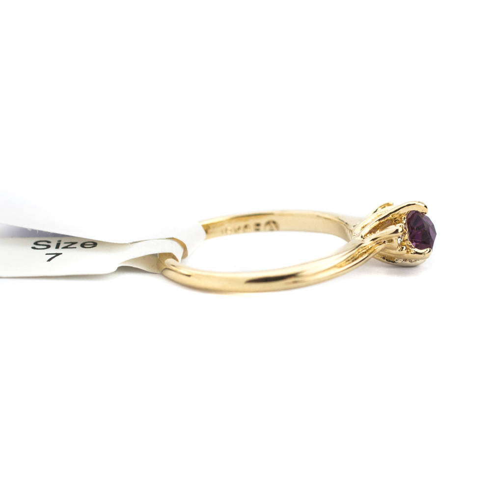 • Vintage Amethyst and Clear Austrian Crystals 18k Yellow Gold Electroplated Ring Made in USA