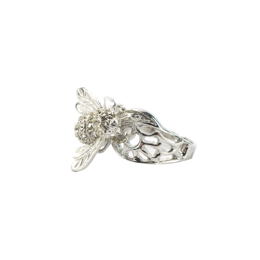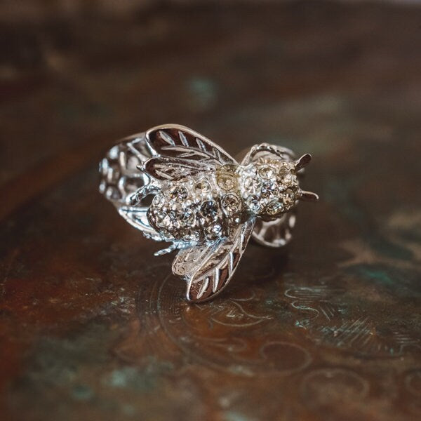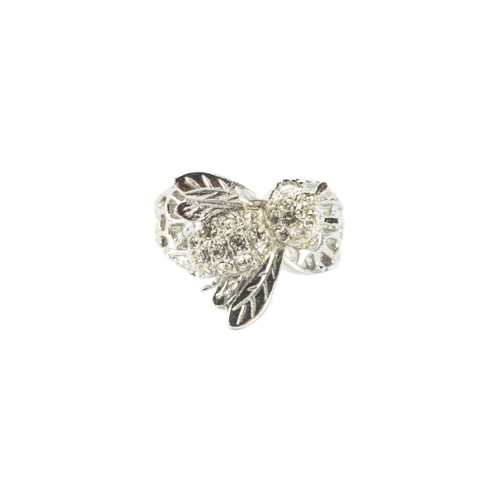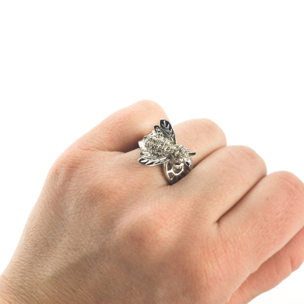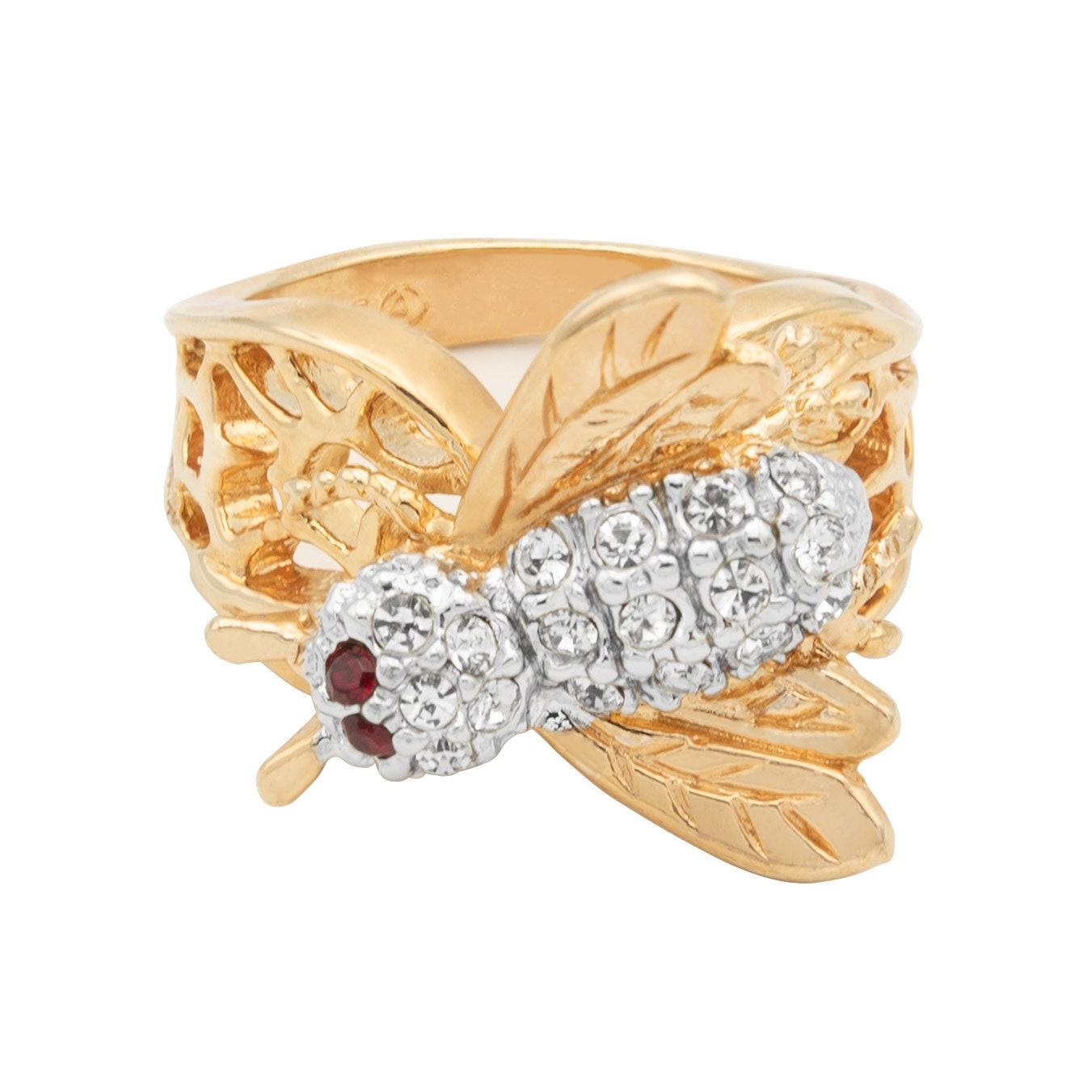 Vintage Ring Bee Ring Clear Swarovski Crystals 18kt Gold Insect Womans Jewlery Handmade #R681 Antique Rings