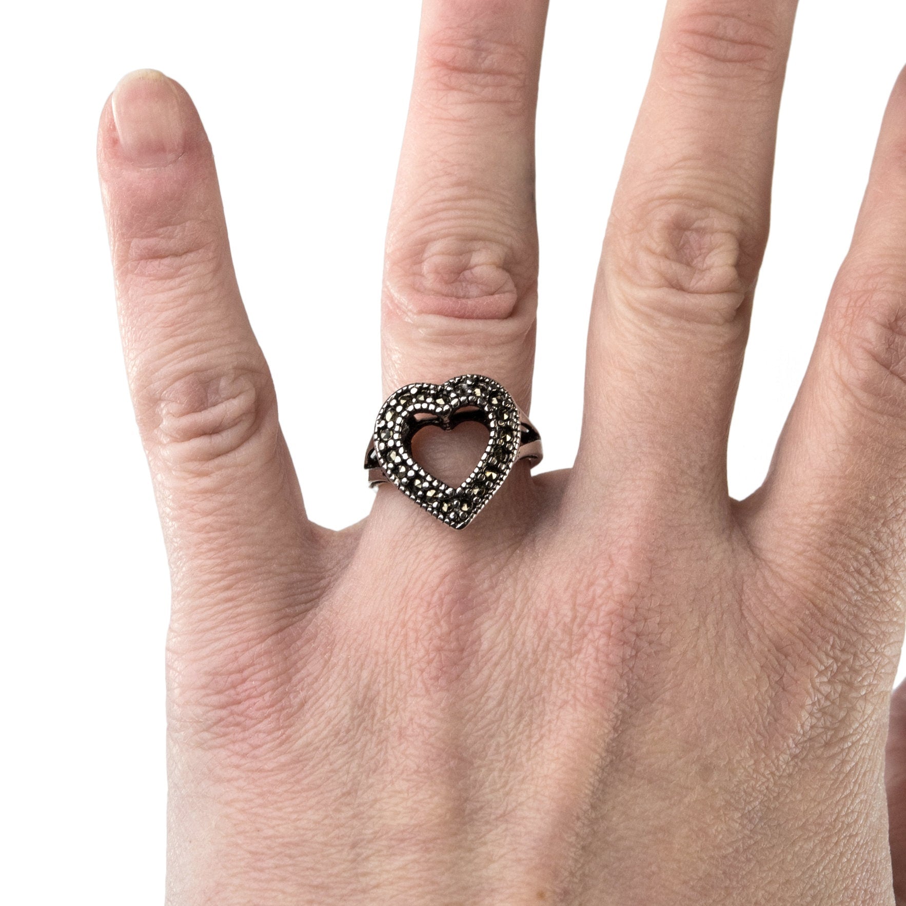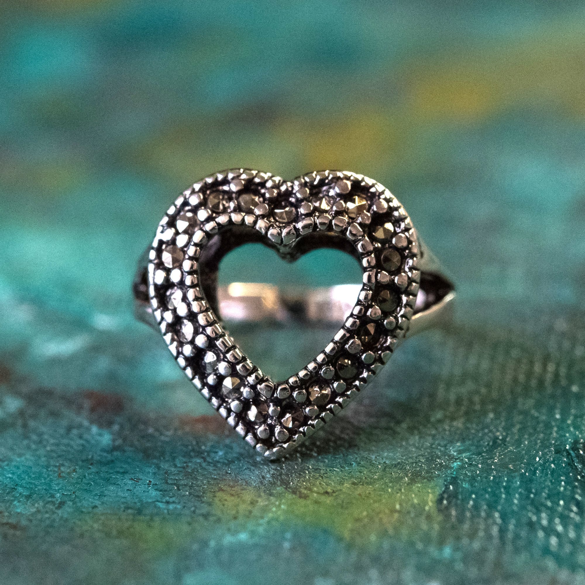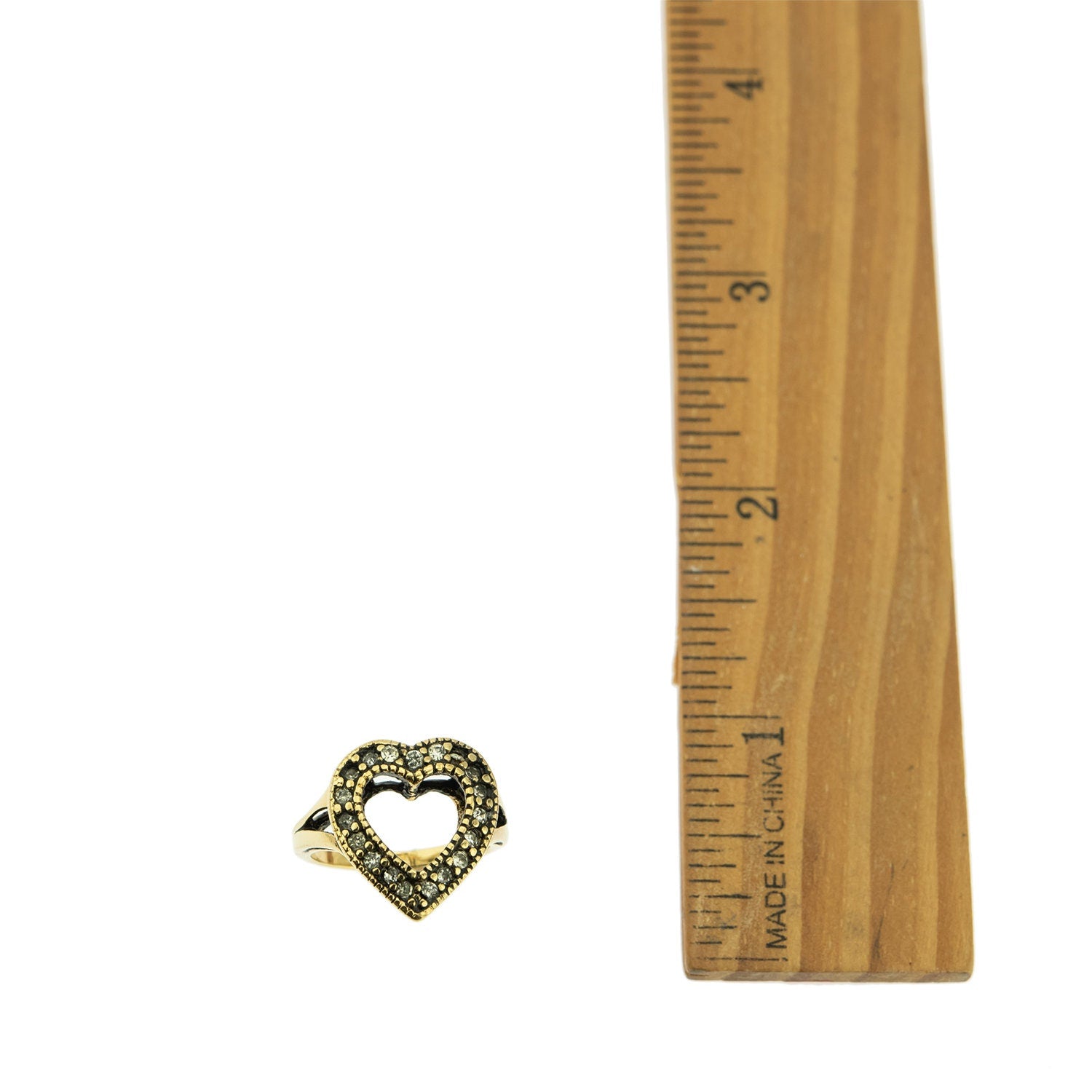Clear Swarovski Crystal Heart Ring Antiqued 18k Yellow Gold Electroplated Made in Providence, RI, USA Stamped - 18k HGE