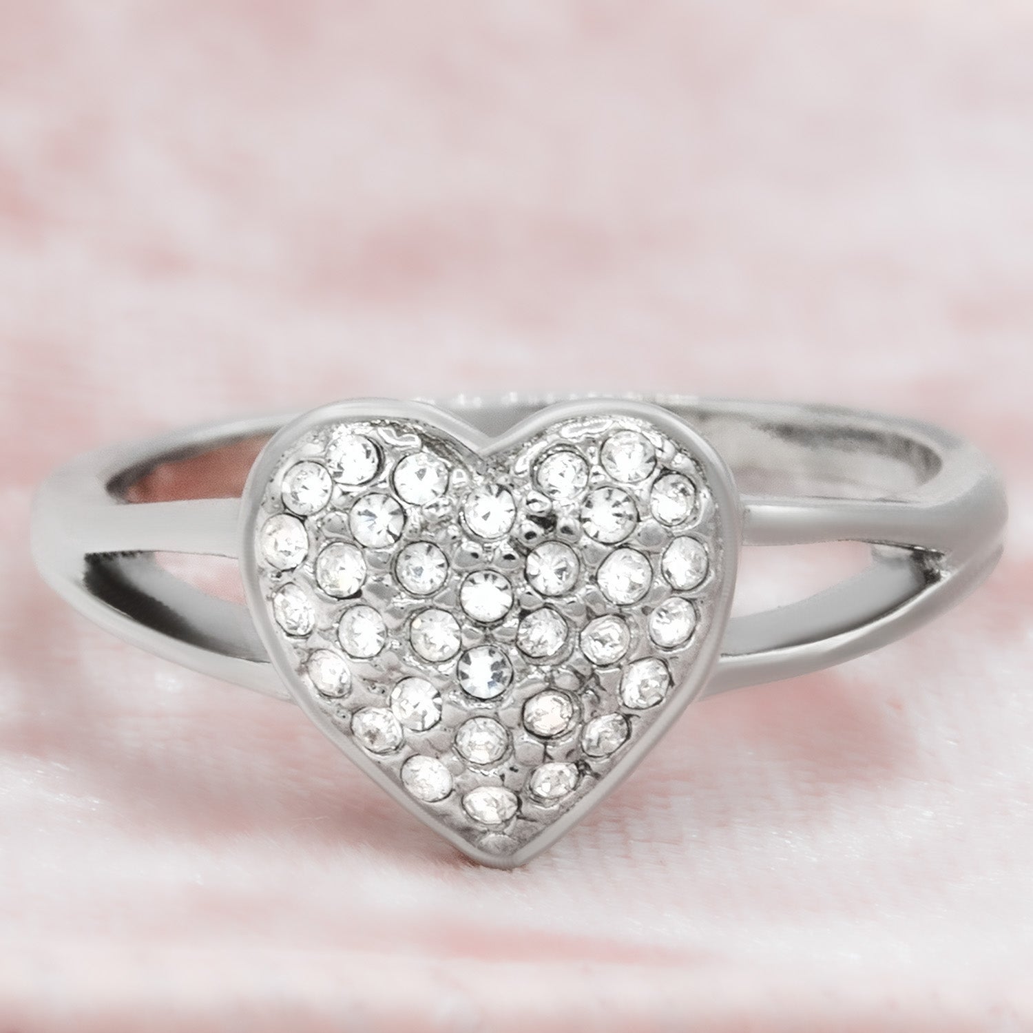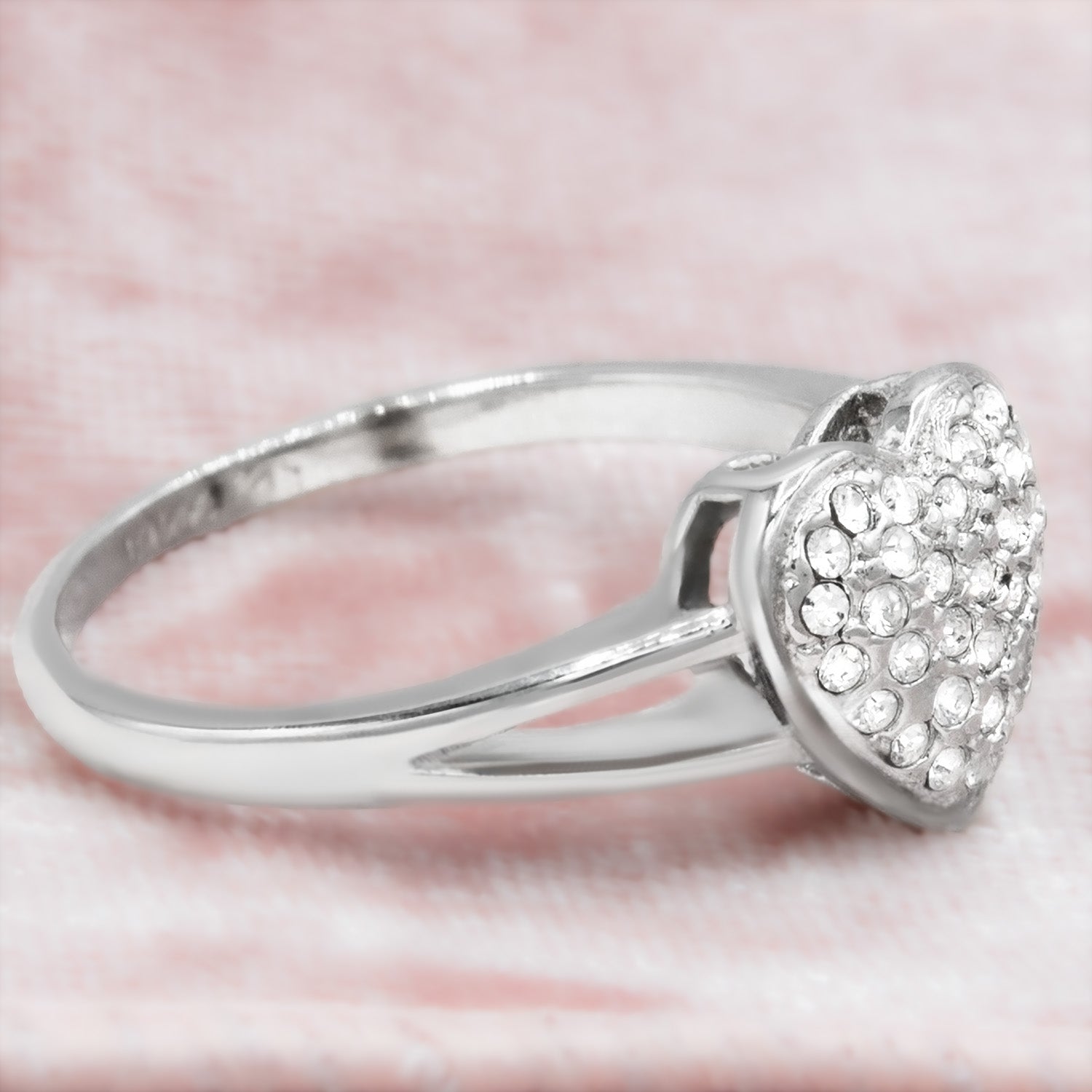 Vintage Ring Clear Swarovski Crystals Heart Ring 18k Gold Womans Antique Jewelry Rings R1765 Size: 6