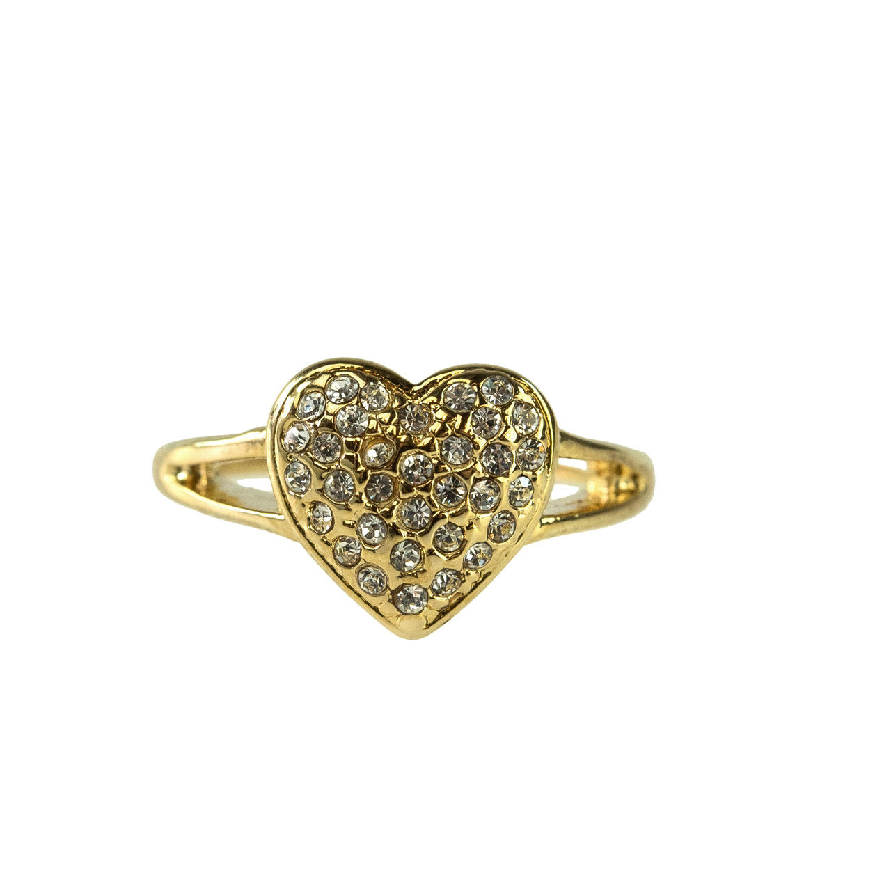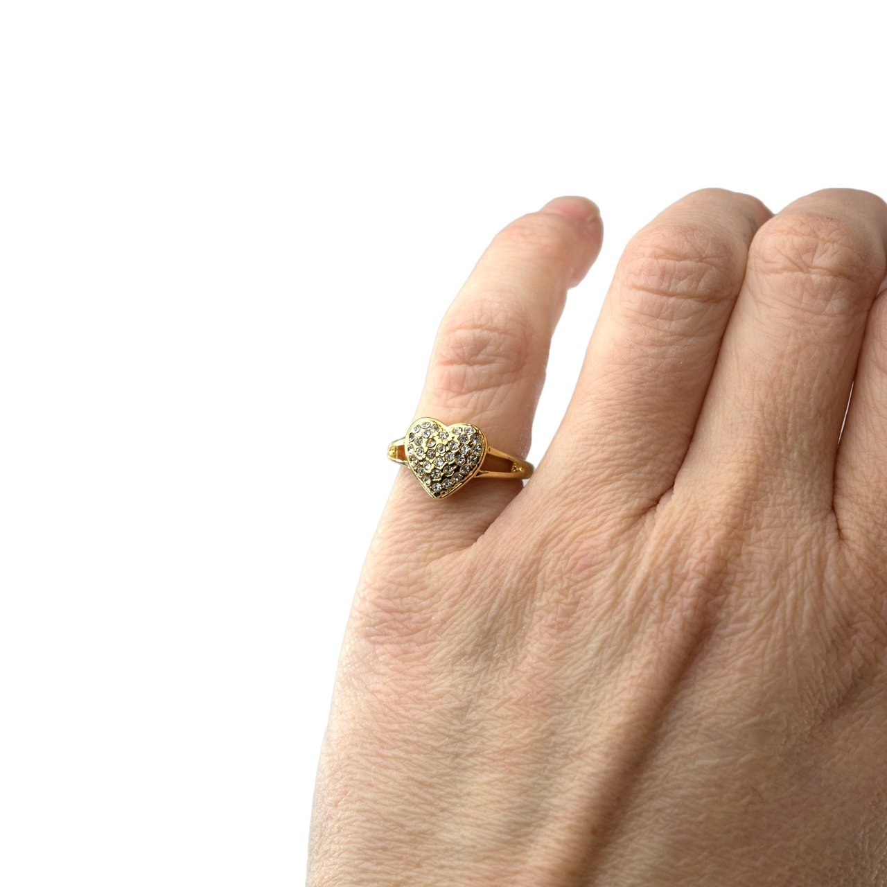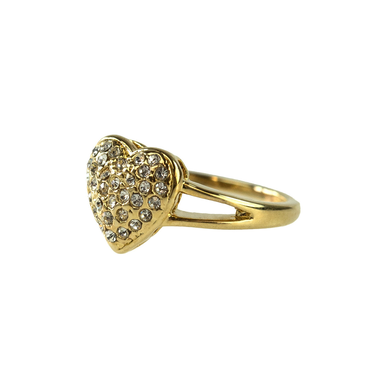 • Vintage Ring Clear Swarovski Crystals Heart Ring 18k Gold Womans Antique Jewelry Rings R1765 Size: 6