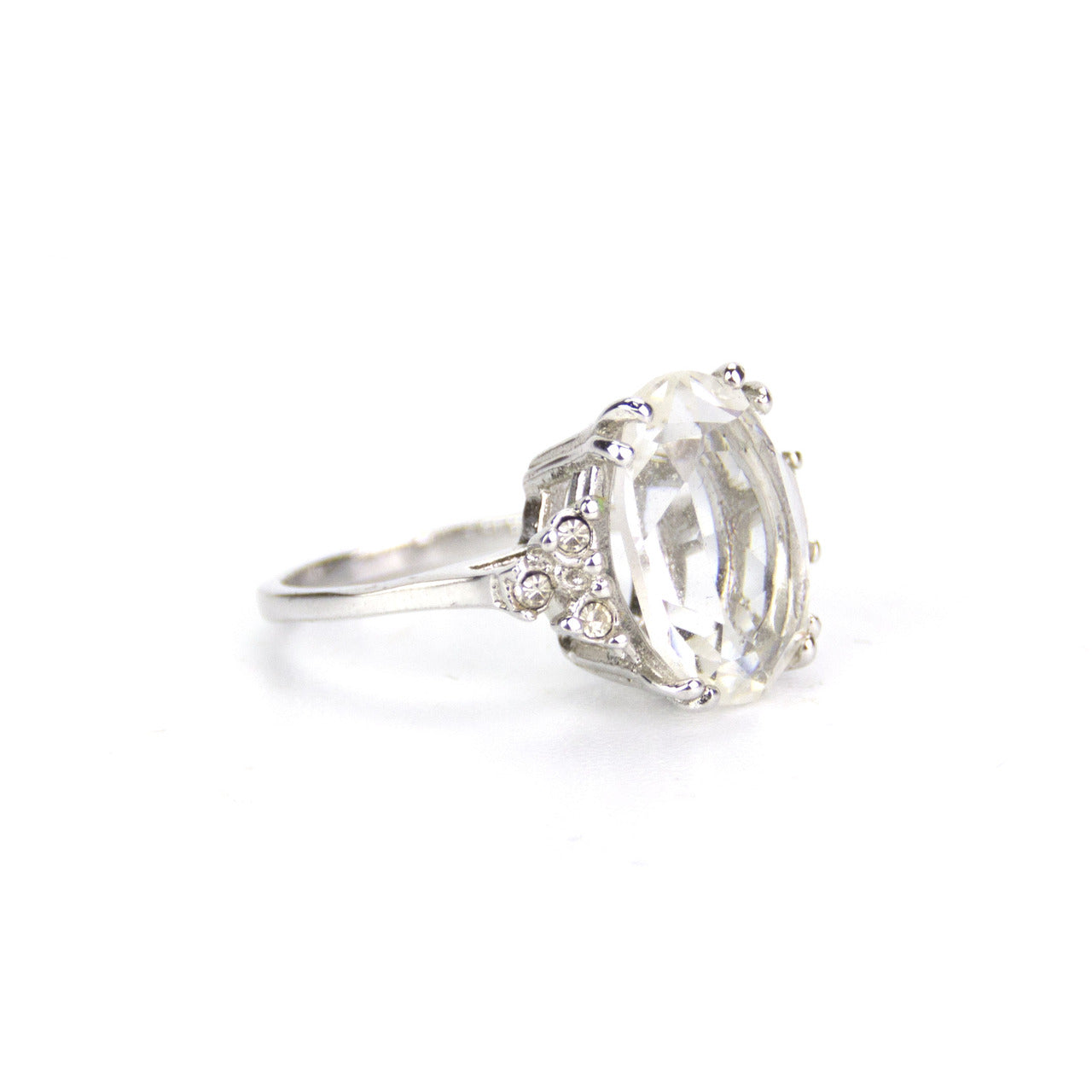 • Vintage Jewelry Clear Swarovskki Crystal Ring 18kt White Gold Electroplate April Birthstone