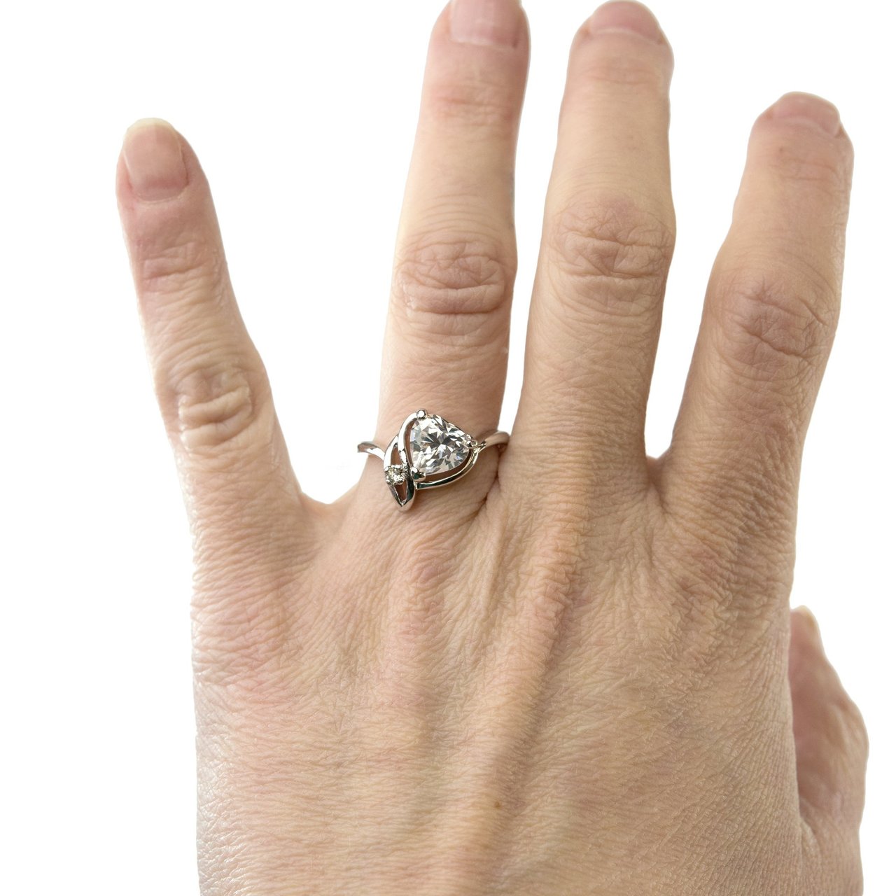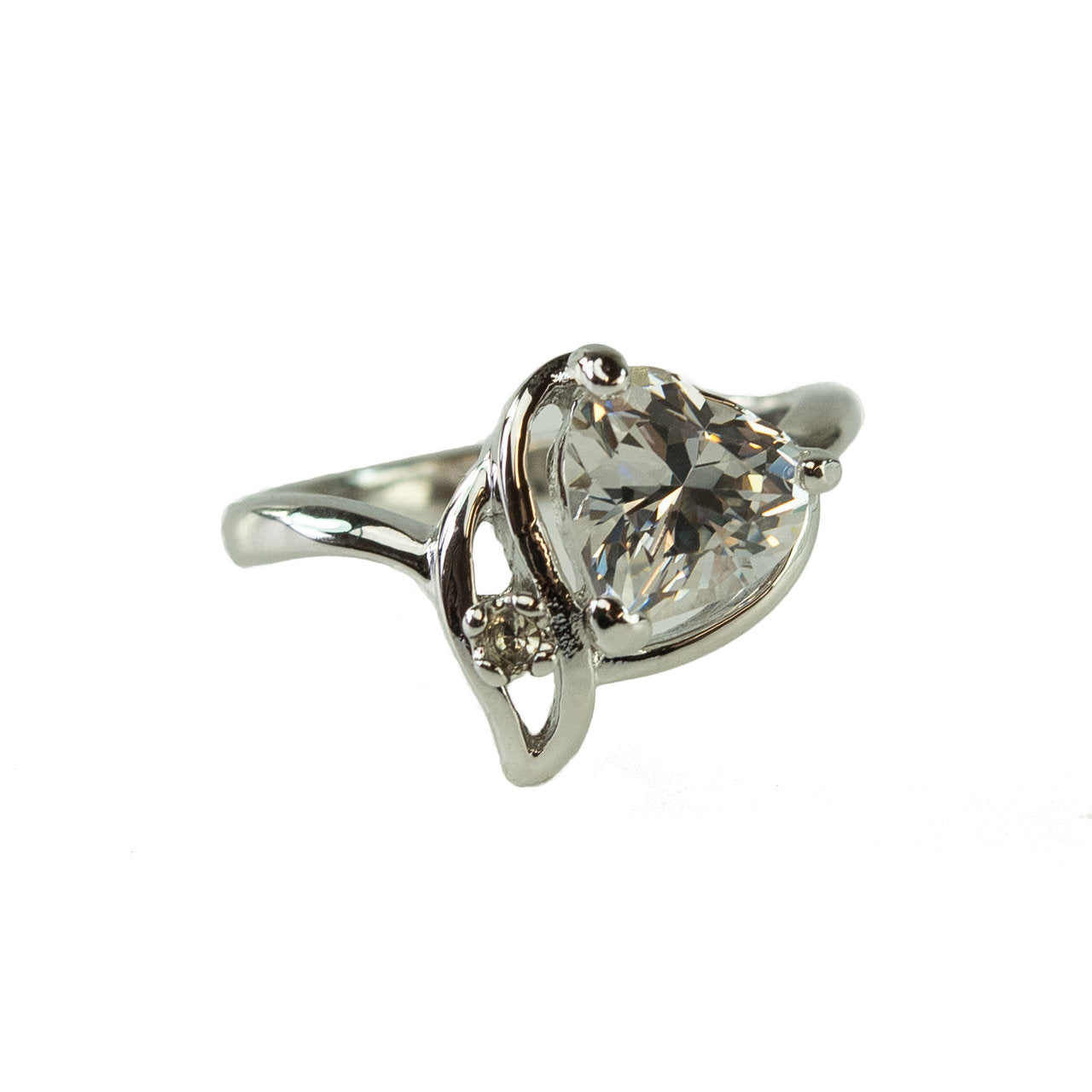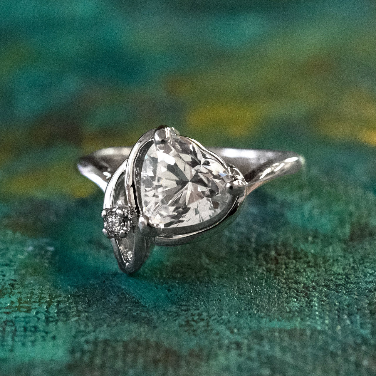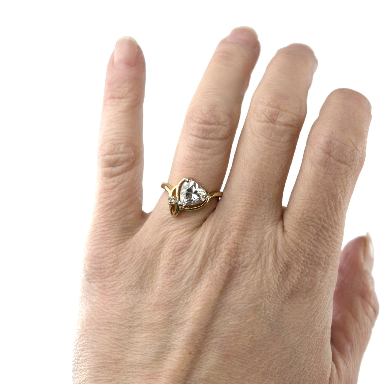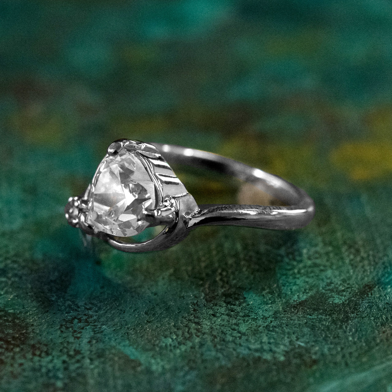 Emerald Austrian crystal heart hand set in an 18kt yellow gold elecroplated vintage setting. Made in USA.