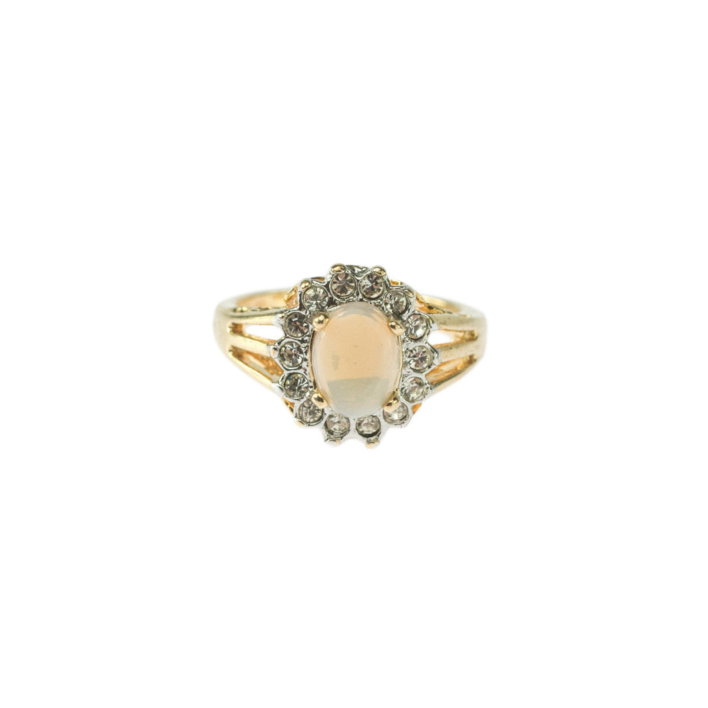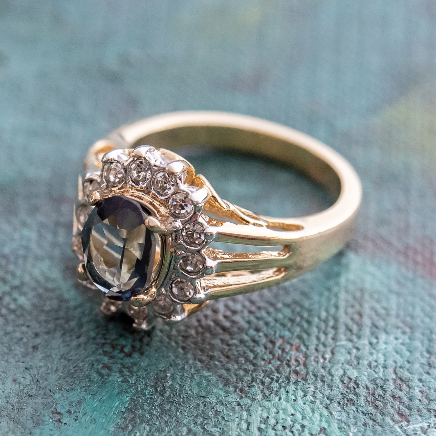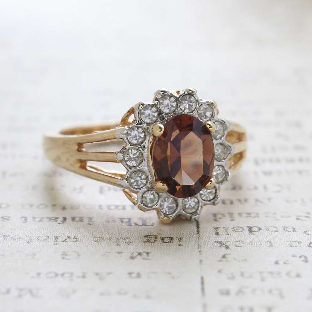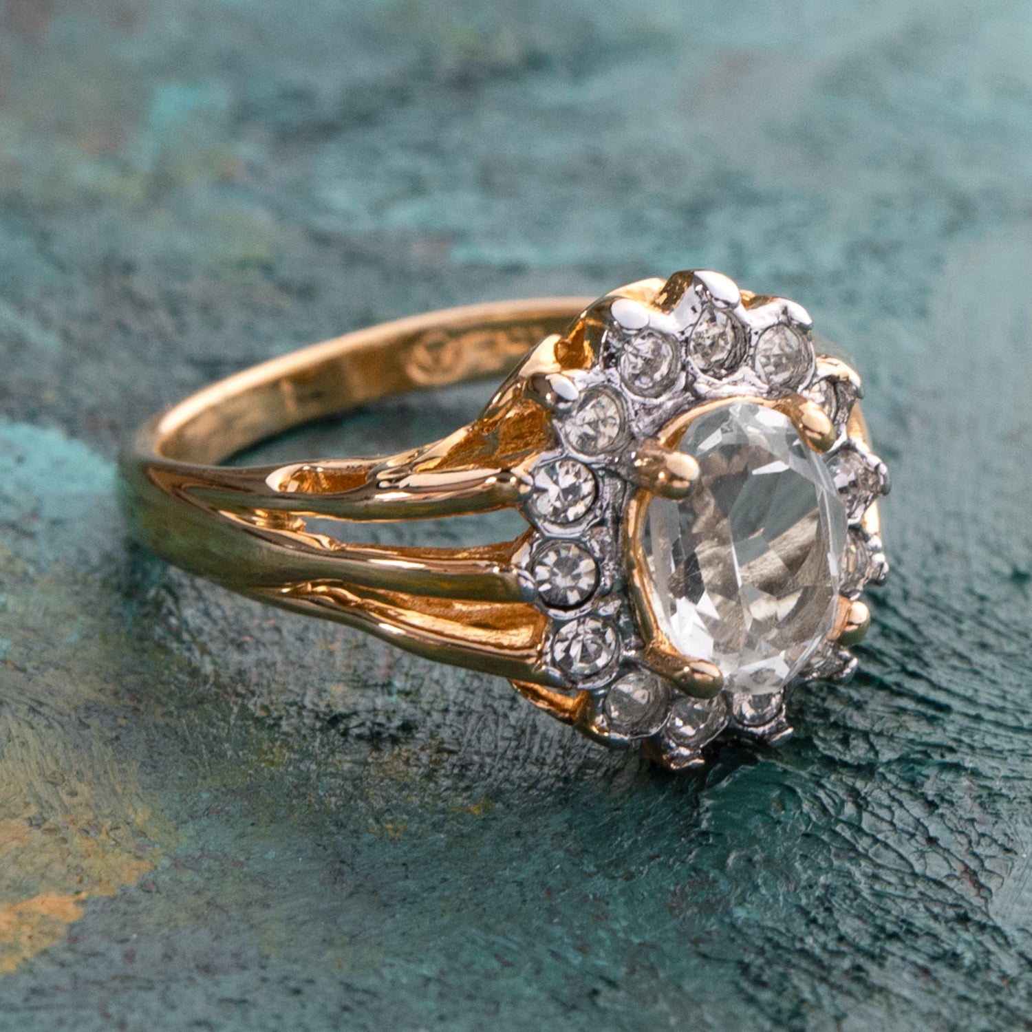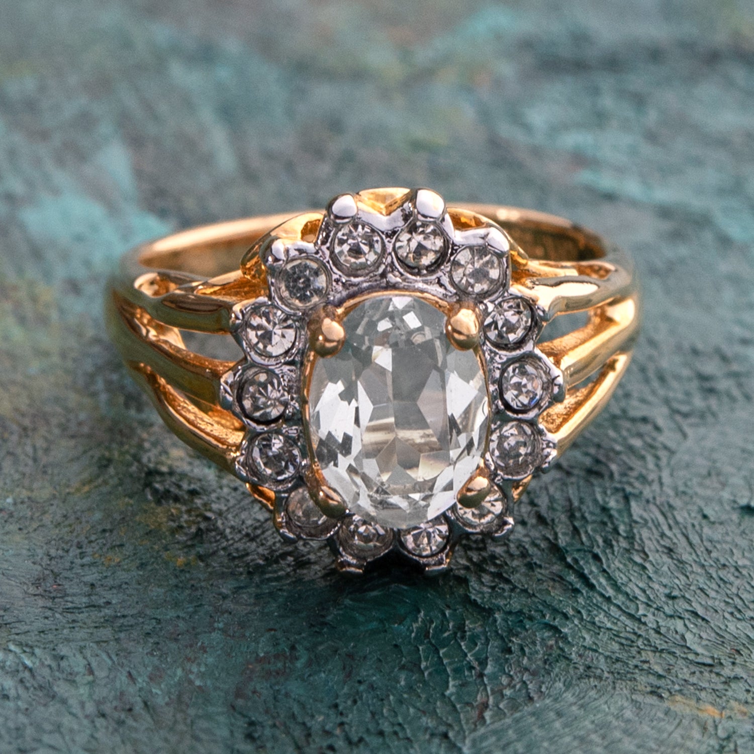 • Vintage Jewelry Genuine Stone or Crystal Surrounded by Clear Austrian Crystals Ring Made in the USA