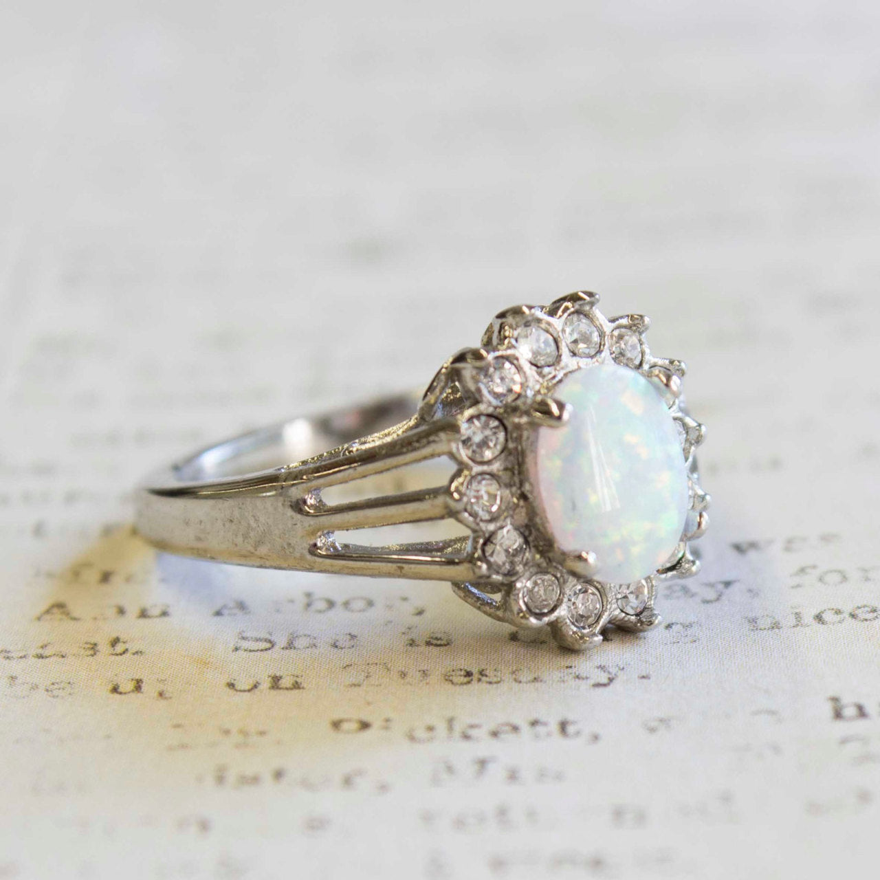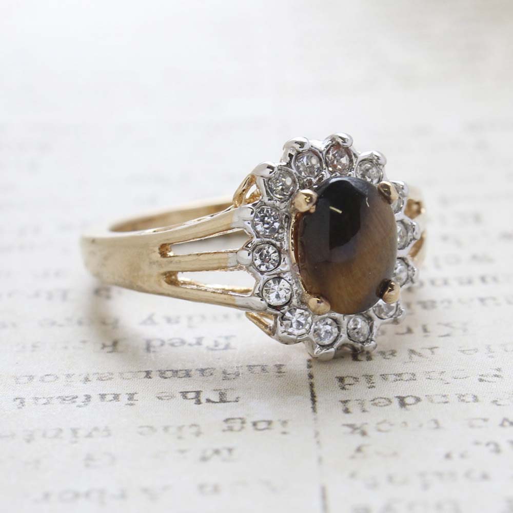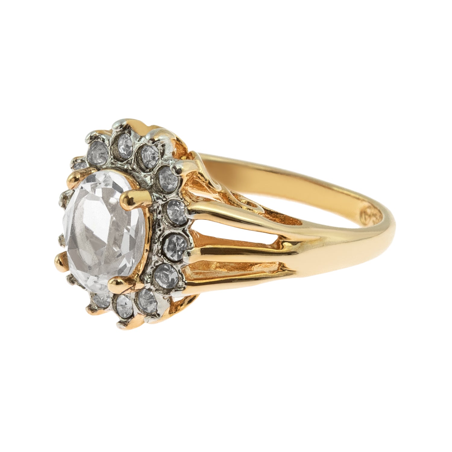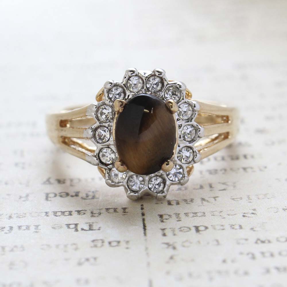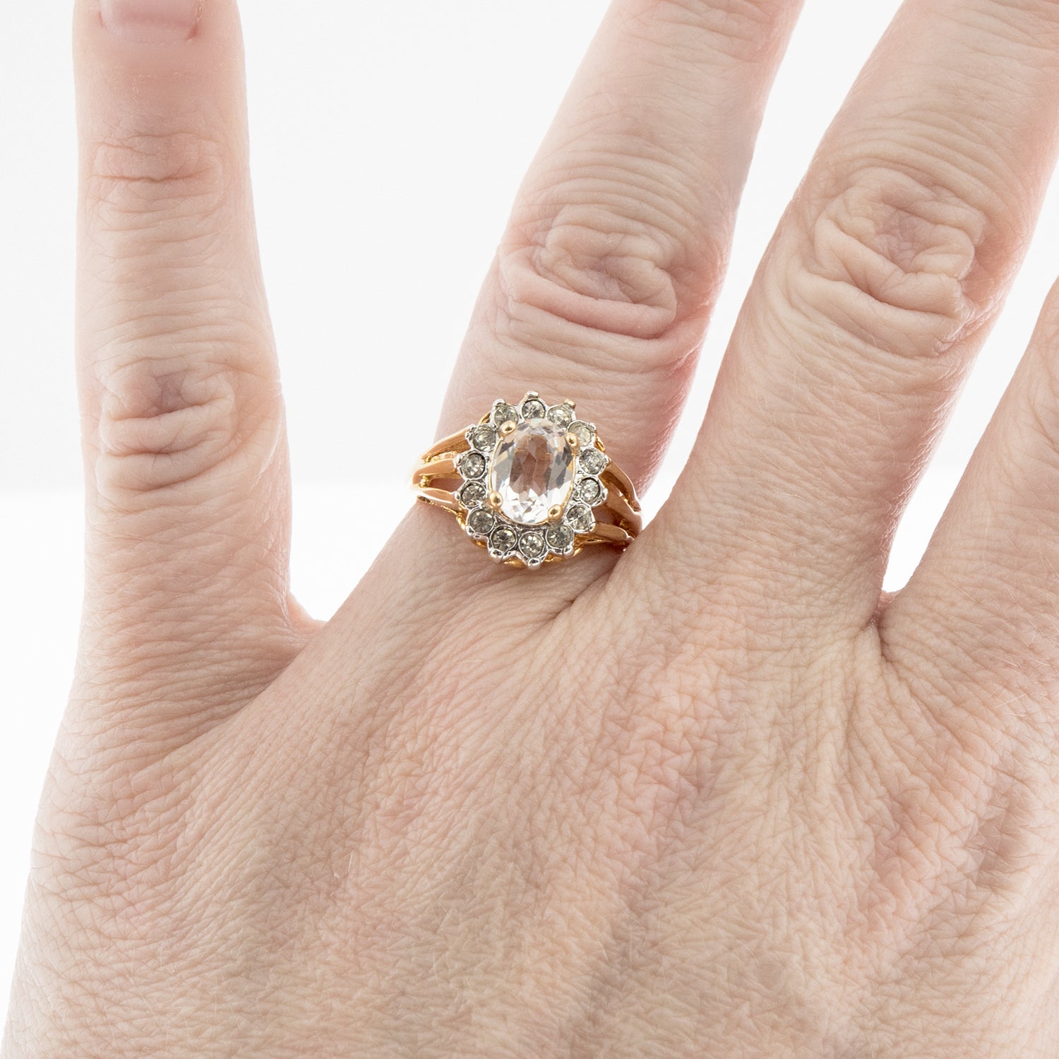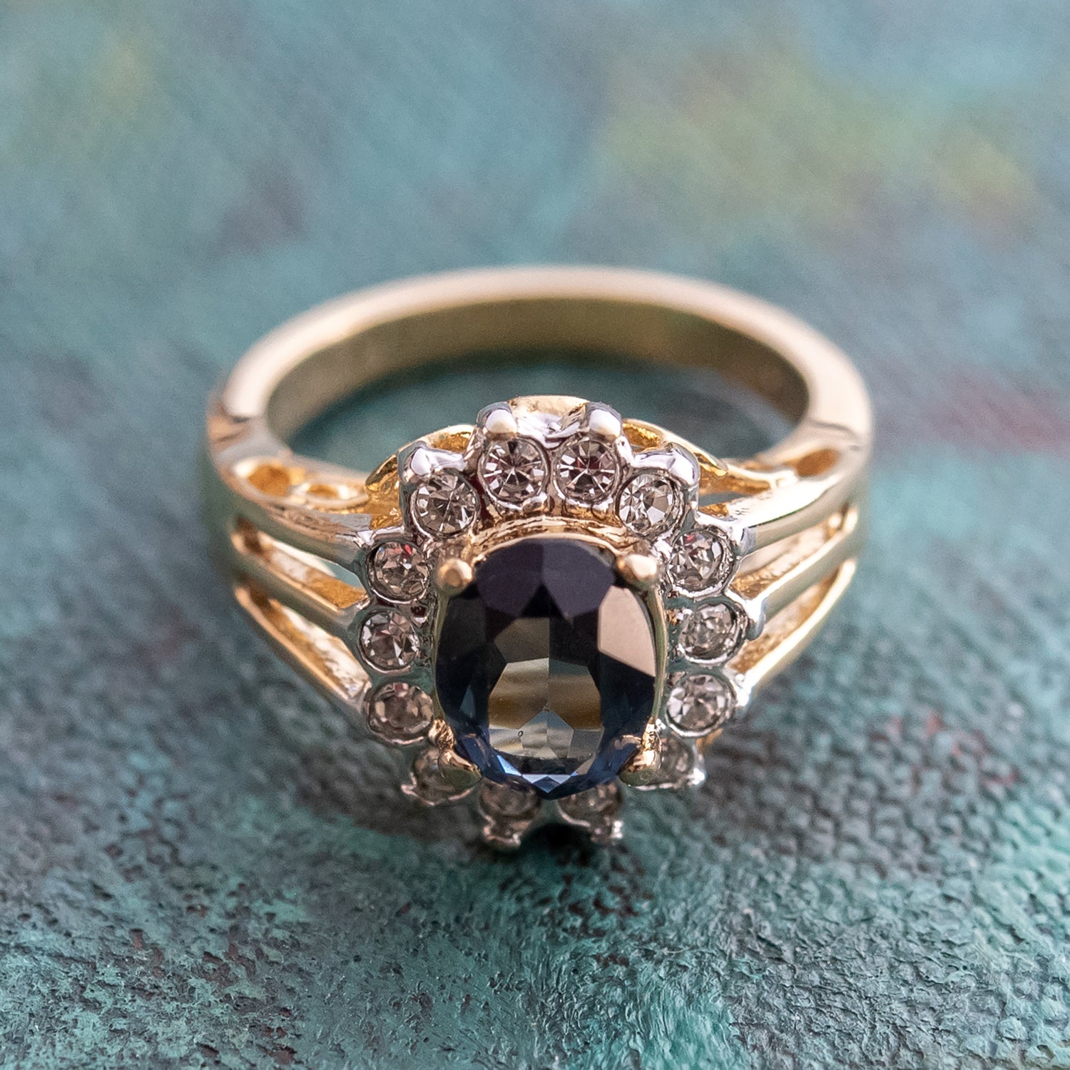 • Vintage Jewelry Genuine Stone or Crystal Surrounded by Clear Austrian Crystals Ring Made in the USA