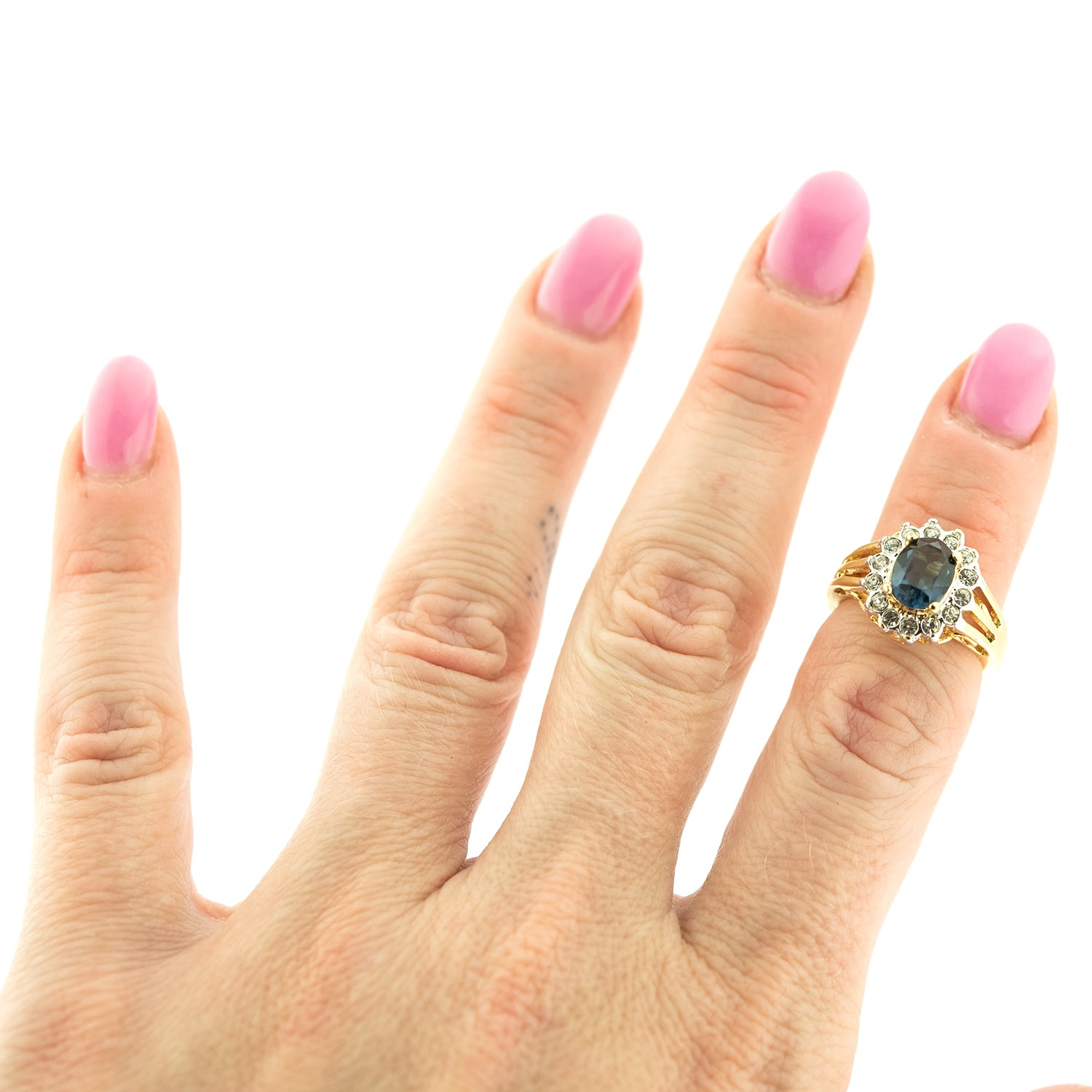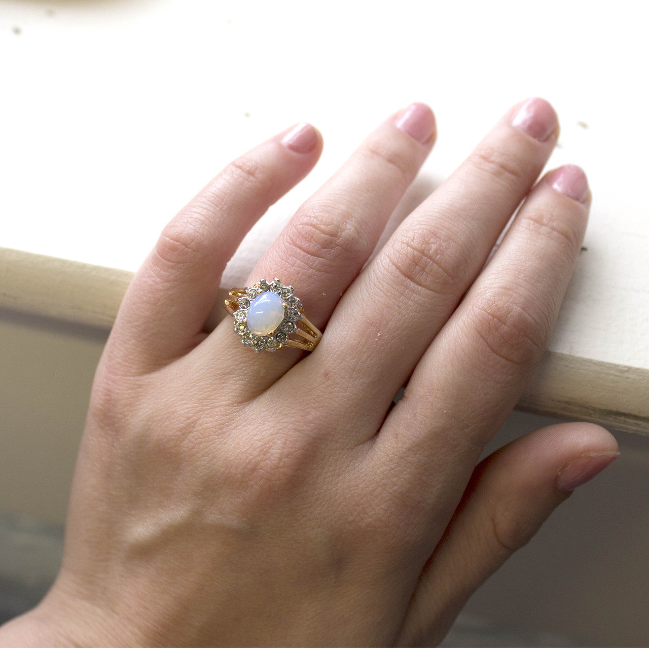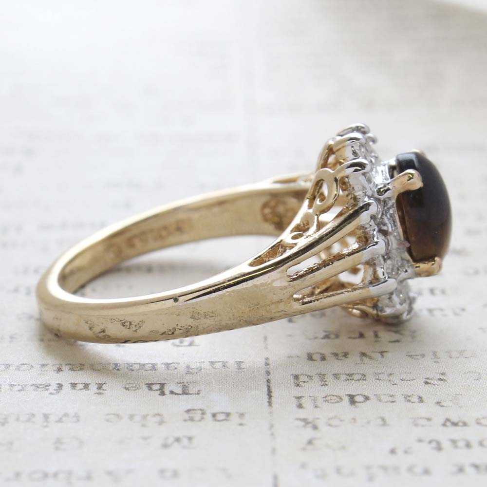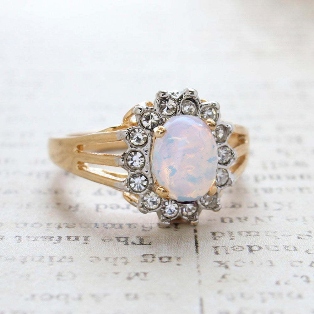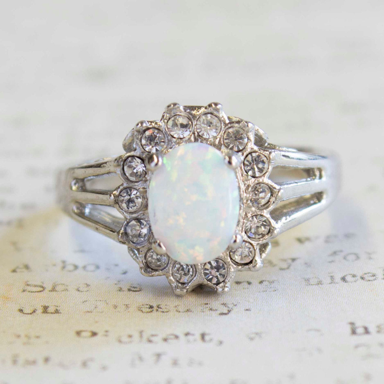 • Vintage Jewelry Genuine Stone or Crystal Surrounded by Clear Austrian Crystals Ring Made in the USA