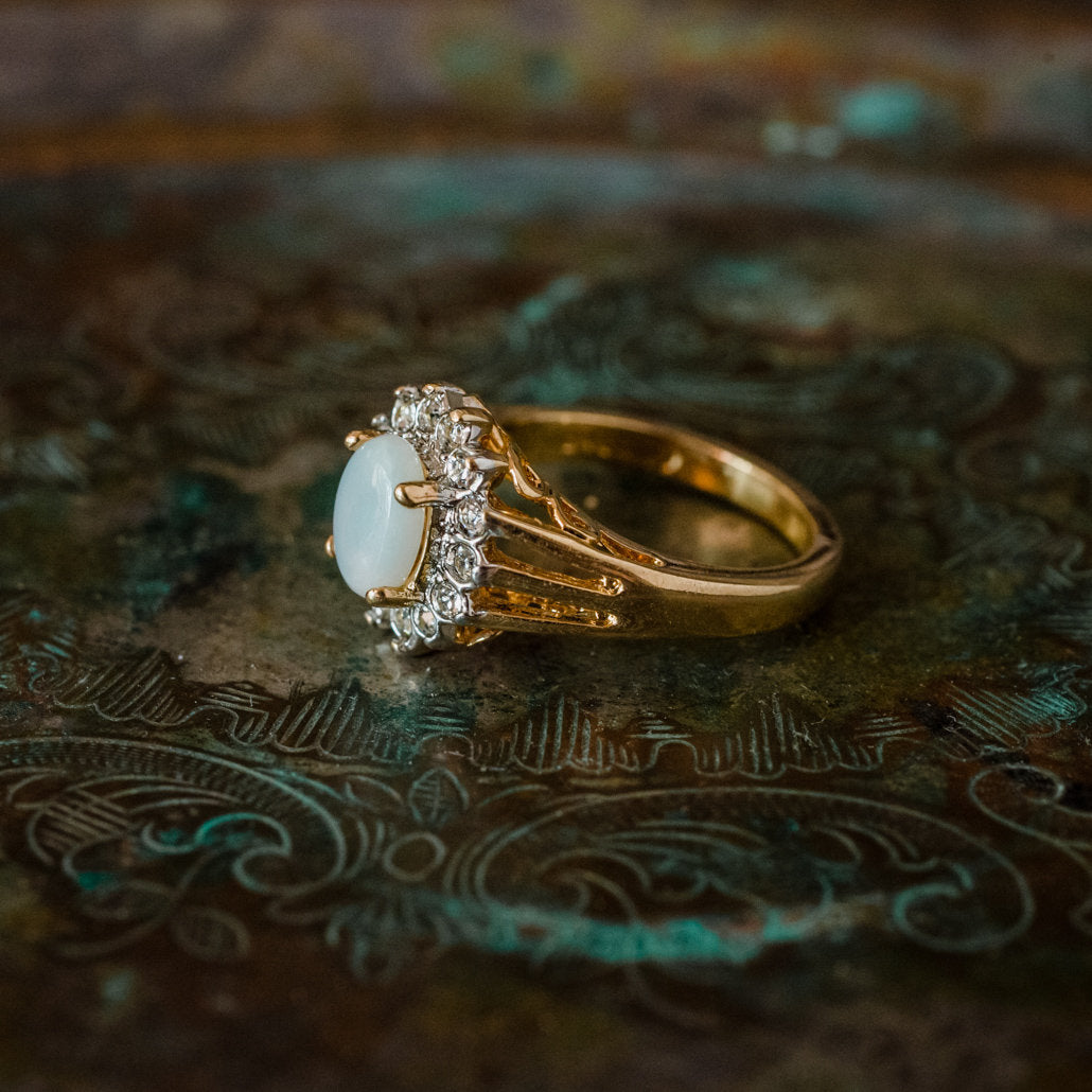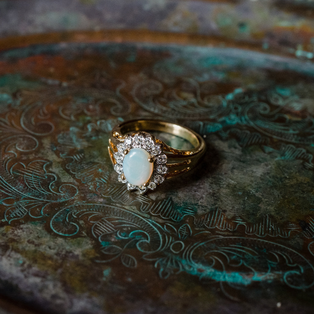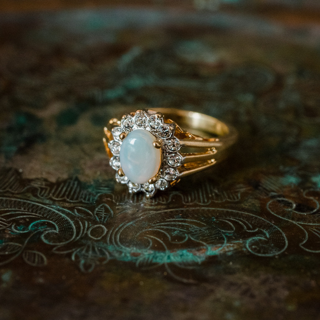 Vintage Jewelry Genuine Stone or Crystal Surrounded by Clear Austrian Crystals Ring Made in the USA