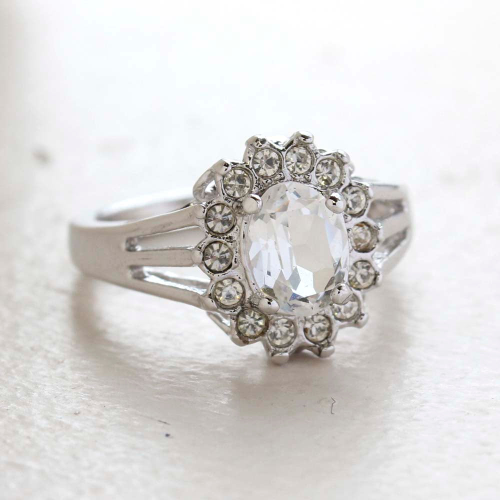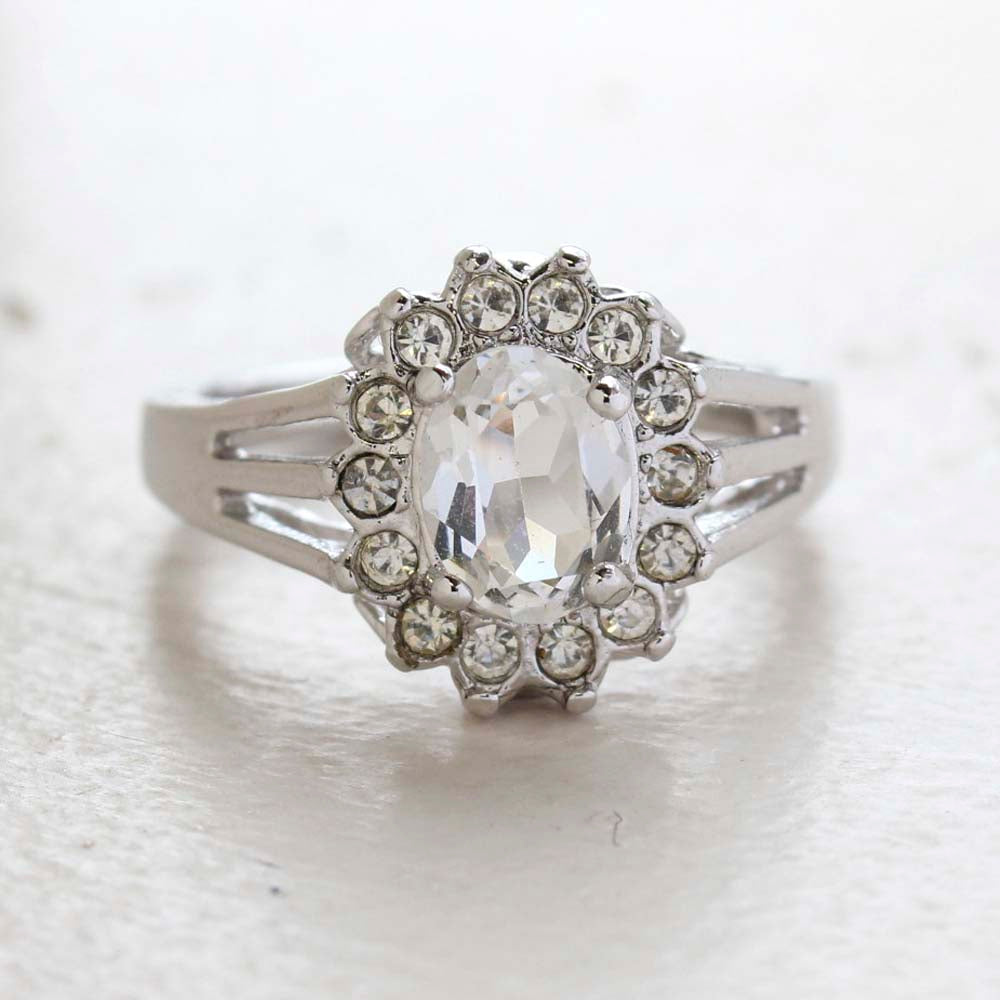 *Center stone measures 7mm by 5mm, surrounded by clear Austrian Crystals.