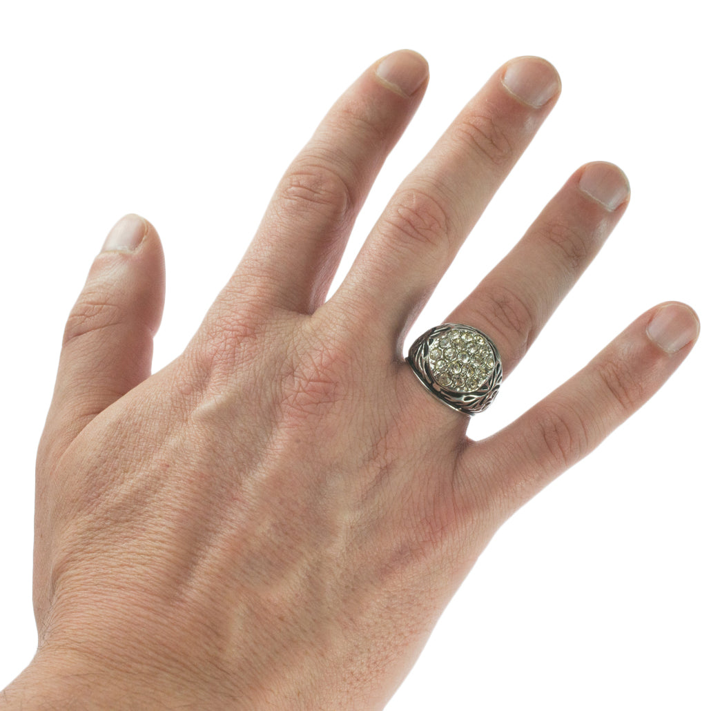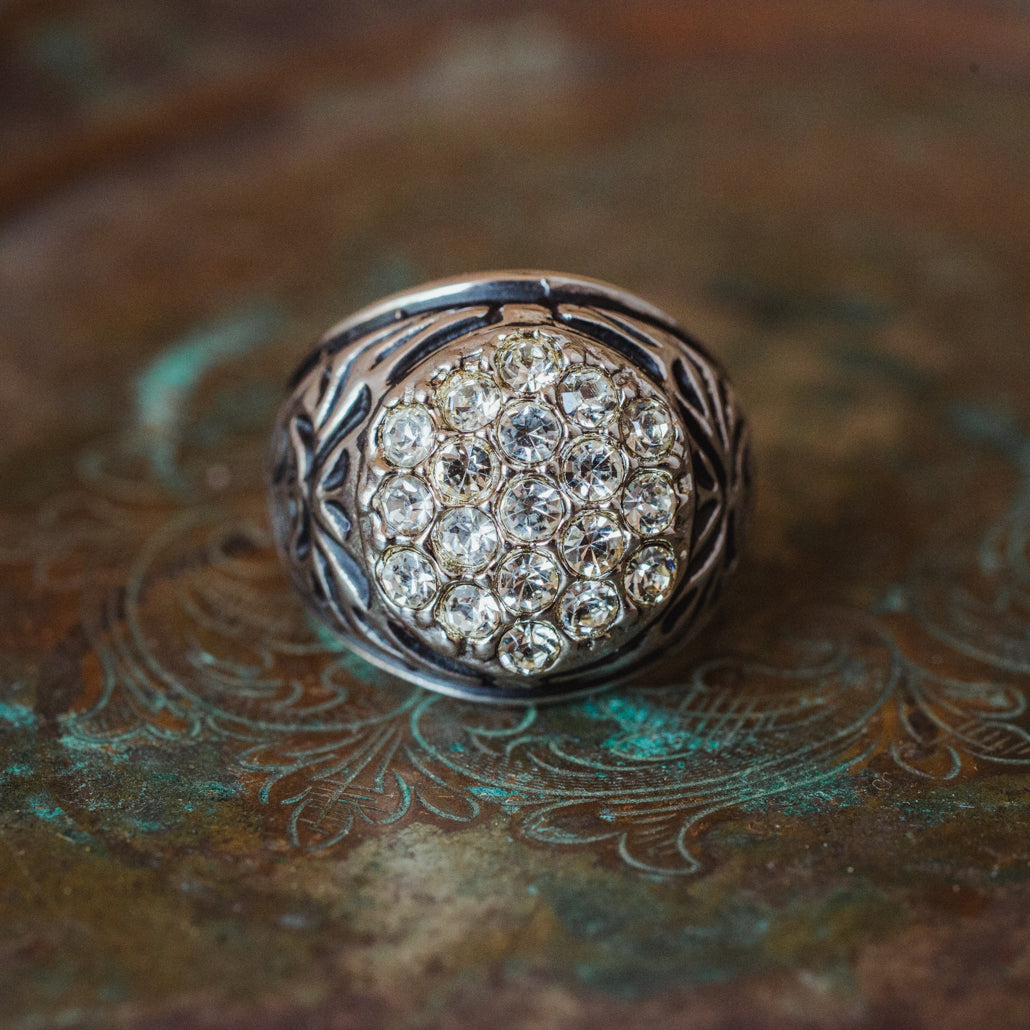 Vintage Men's Ring Clear Austrian Crystals 18k White or Yellow Gold Electroplated Made in USA