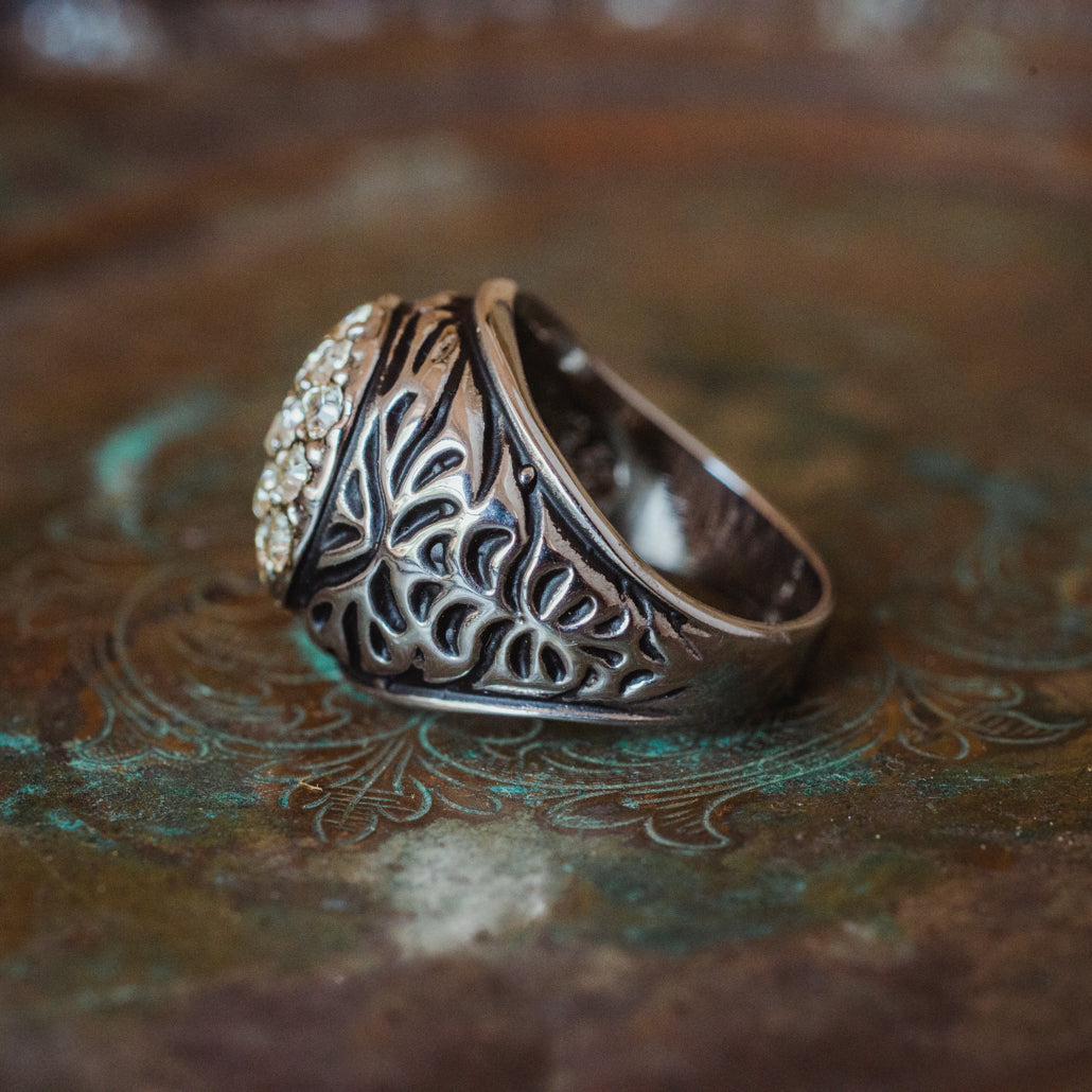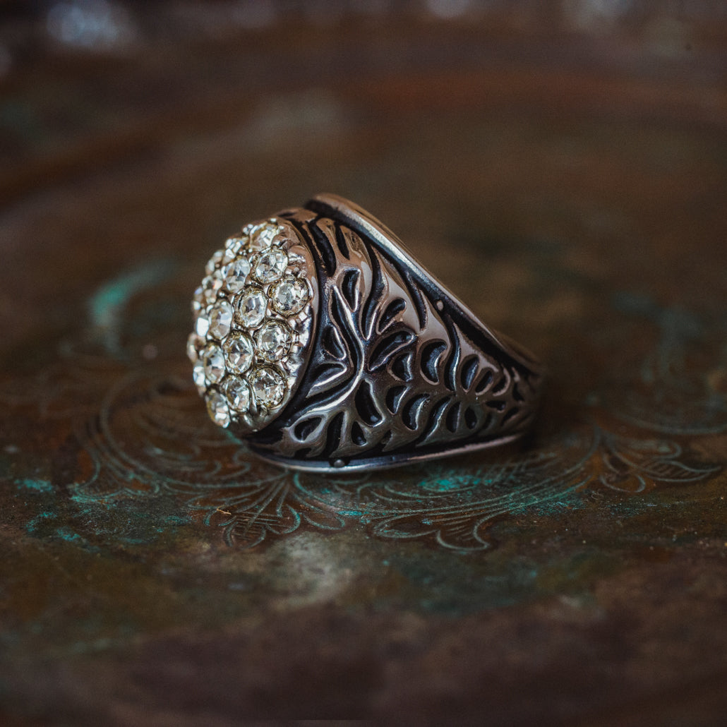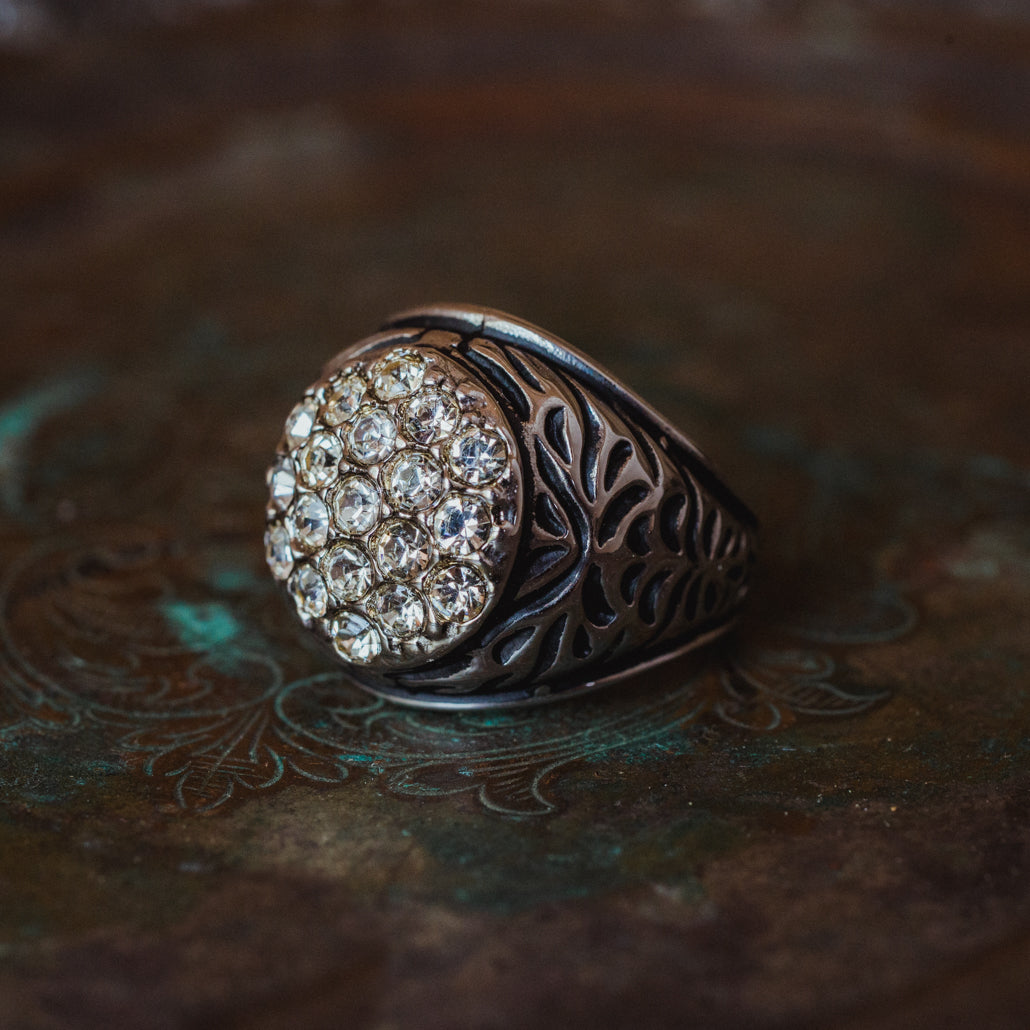 • Vintage Men's Ring Clear Austrian Crystals 18k White or Yellow Gold Electroplated Made in USA