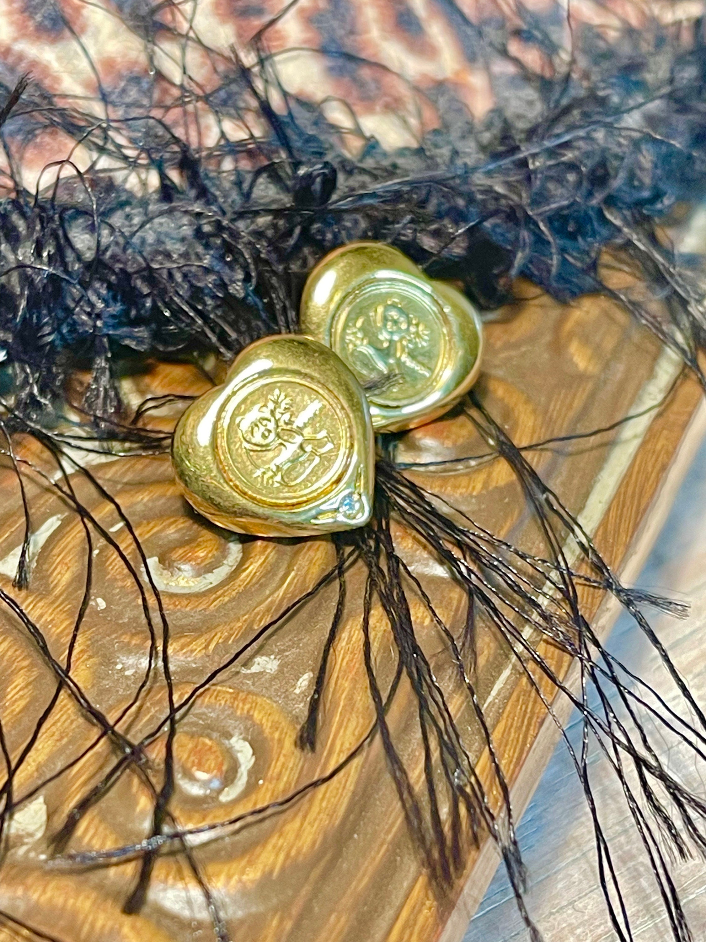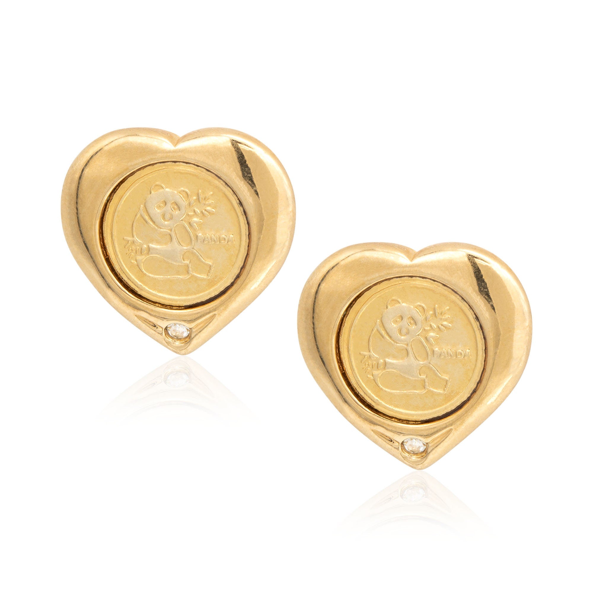Vintage Panda Bear Heart Earrings with Diamond Chip 18k Gold Electroplated Handcrafted Made in USA