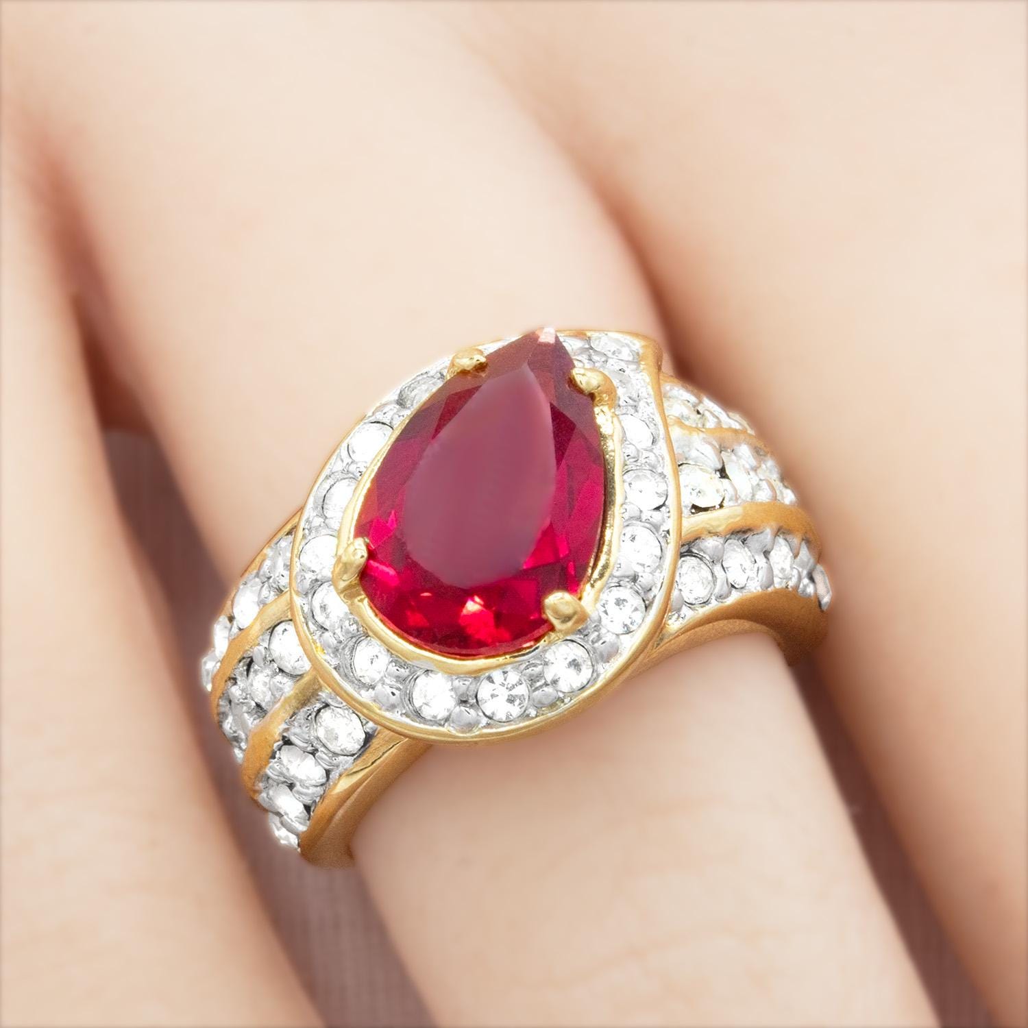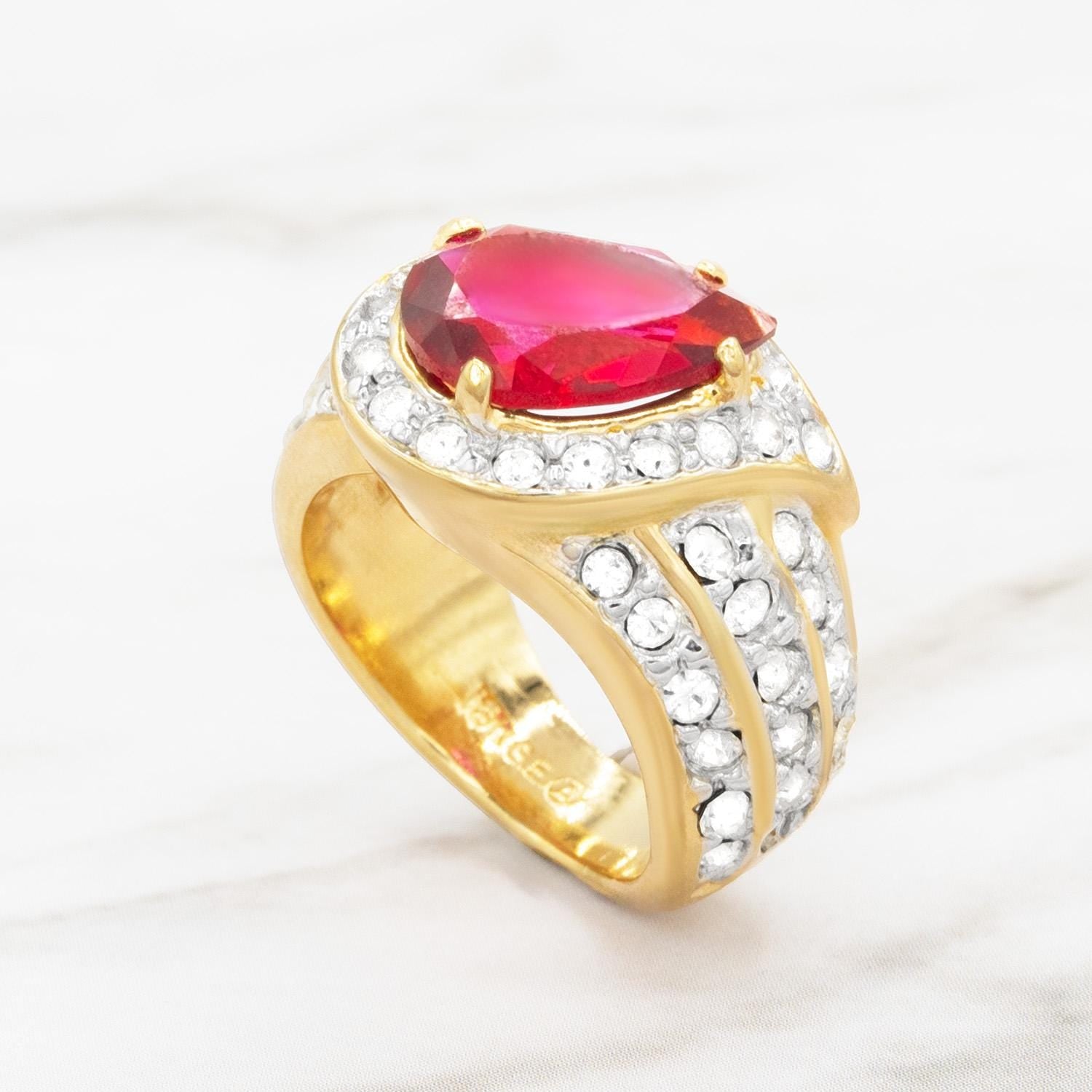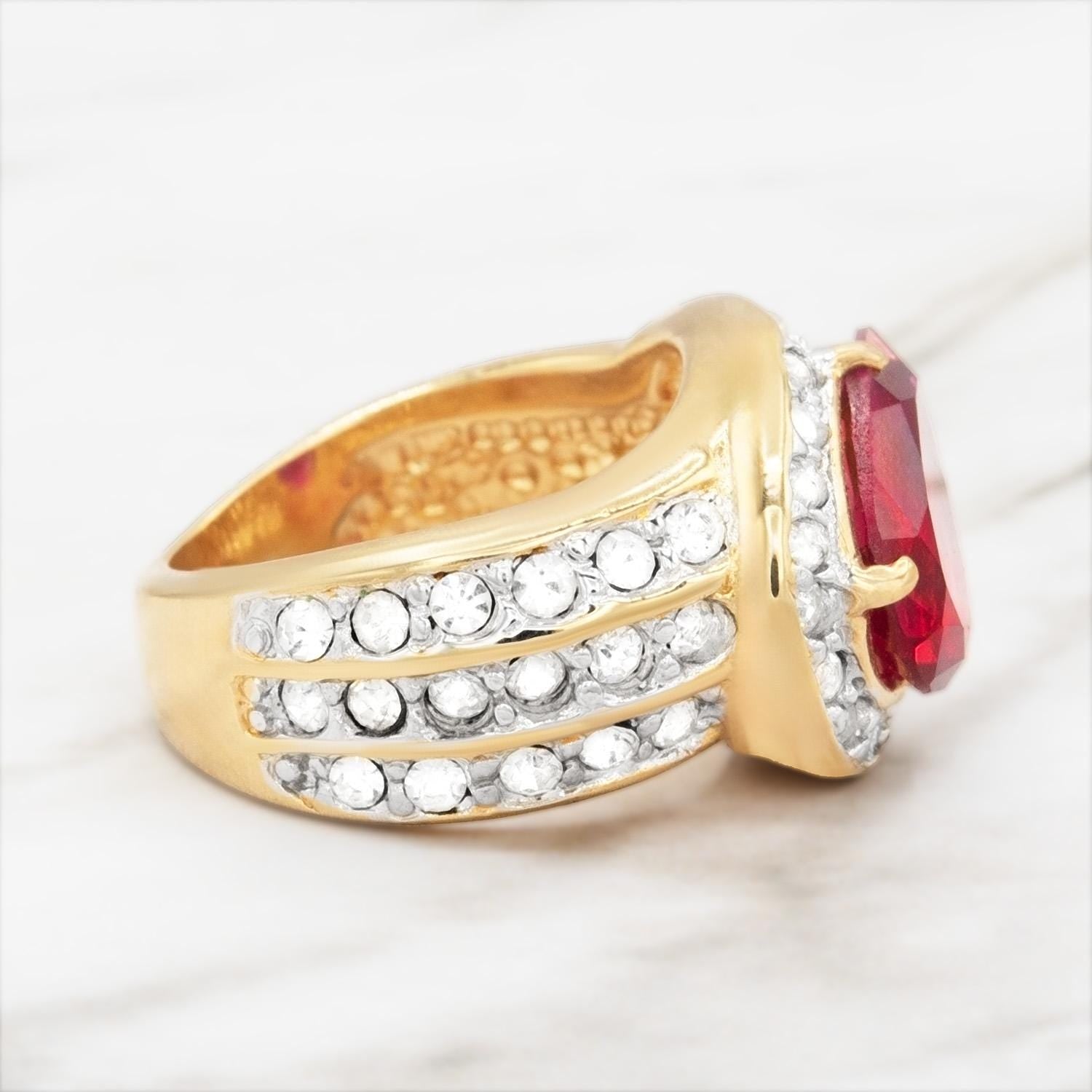 • Vintage Ring 1980s Ring Ruby and Clear Austrian Crystals 18k Gold Electroplated Womens Statement Ring