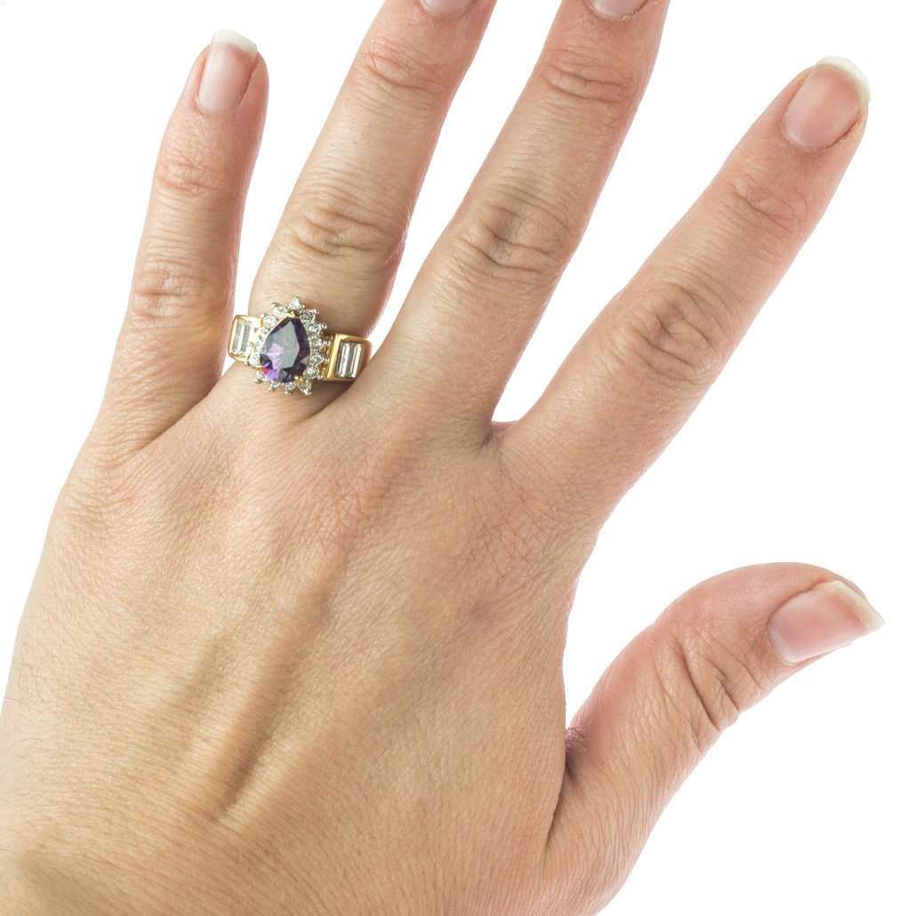 Vintage Ring Amethyst Cubic Zirconia and Clear Swarovski Crystals 18kt Gold #R3149 Size: 7