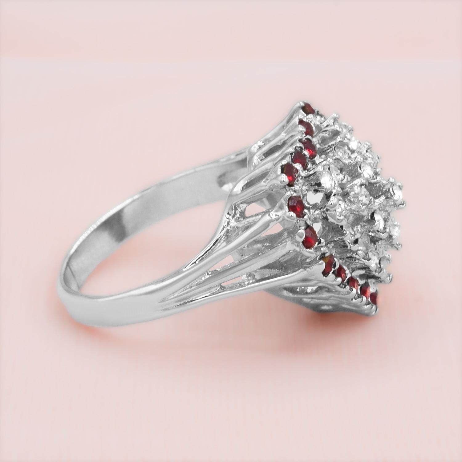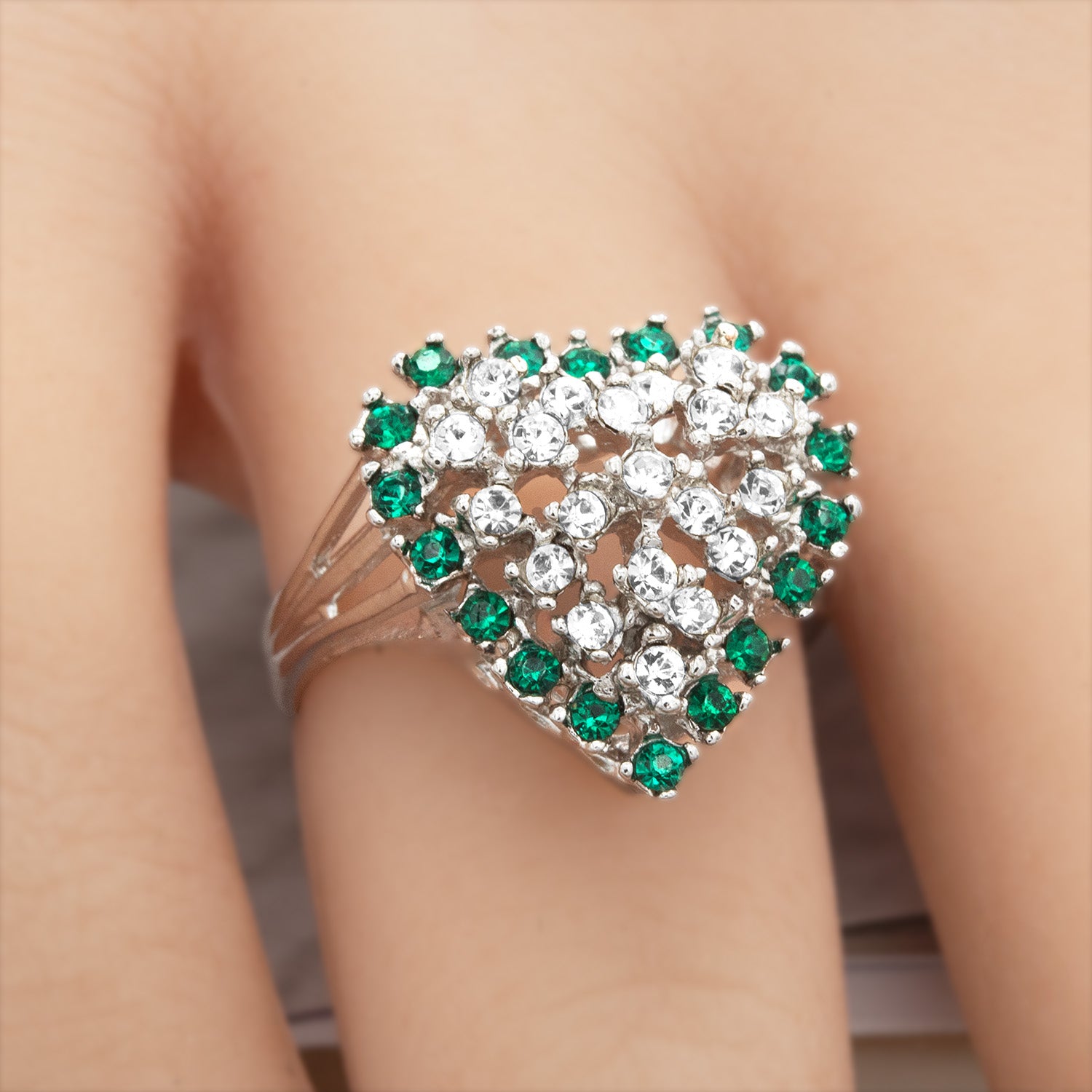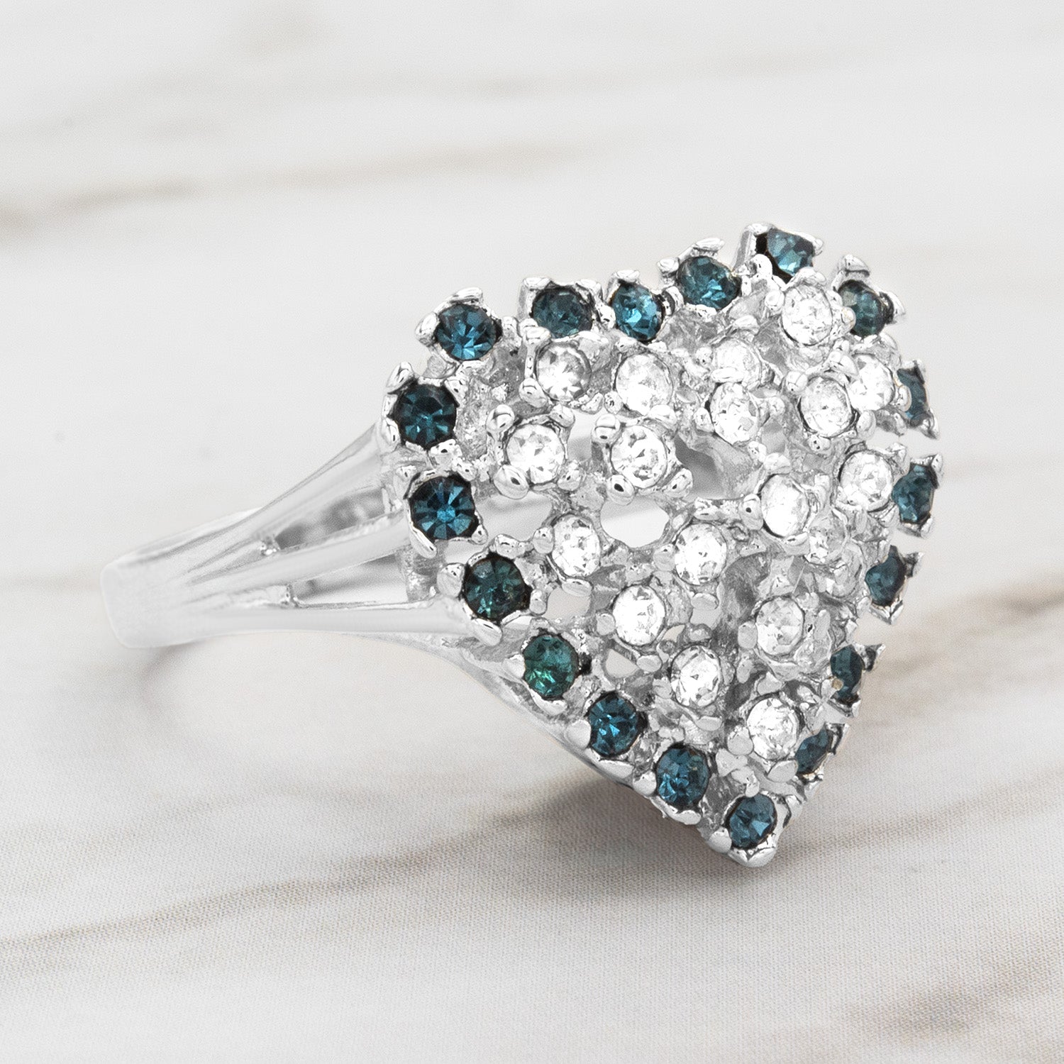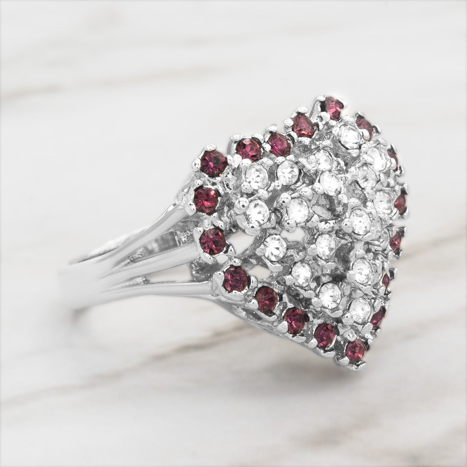 This exquisite vintage ring features a sparkling heart design crafted from clear Austrian crystals surrounded by vibrant color crystals. Electroplated with 18k yellow or white gold, this timeless piece exudes elegance and charm. Perfect for Valentine's Day or as a cherished addition to any antique jewelry collection, this ring beautifully combines vintage allure with romantic style.