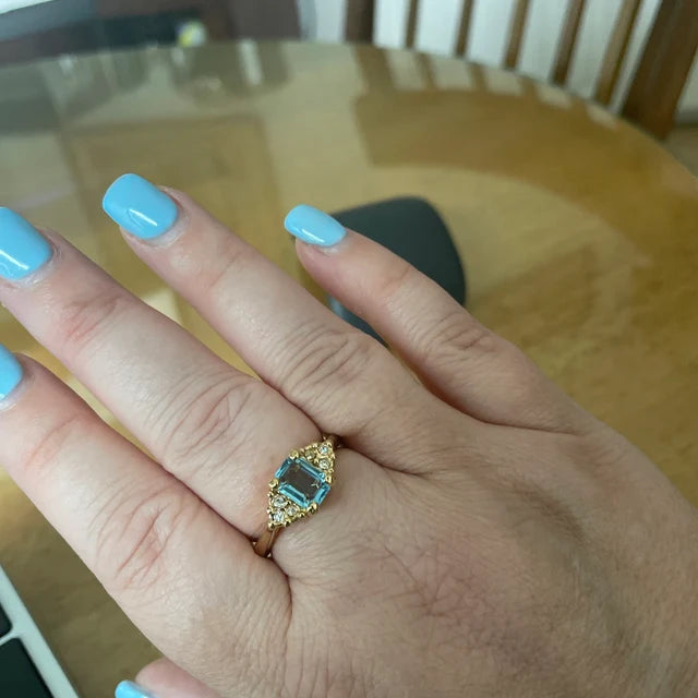 • Vintage Ring Clear Austrian Crystals 18k Yellow Gold Electroplated Womens Birthstone Made in USA