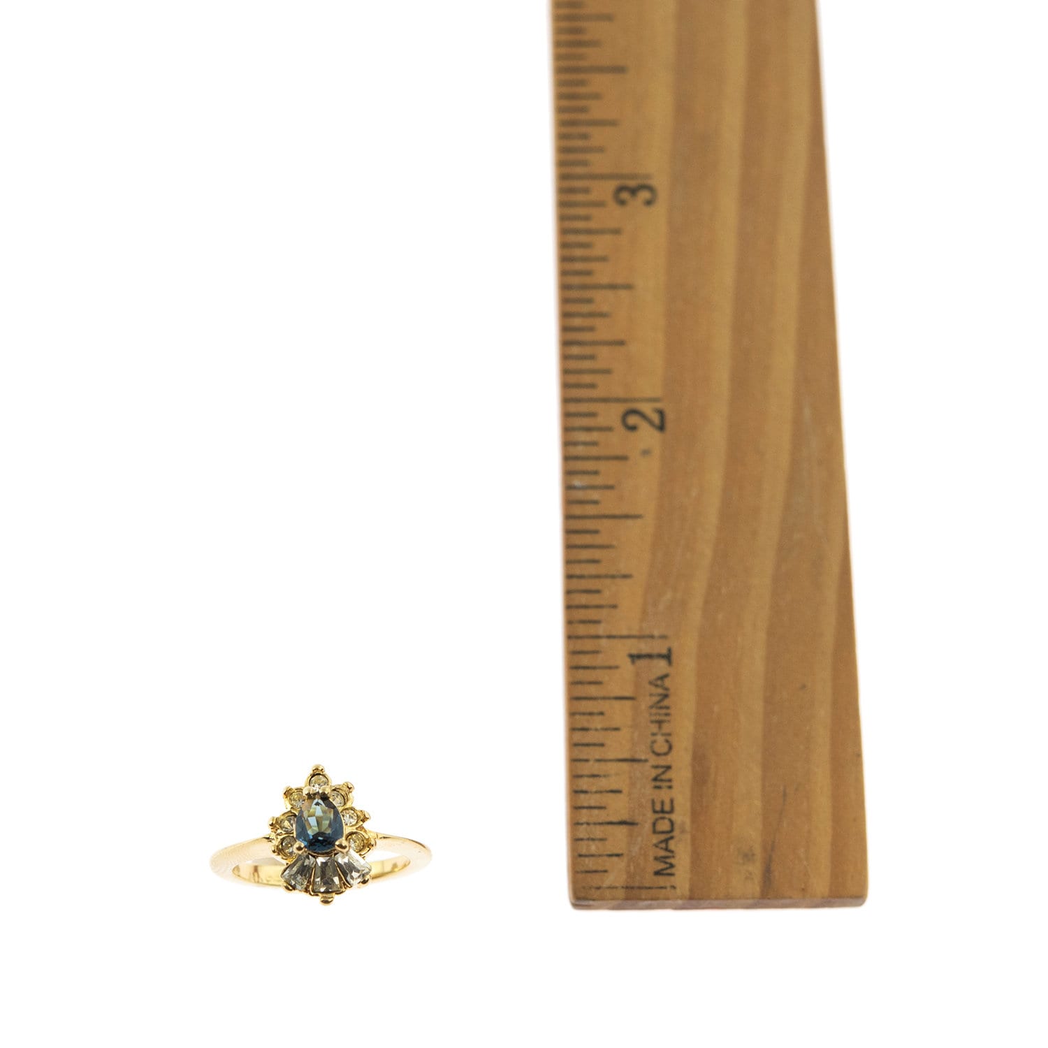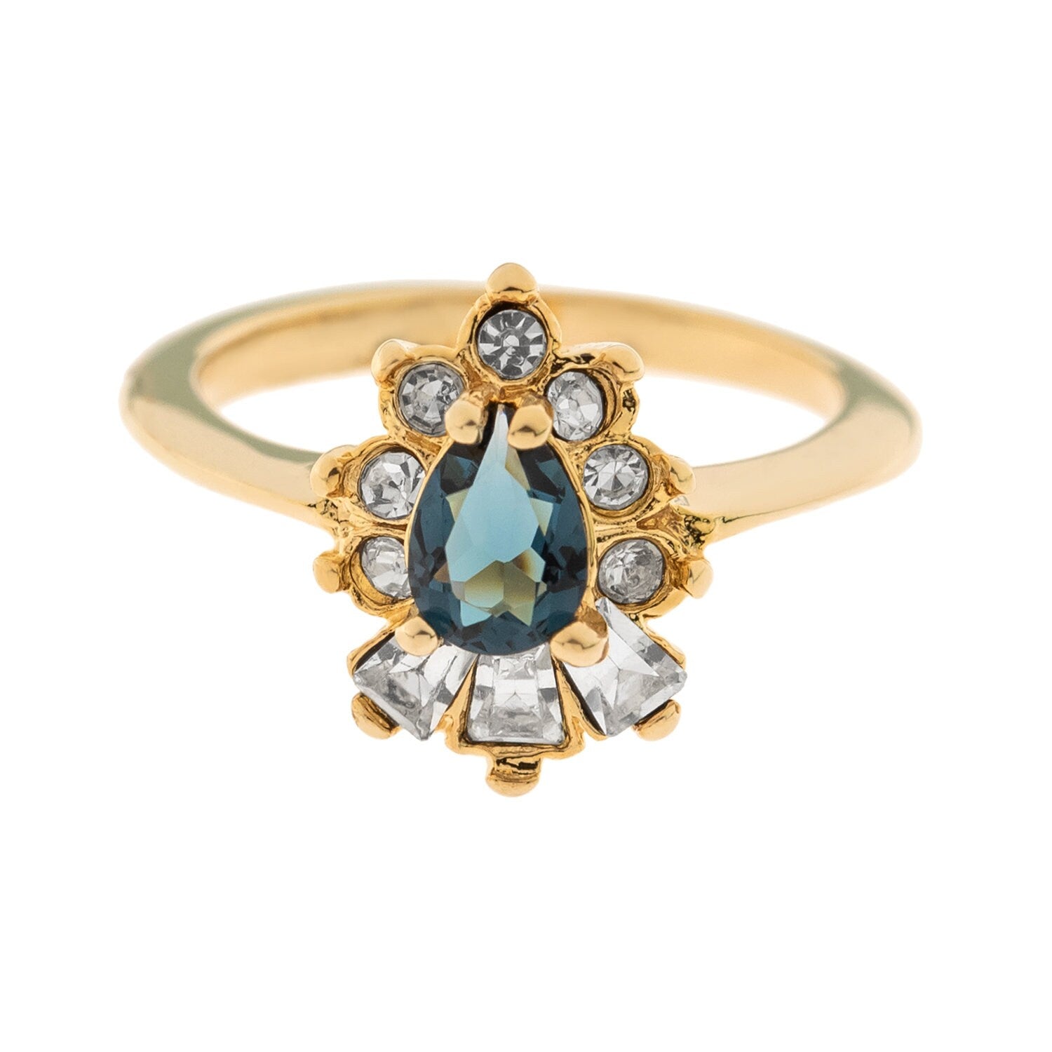 • Vintage Ring 1990's Sapphire and Clear Swarovski Crystals 18k Gold Plated Ring R3093 Antique Womans Jewelry