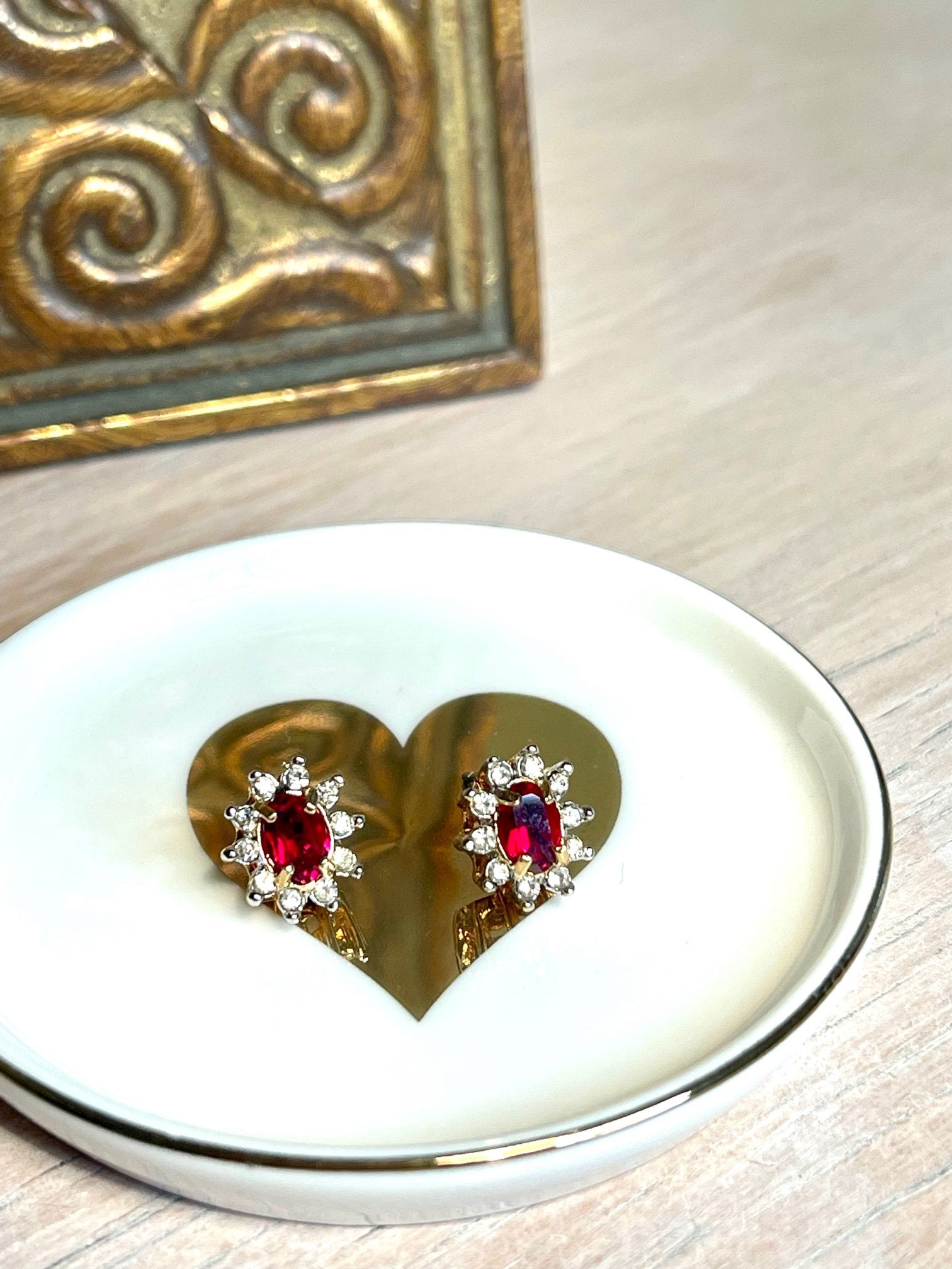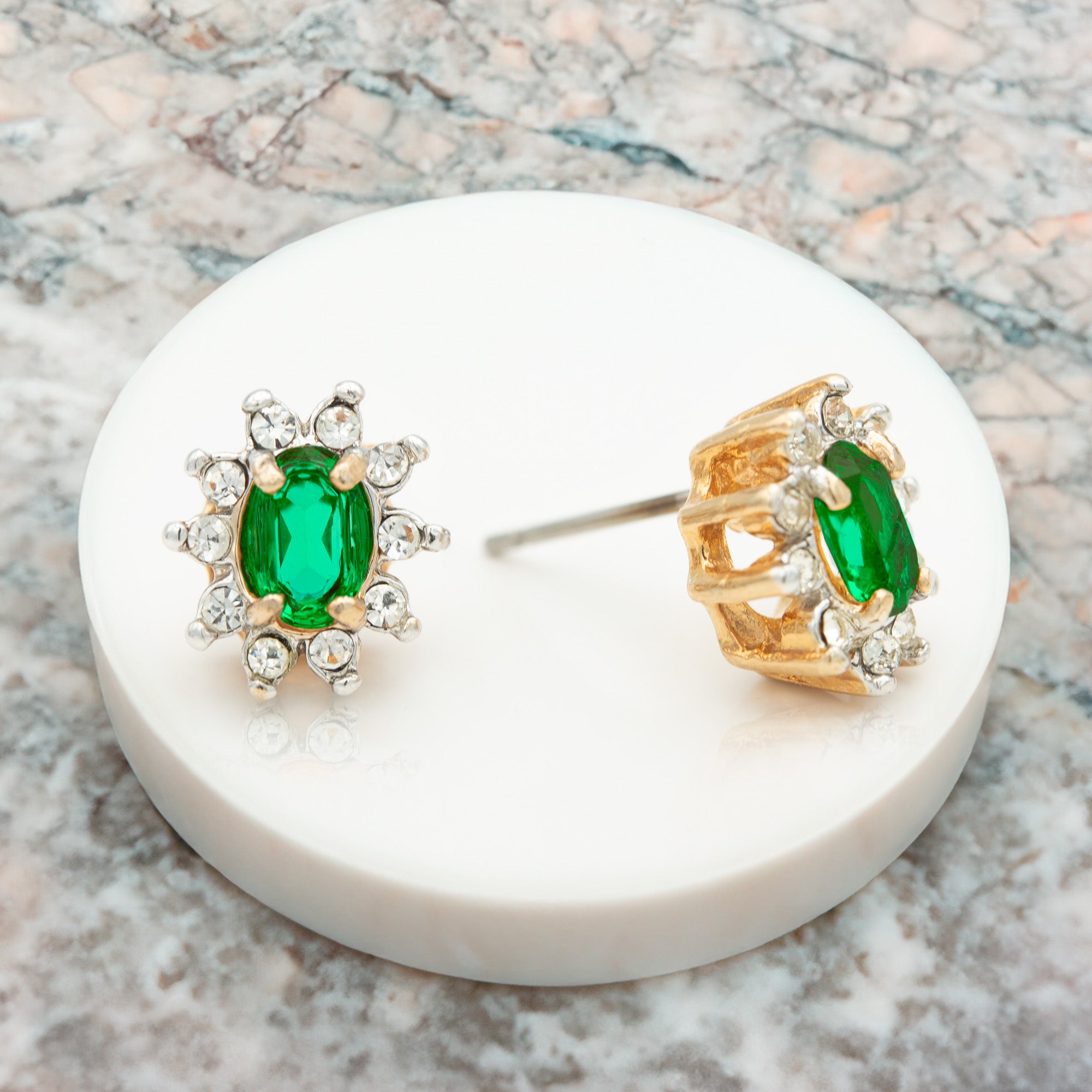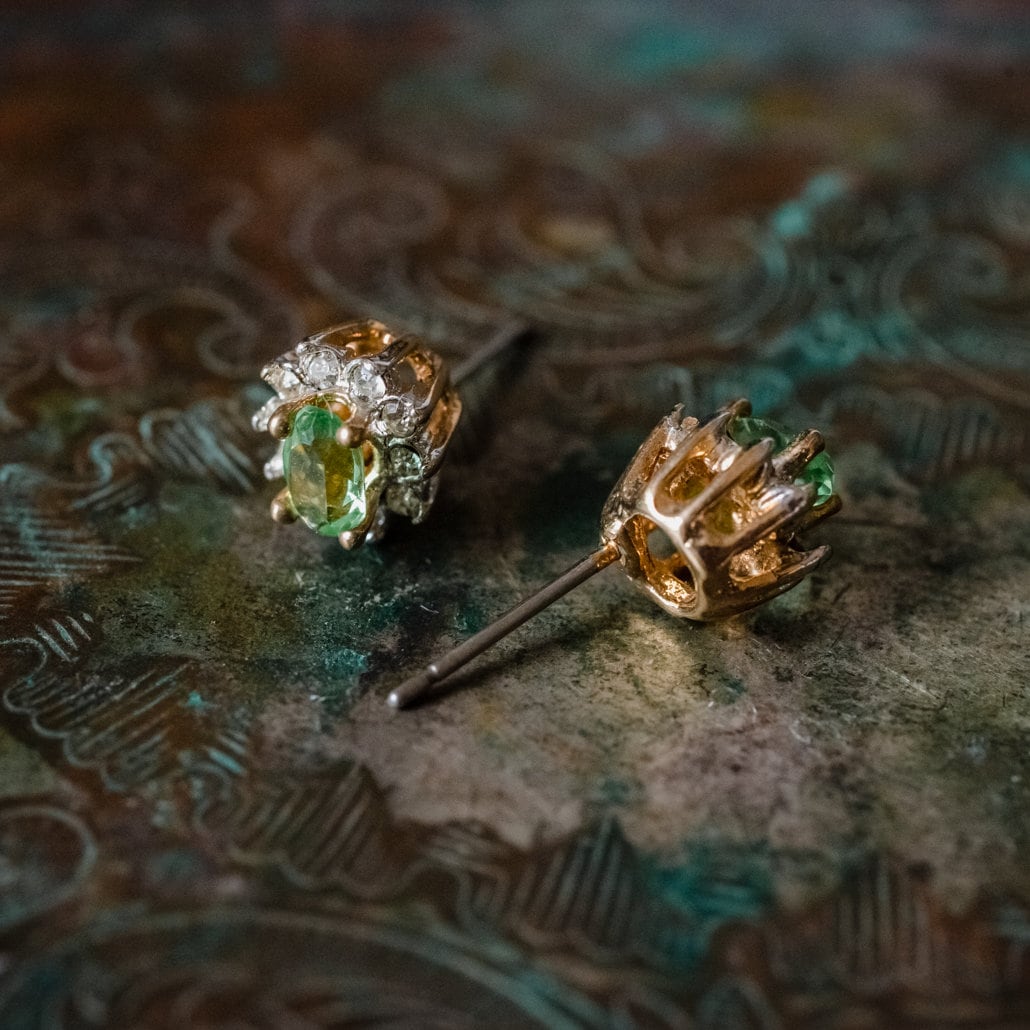 Enhance your jewelry collection with these stunning Vintage 18k Gold Electroplated Crystal Earrings, available in four vibrant colors: peridot, ruby, topaz, and emerald. These unique earrings have never been worn or previously owned, and they feature post backs for a secure and comfortable fit. Their brilliant stones are hand-set in an 18k gold electroplated setting, ensuring they catch the light beautifully with every movement. Perfect for anyone who appreciates vintage elegance with a touch of color, these earrings promise excellent quality and craftsmanship that make them a truly special find.