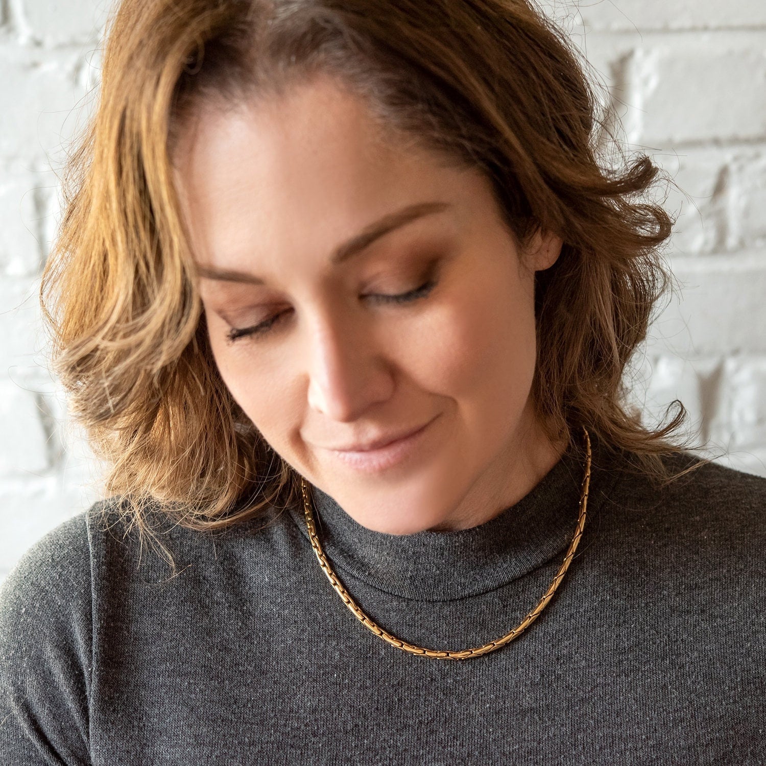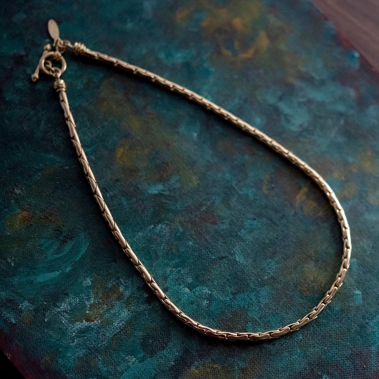 A Vintage Oscar De La Renta 16in Gold Tone Rounded Cobra Chain Necklace Toggle Clasp Womans Designer OSN-127-Y