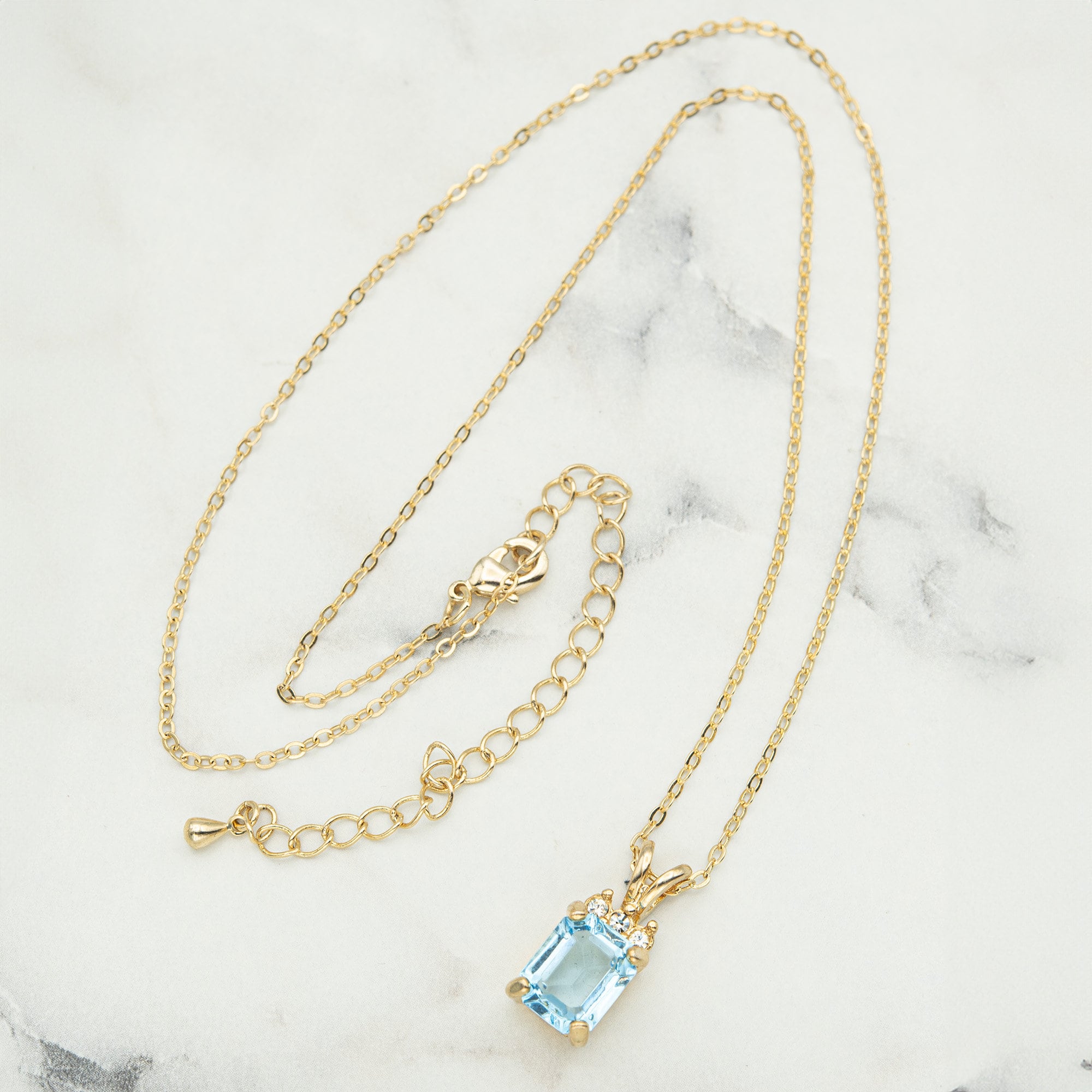• Vintage Aquamarine and Clear Crystal Women's Jewelry Pendant Necklace Made in the USA #N996-AYG