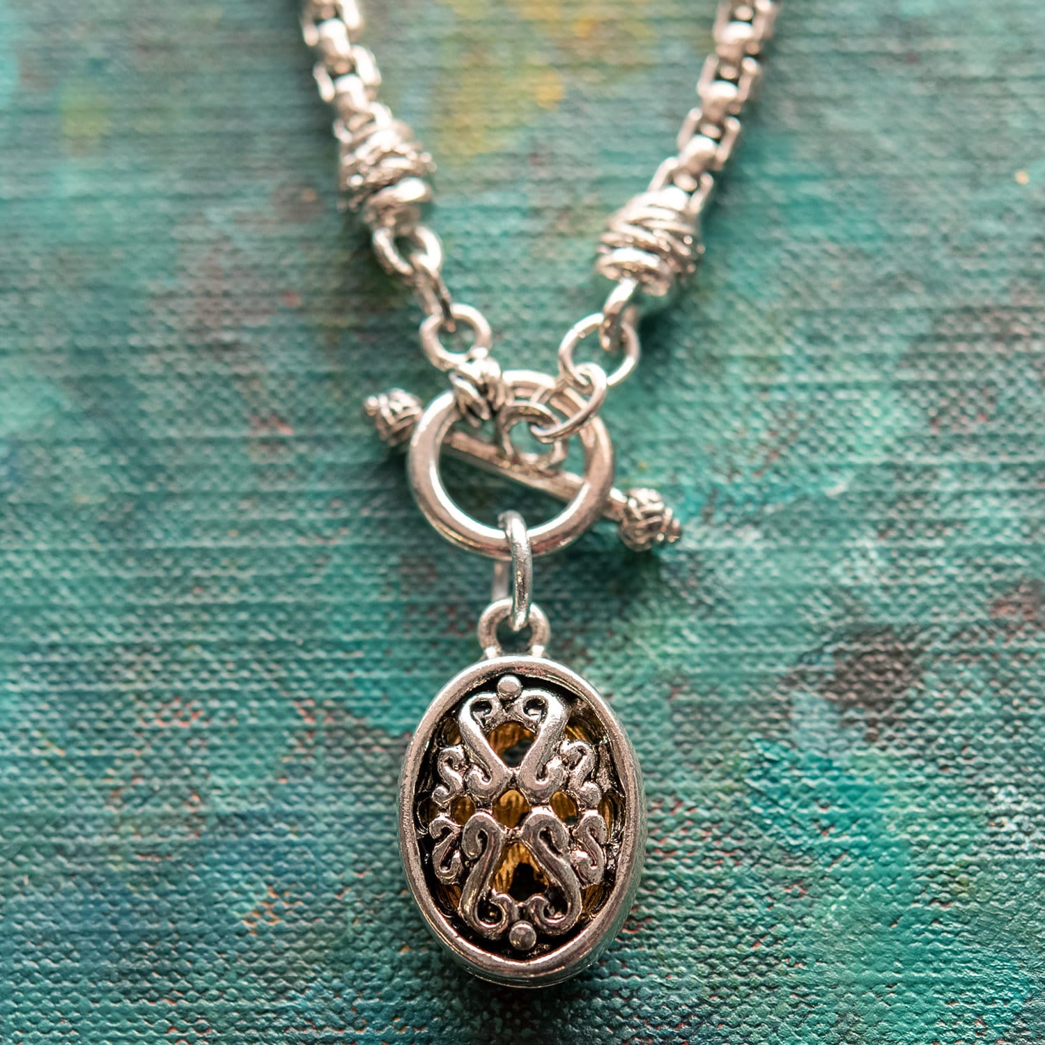 • Vintage Oscar De La Renta 16 Inch Yellow and White Gold Tone Pendant Necklace #OSN-445-WY