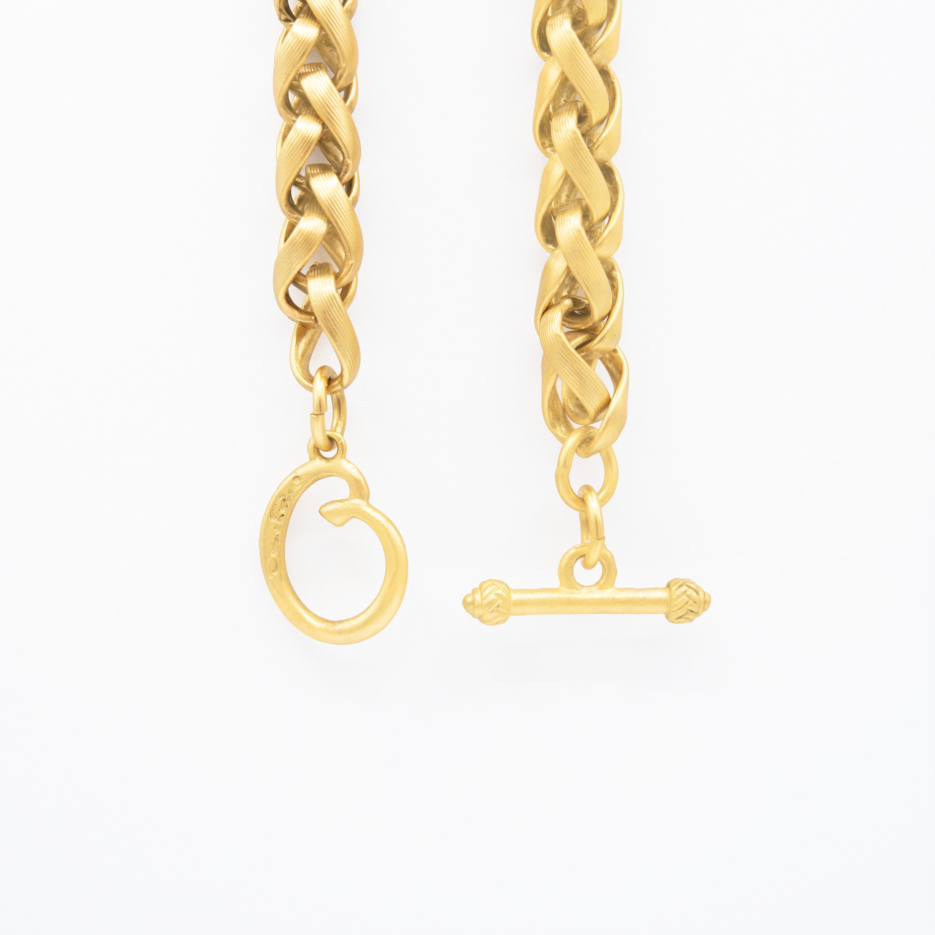 While supplies last, enjoy our exclusive Vintage Oscar De La Renta Collection! Featuring a stunning Vintage Oscar De La Renta Matte Finish Rope Necklace in excellent condition-never worn or previously owned. This matte gold-tone beauty showcases a high-quality rope chain with a secure toggle clasp. Measuring 24 inches in length, it's a timeless piece that exudes elegance and sophistication, perfect for any fashion connoisseur. Don't miss out on adding this exceptional necklace to your collection!
