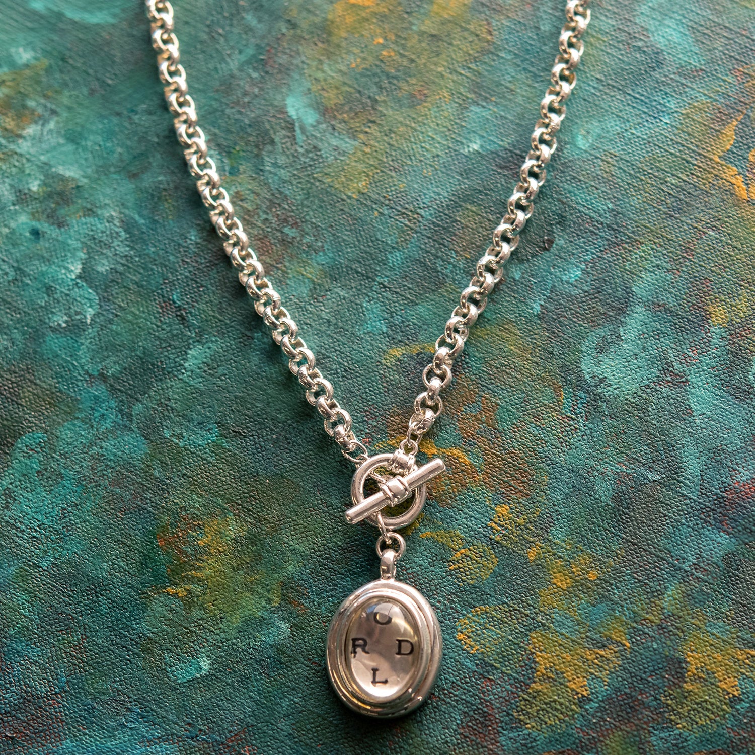 Vintage Oscar de la Renta Pendant Necklace 16 Inches Toggle Clasp "ODLR" Initials Inside Clear Dome Pendant Size: S