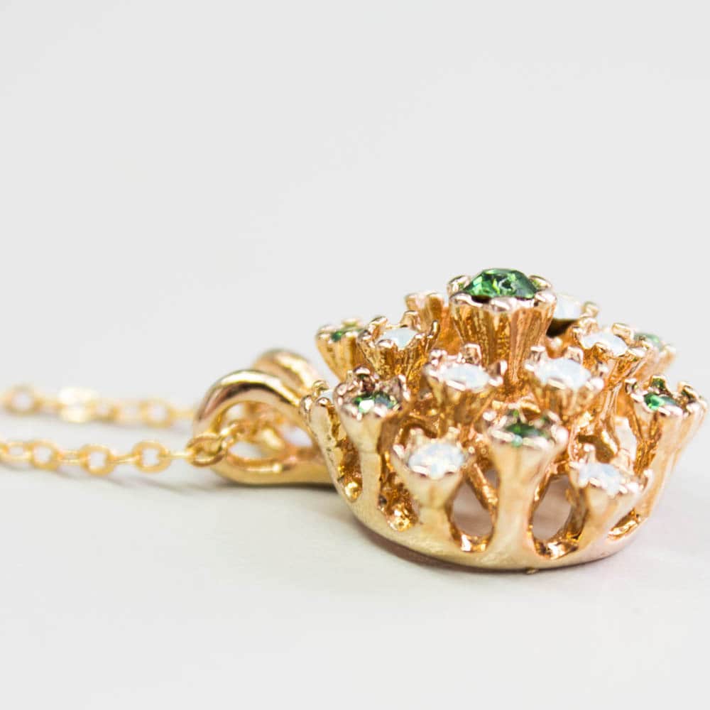 • A Vintage Opal Pendant Necklace, Tourmaline and Pinfire Opal Necklace, Gold Necklace, Opal Pendant Bridesmaid Gift, Womans Jewelry #N358