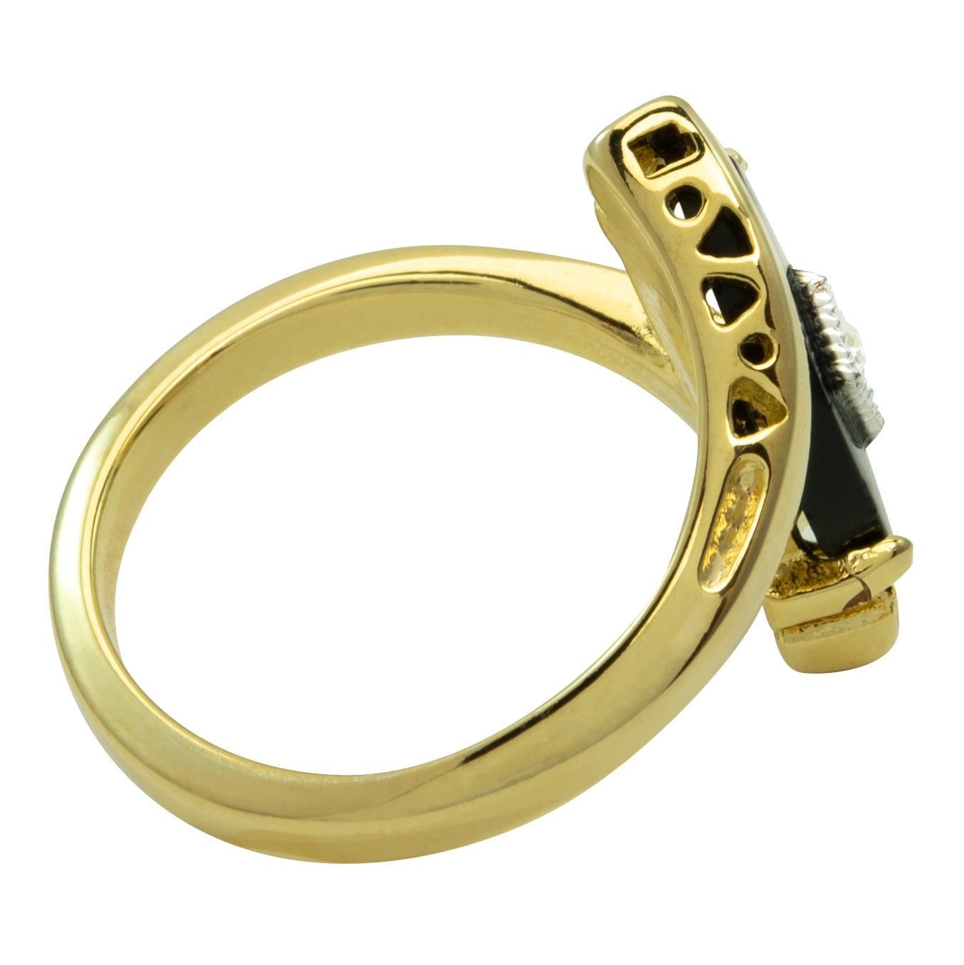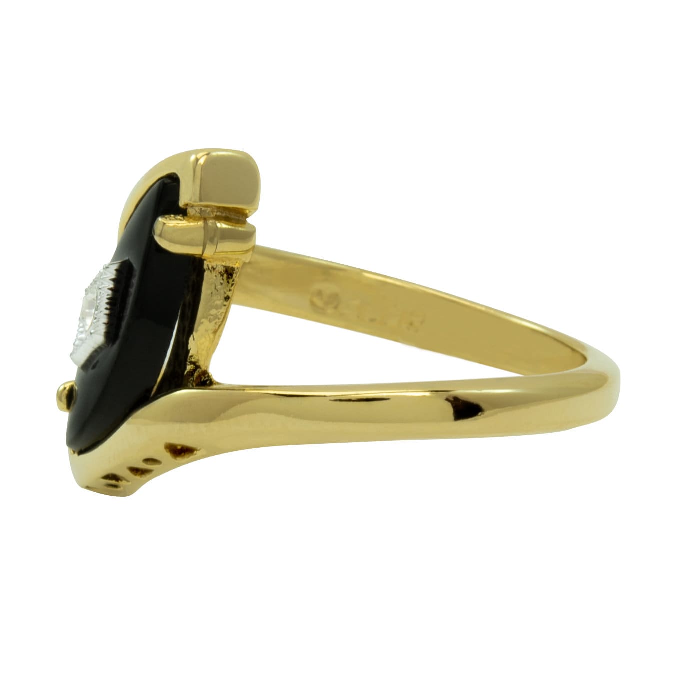 • A Vintage Ring Imitation Onyx Ring with Austrian Crystal Antique 18kt Gold Jewelry Womans Handmade Rings #R961 Size: 4