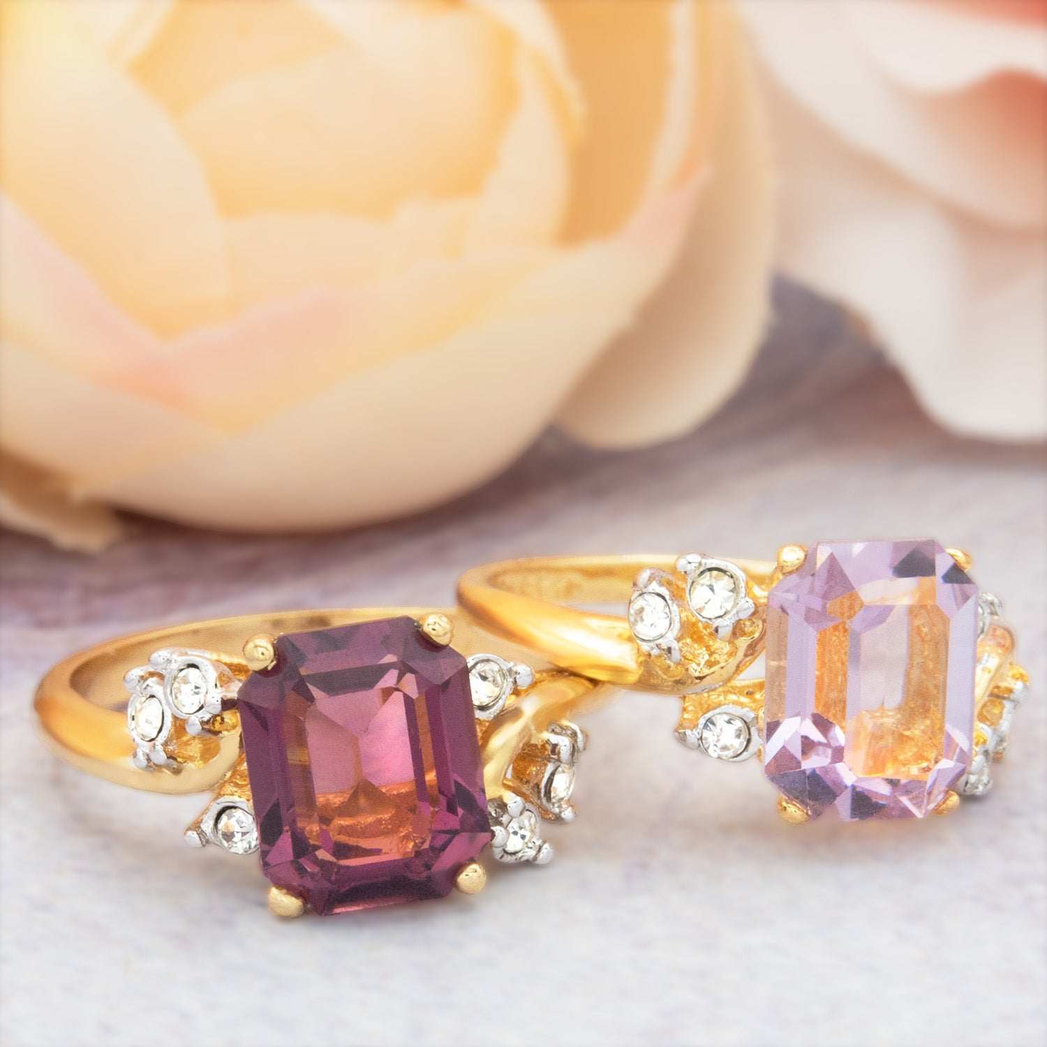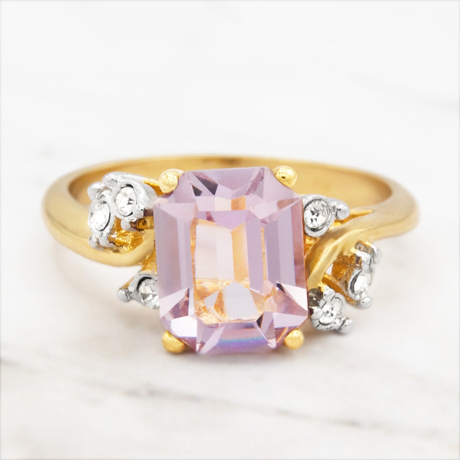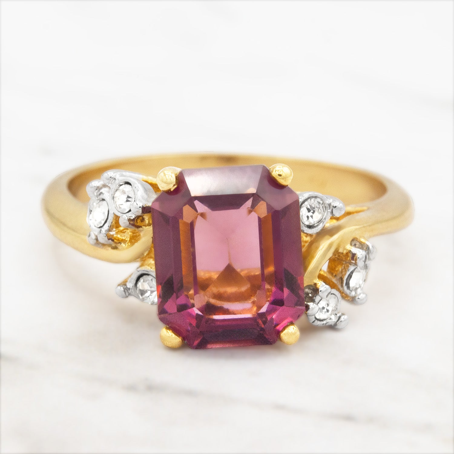 • Austrian Crystal Vintage Ring Antique 18k Gold Electroplated Birthstone Women's Jewelry Antique