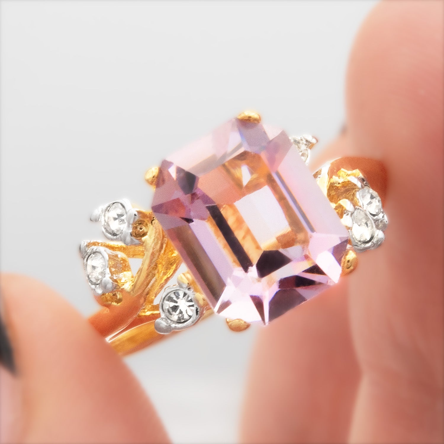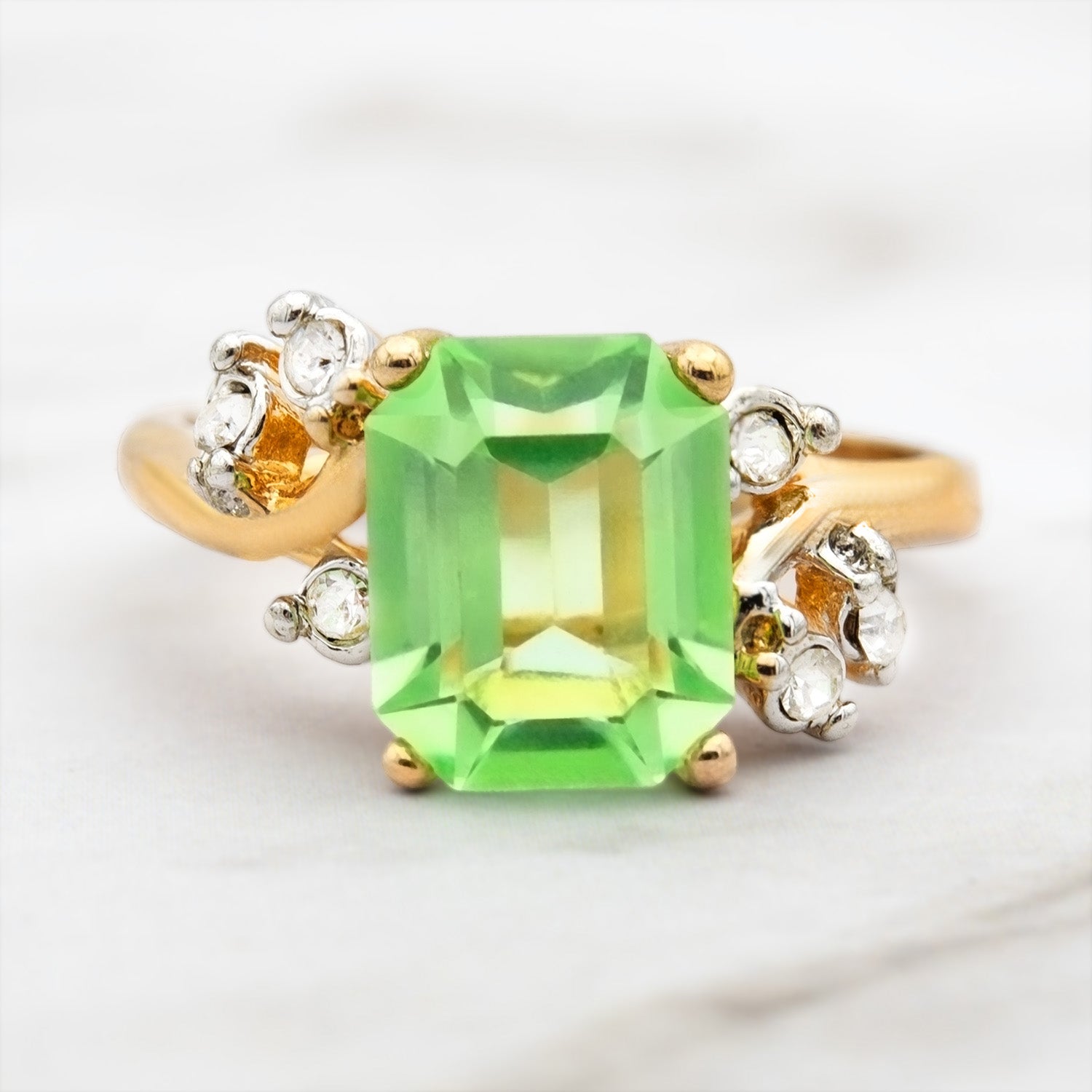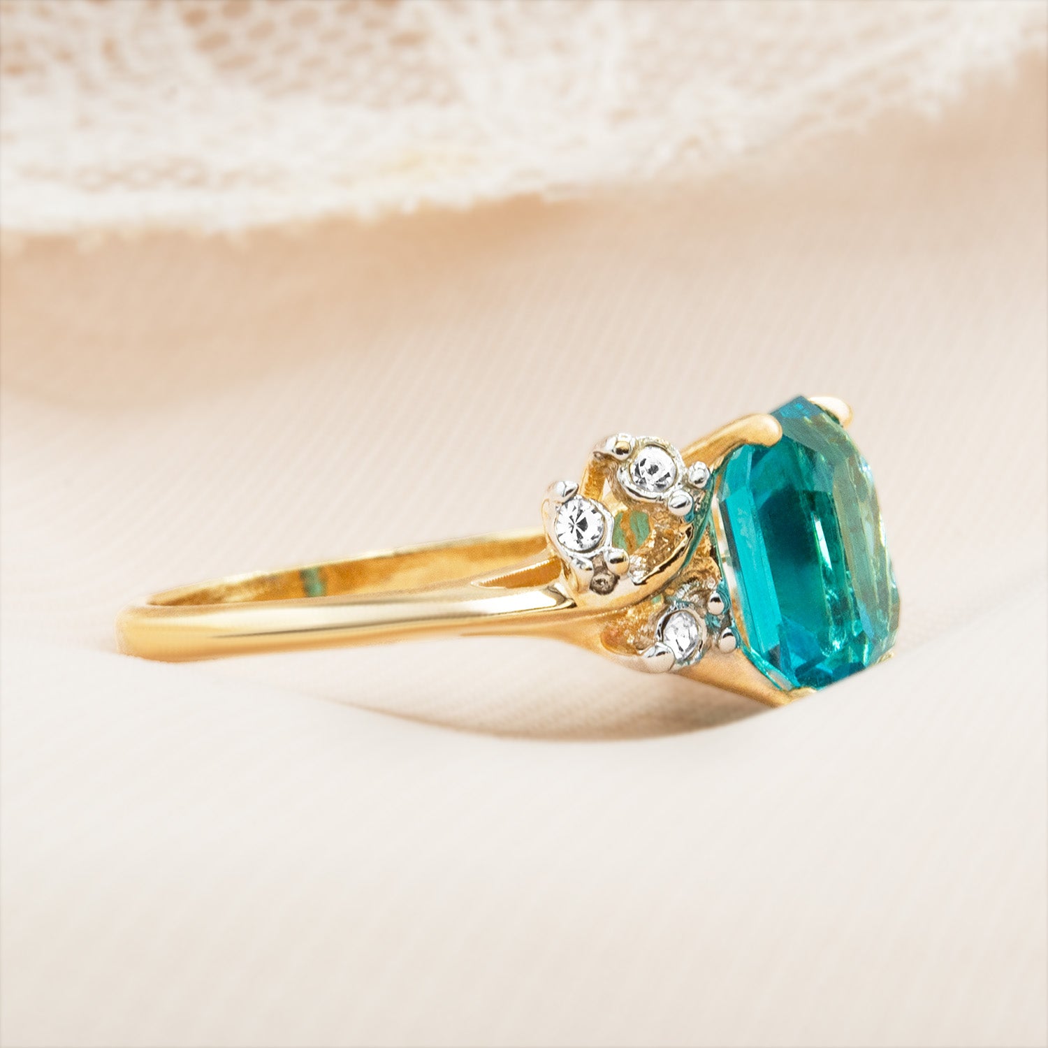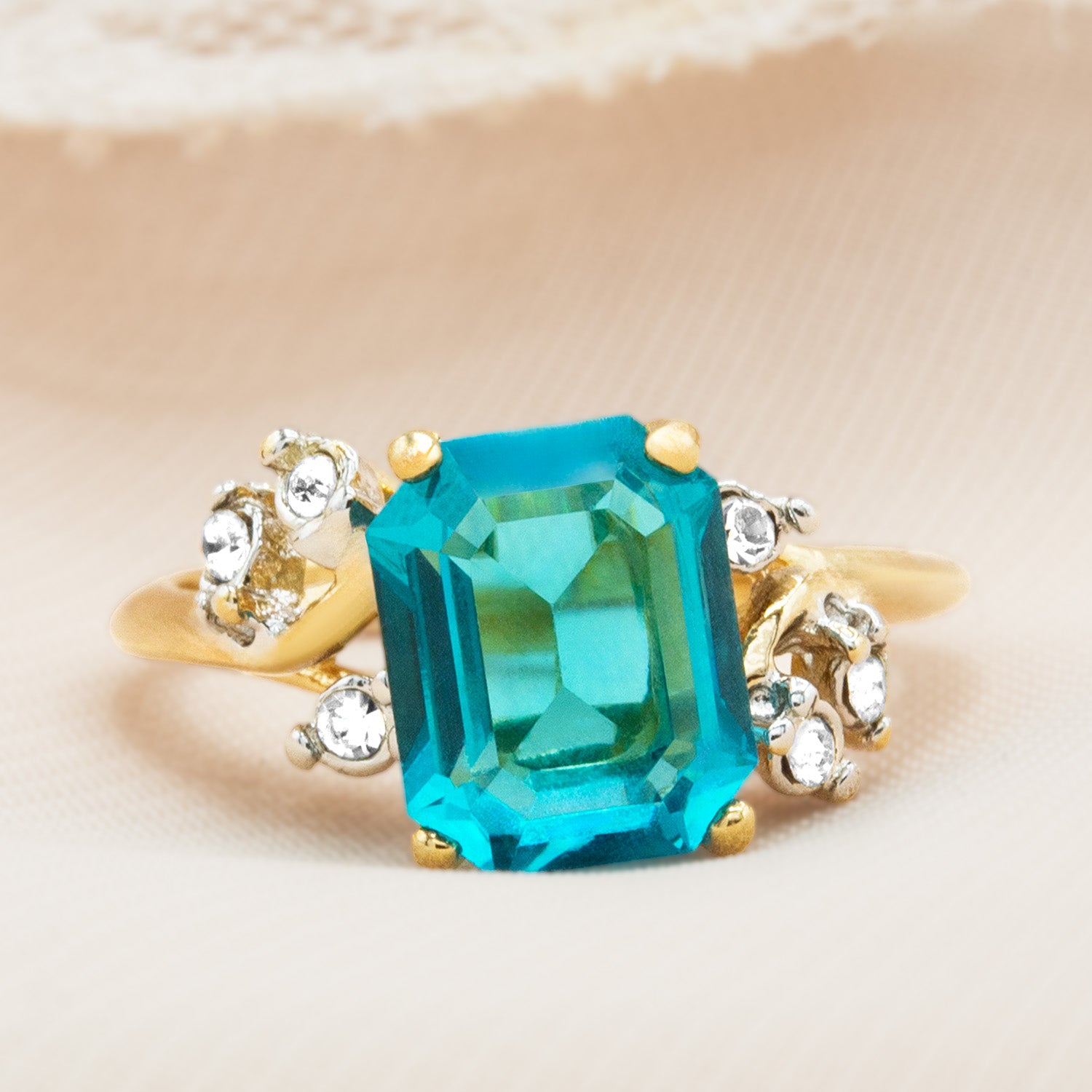 • Austrian Crystal Vintage Ring Antique 18k Gold Electroplated Birthstone Women's Jewelry Antique