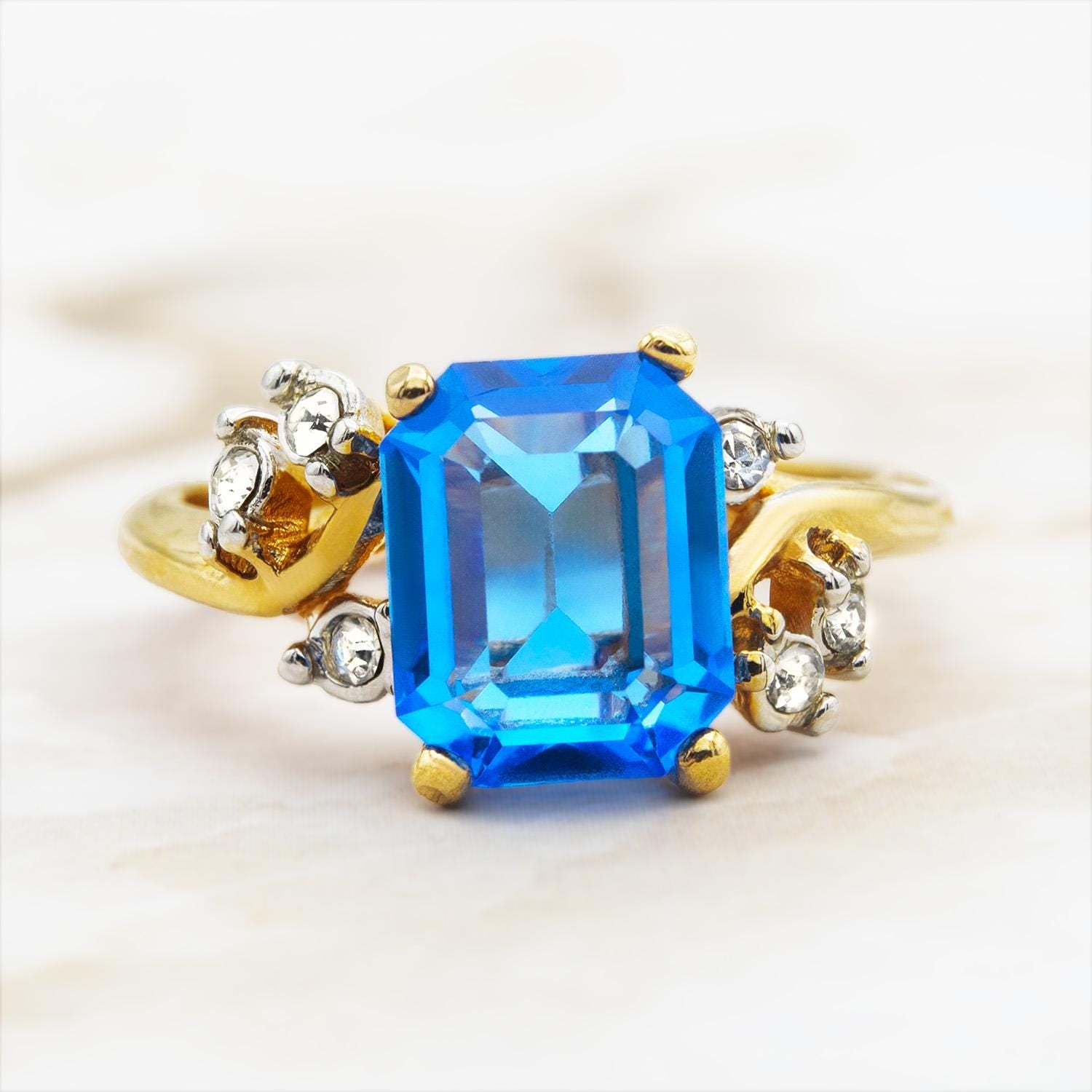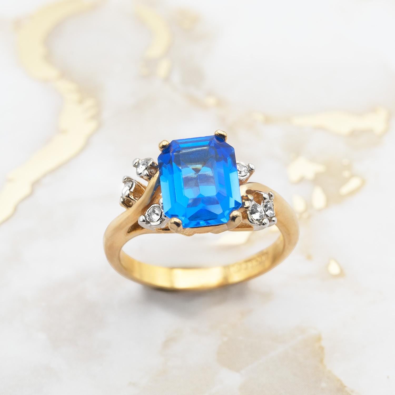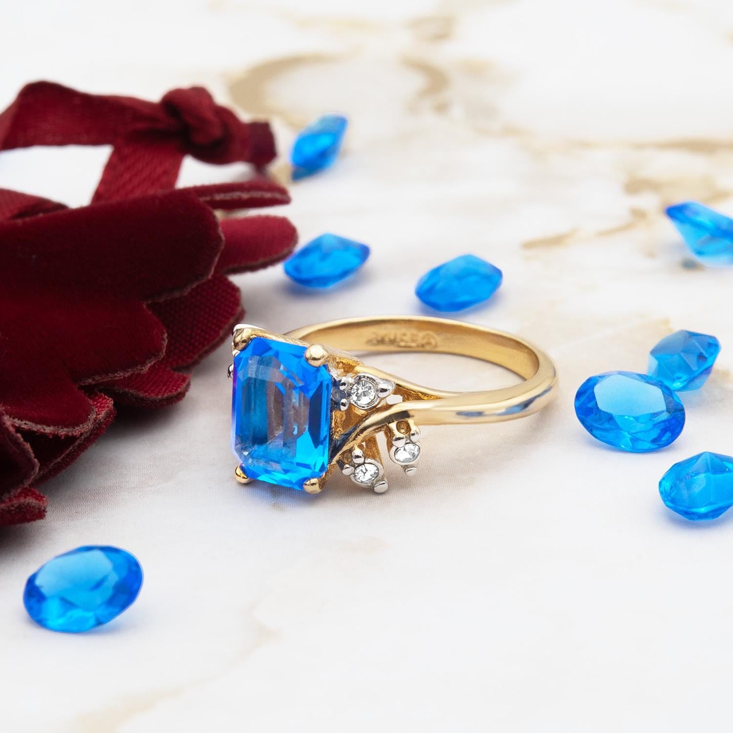 Austrian Crystal Vintage Ring Antique 18k Gold Electroplated Birthstone Women's Jewelry Antique