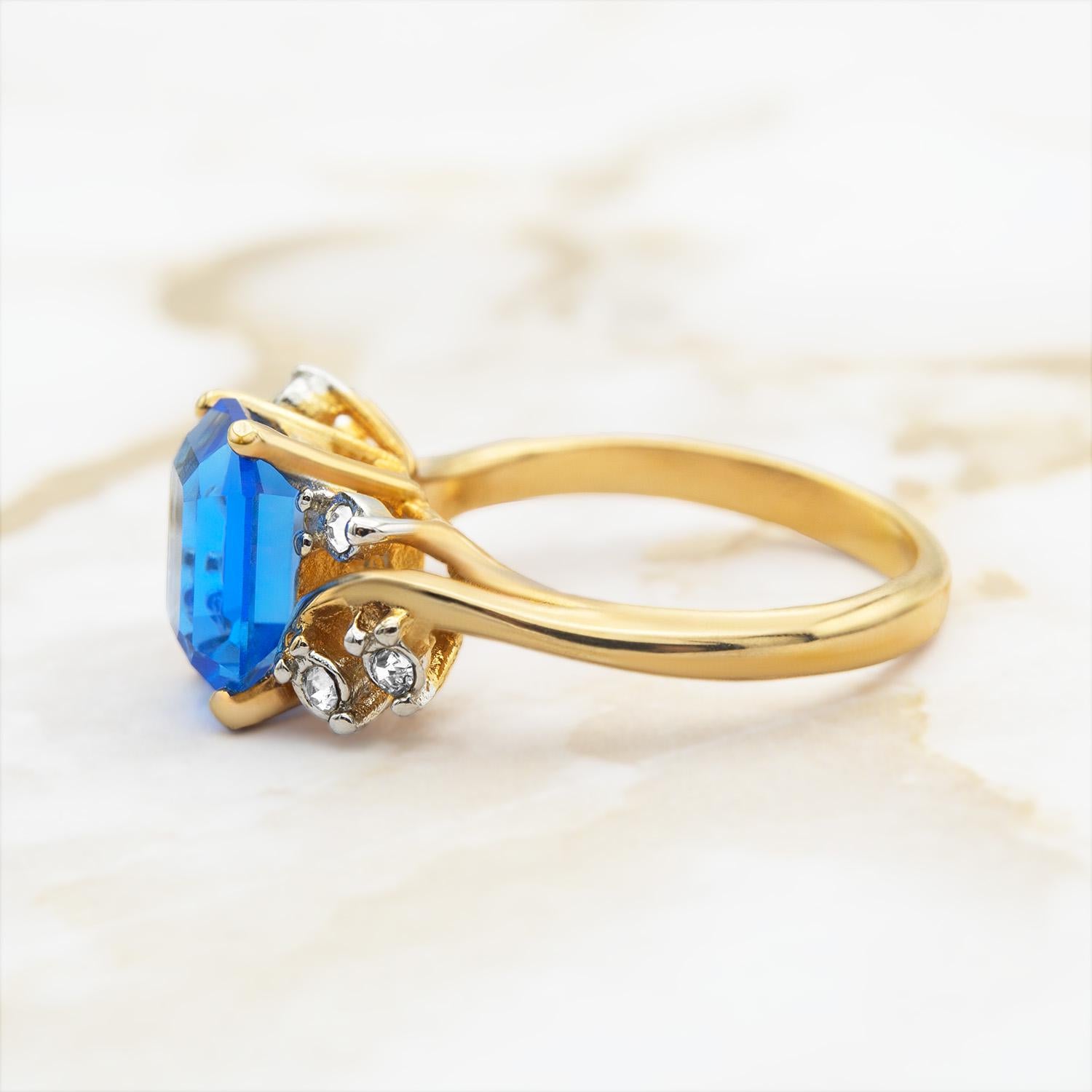 Discover our stunning vintage Austrian crystal ring, beautifully set in 18kt yellow gold electroplate. This exquisite piece combines timeless elegance with a touch of sparkle, making it the perfect addition to any jewelry collection. Ideal for those who appreciate unique and classic beauty, this ring is sure to become a cherished favorite.