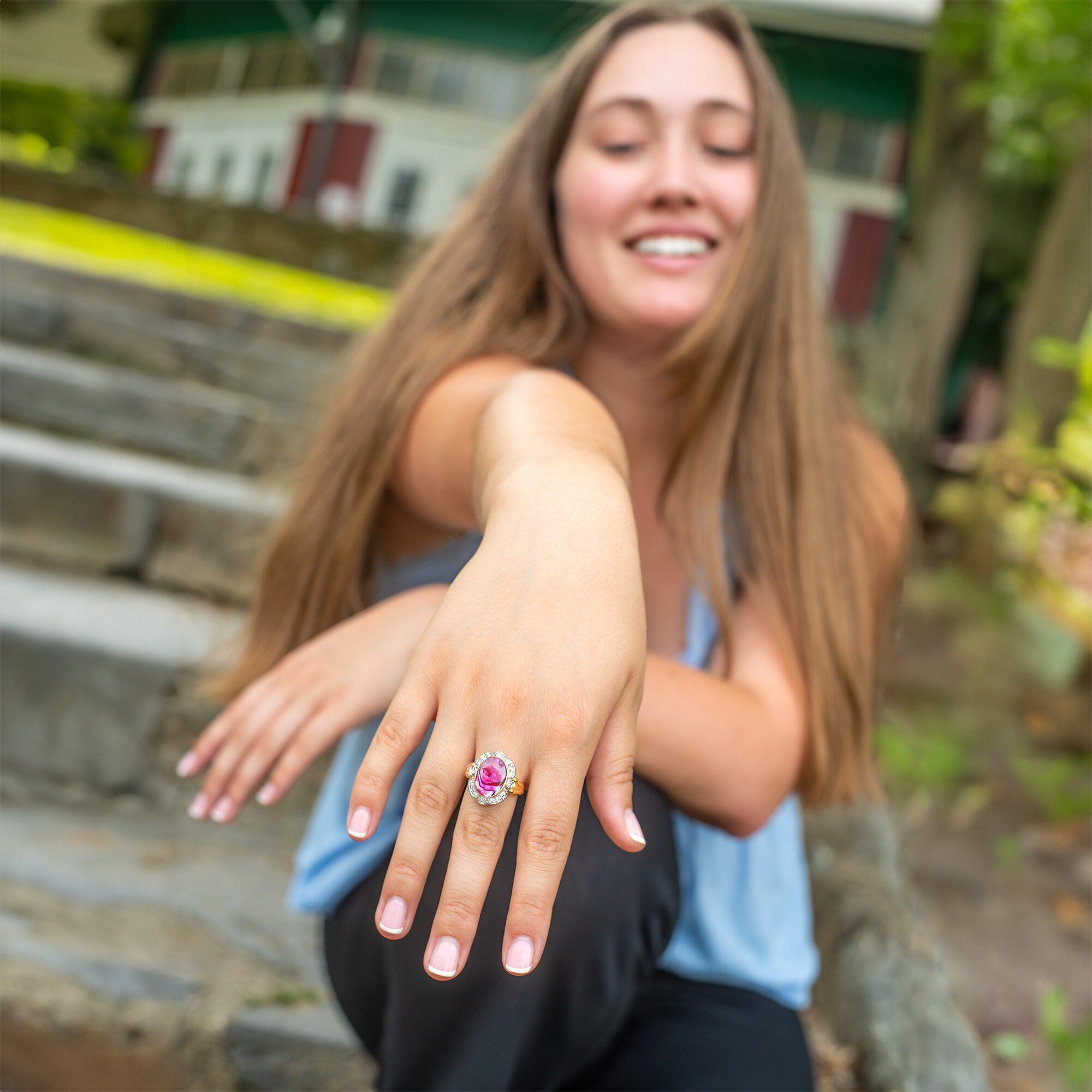 Select from Genuine Pink, Blue, or Green Abalone Stone Ring Vintage 1970s 18k Yellow Gold Plated Clear Austrian Crystals Woman's Handmade Jewelry #R1730