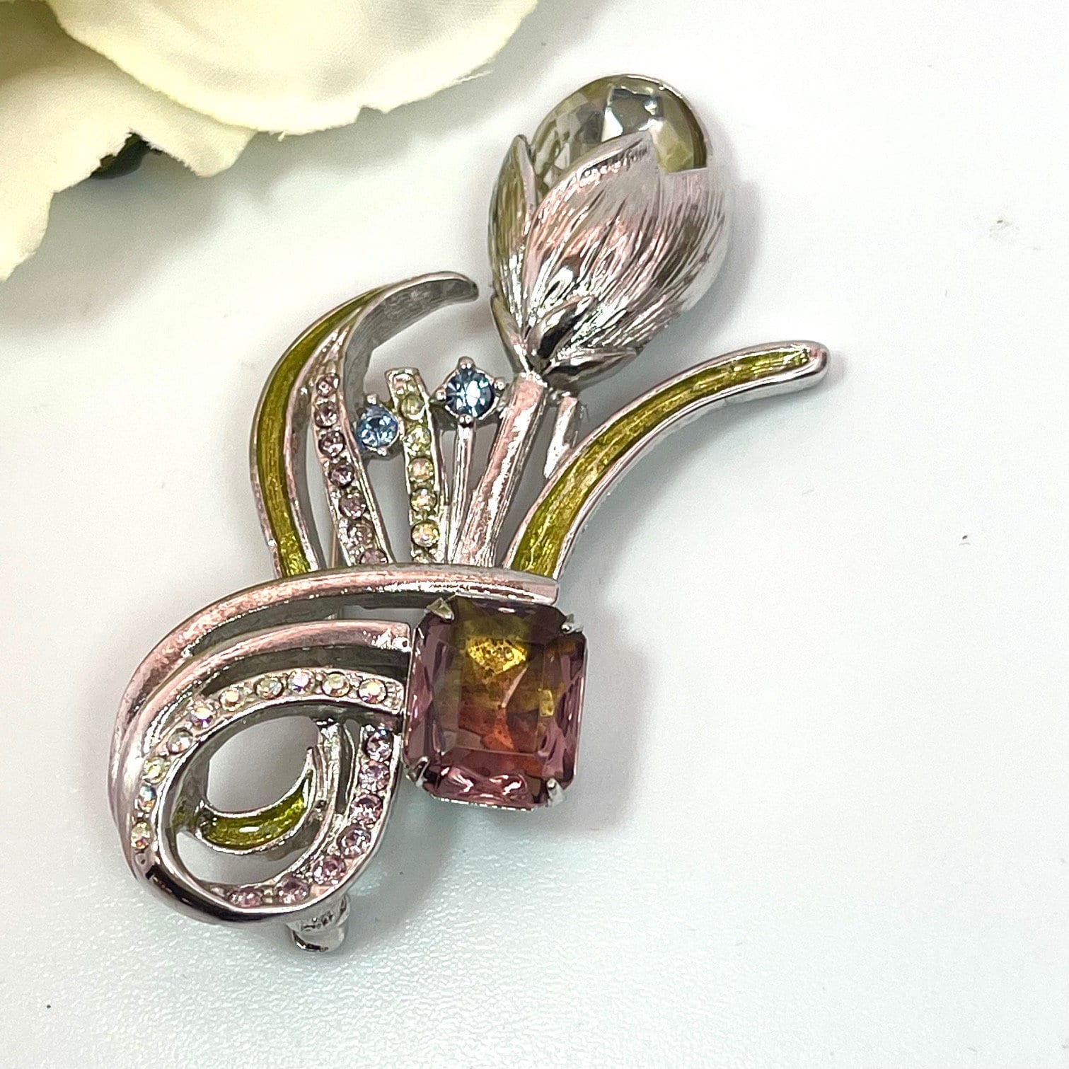 Vintage Oscar de la Renta Pin with Colorful Crystal Details Pin Measures 2-1/2" Pin is Stamped with Oscar de la Renta on Back. Only one available. Very Unique design.