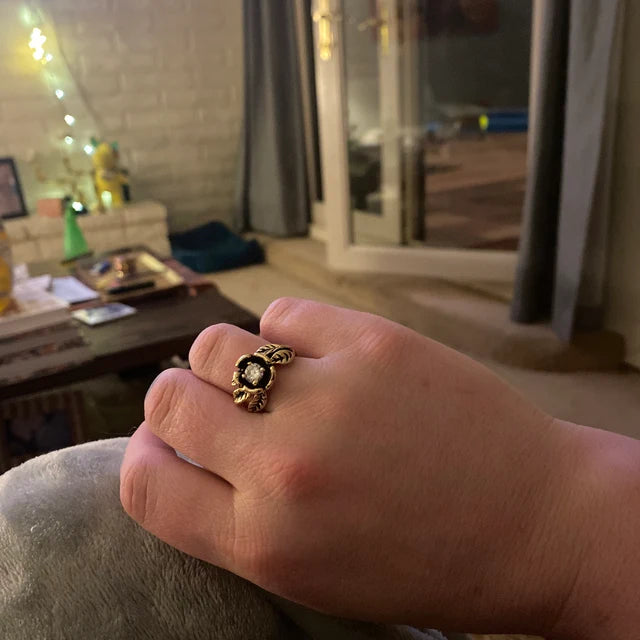 A Vintage Ring 1980's Flower Ring Cubic Zirconia Antique 18k Gold R2920