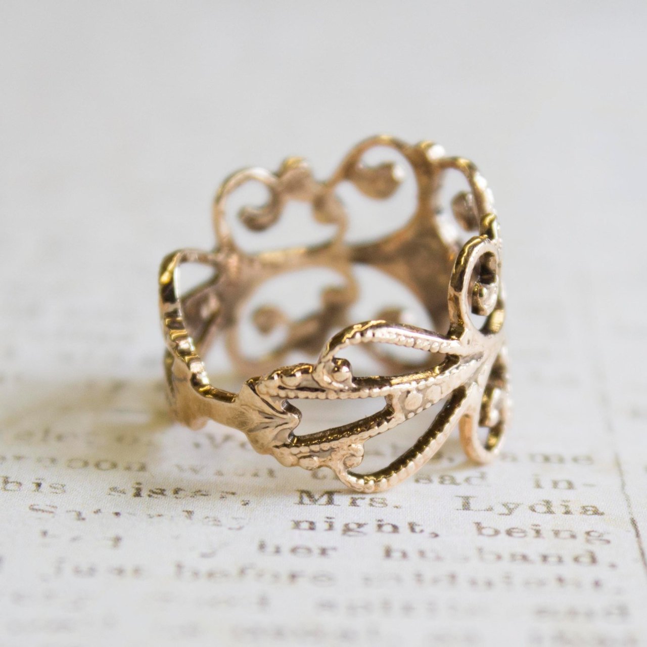 Vintage Ring Filigree Ring Antique 18k Gold Edwardian Style Womans Ornate Handmade Jewelry #R553 Size: 4