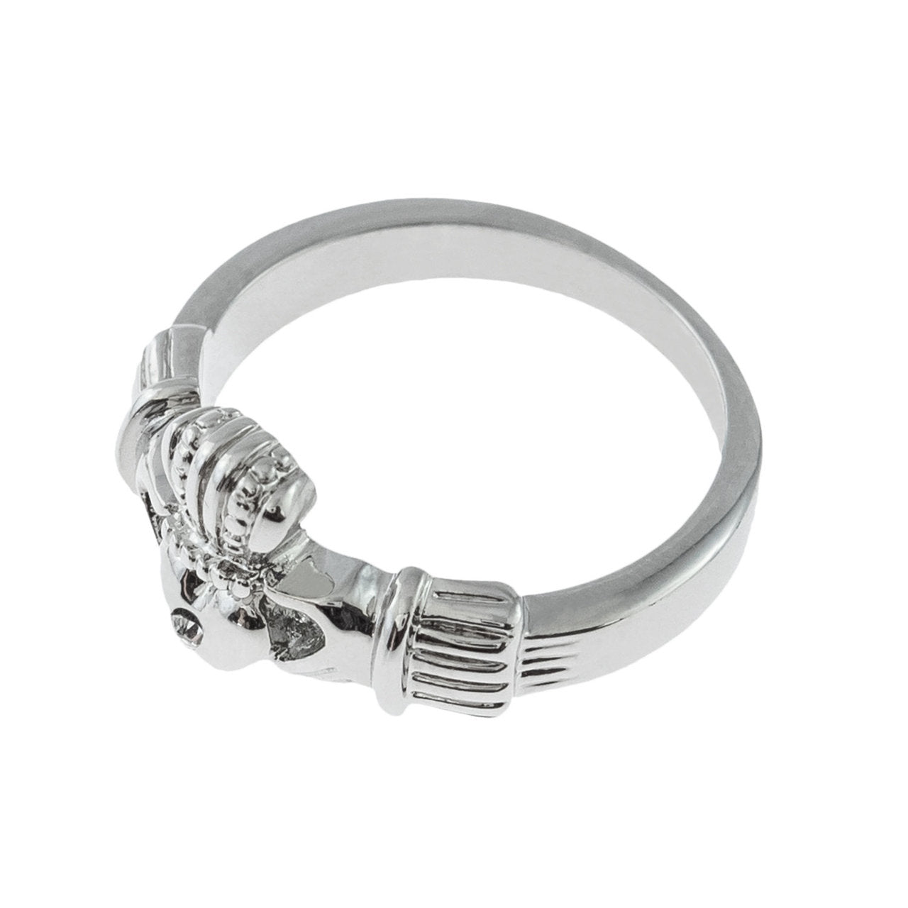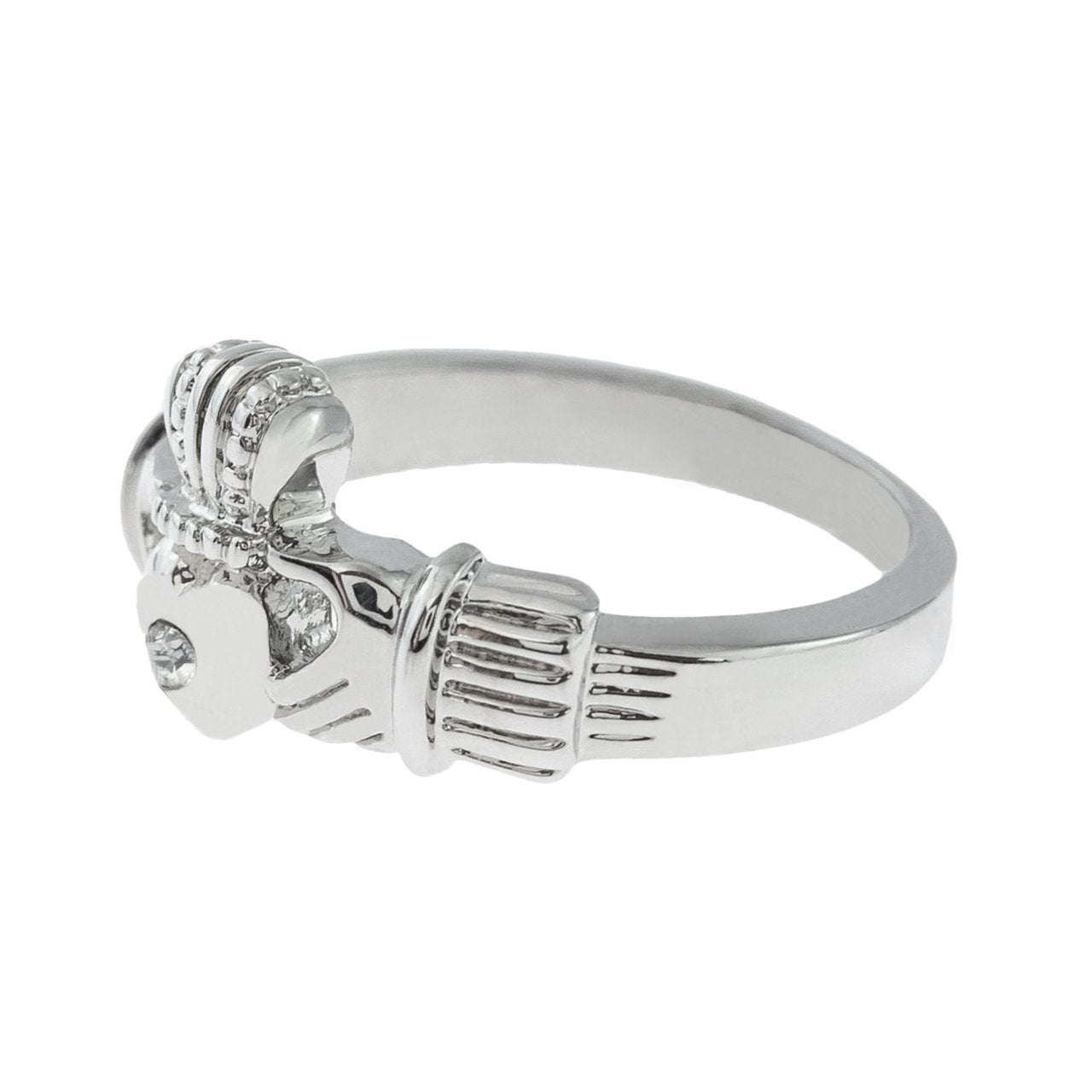 Antique Dainty Claddagh Ring Clear Swarovski Crystal 18k Irish Yellow Gold Electroplated Made in the USA R3443 Vintage 1980's Claddagh Ring Clear Austrian Crystal 18k Yellow Gold Electroplated Made in Providence, RI